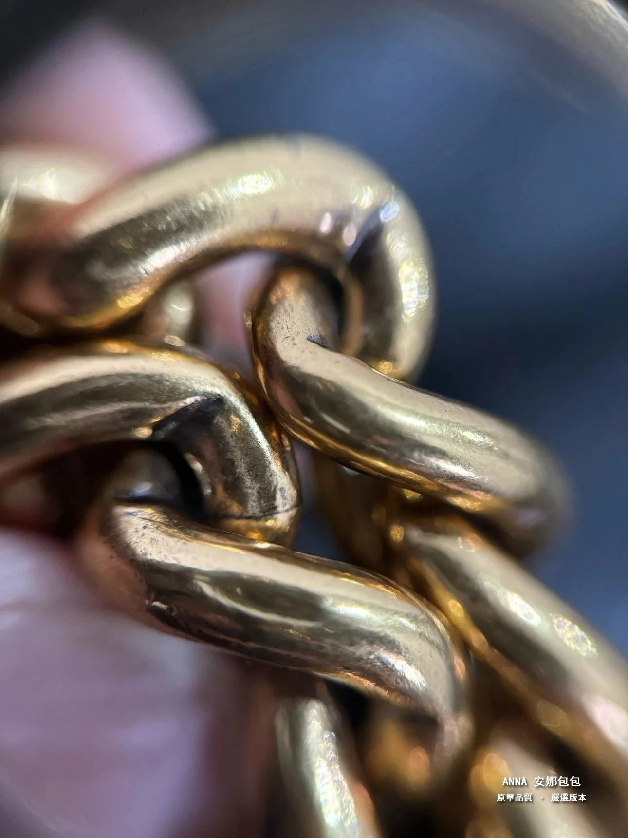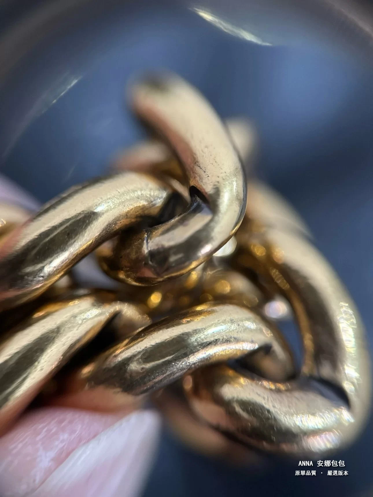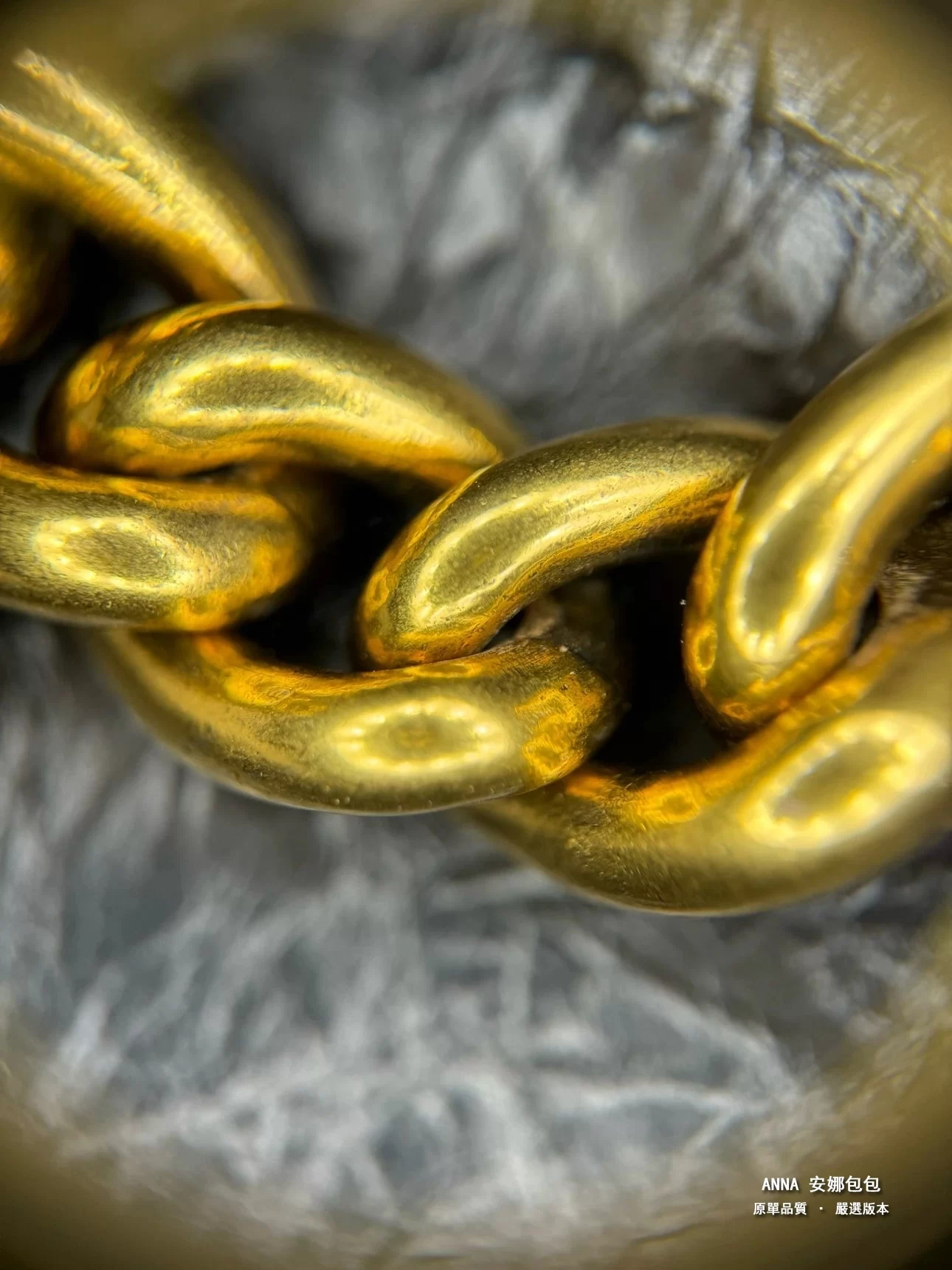 五金鍊條細節,我們的五金是銅鍍金,做舊處理,有點發黑的效果