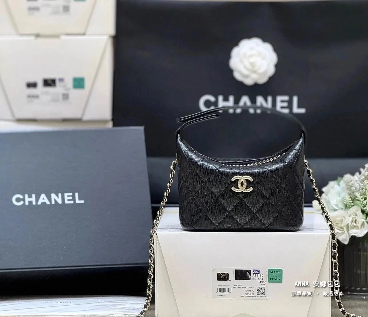 香奈兒 25A 高級手工坊 Hobo 飯盒包 浮雕黑金五金 頂級復刻