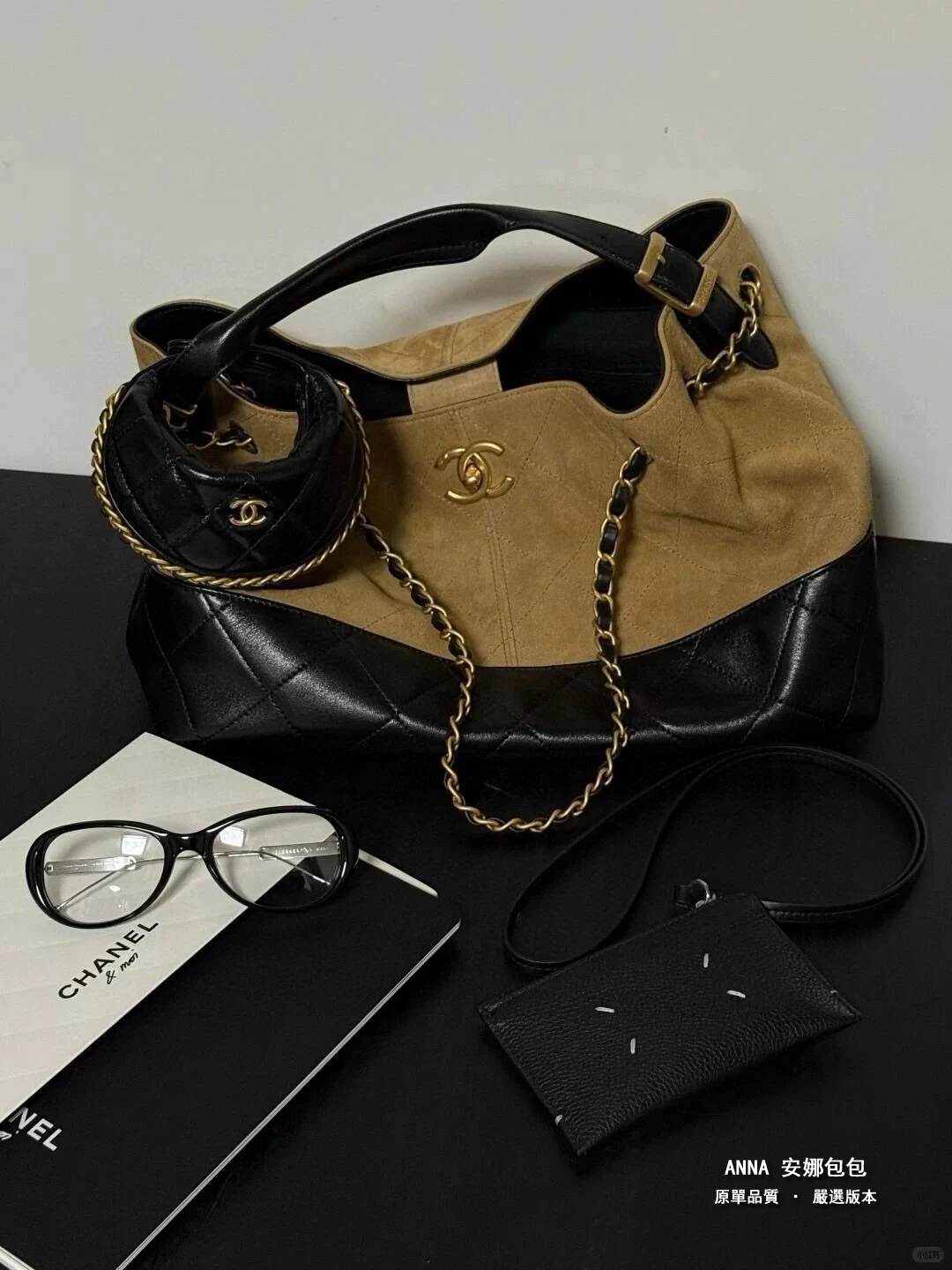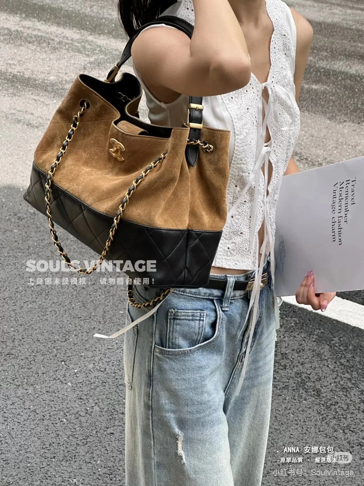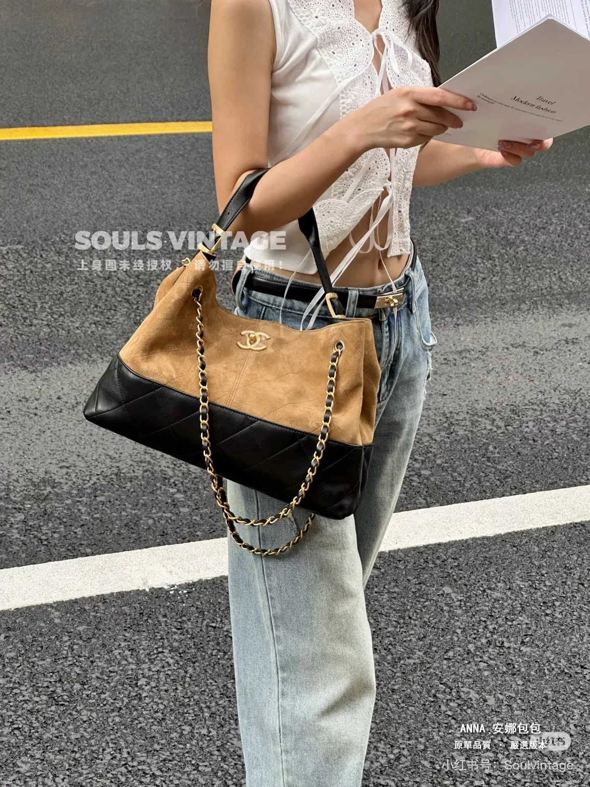 原 CH 25A hobo購物袋手拎包 包包 斜挎包 女包 麂皮焦糖拼色