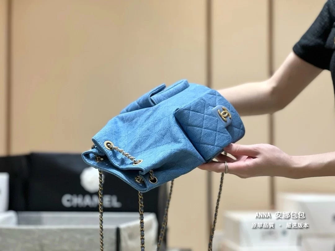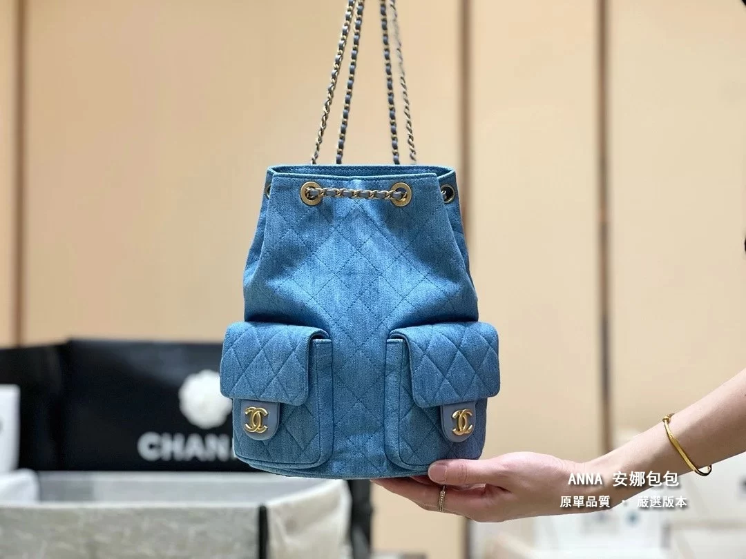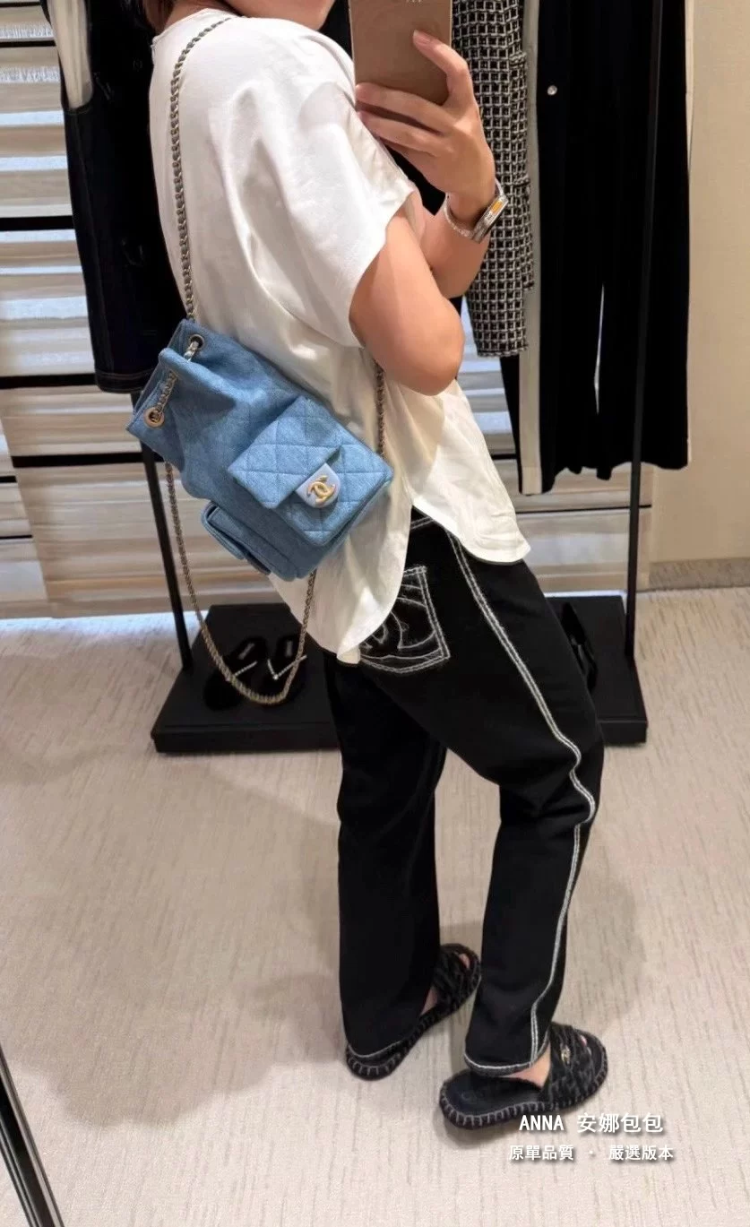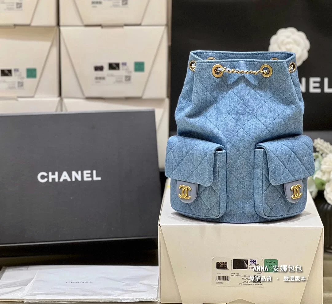 香奈兒 牛仔雙口袋雙肩後揹包 25C 早春 原單 頂級版本 18×24.5×8cm