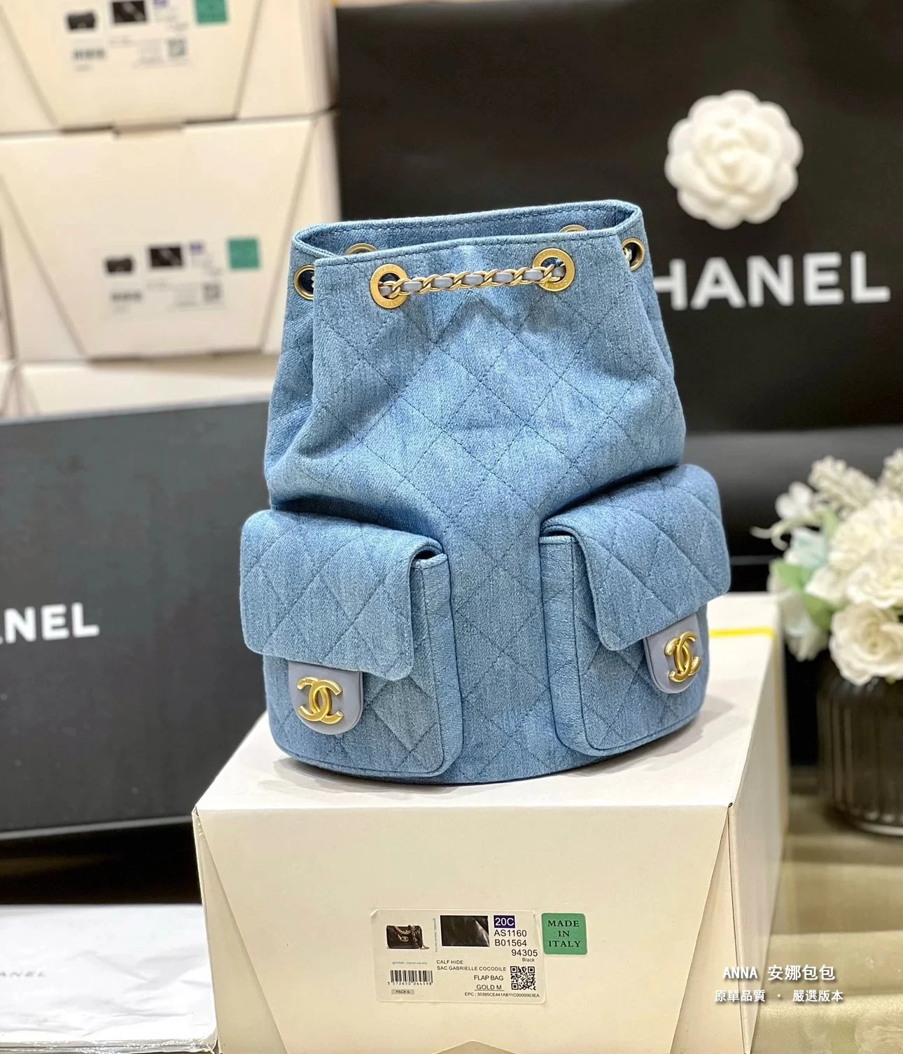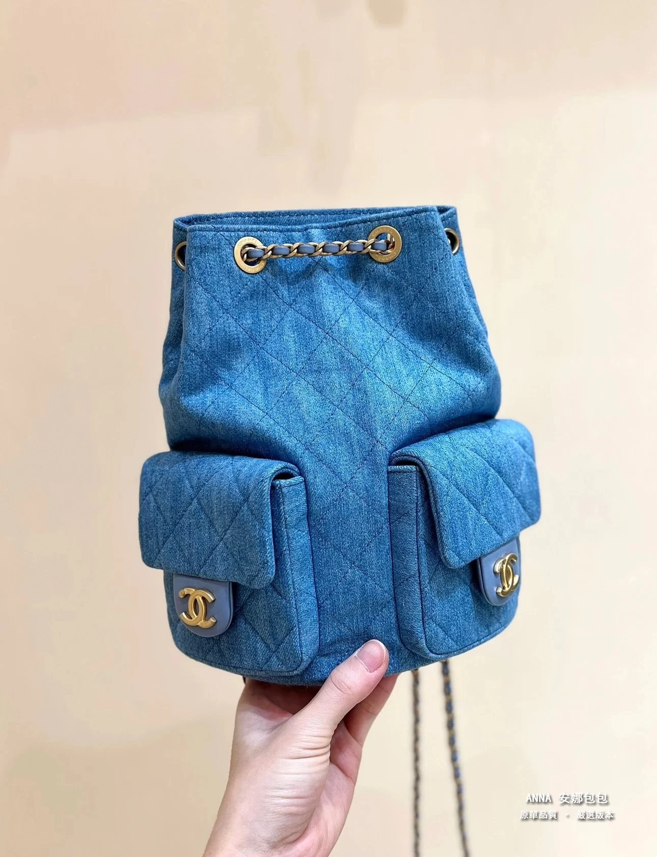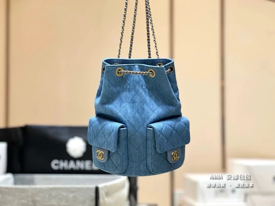 香奈兒 牛仔雙口袋雙肩後揹包 25C 早春 原單 頂級版本 18×24.5×8cm