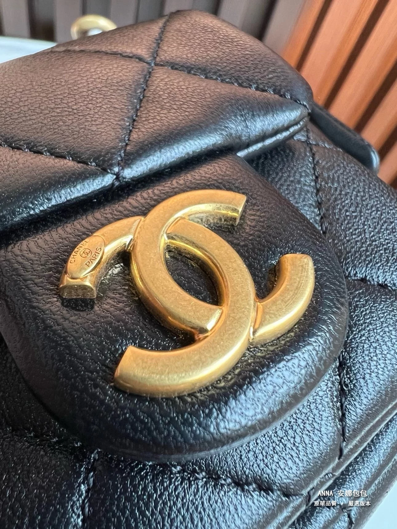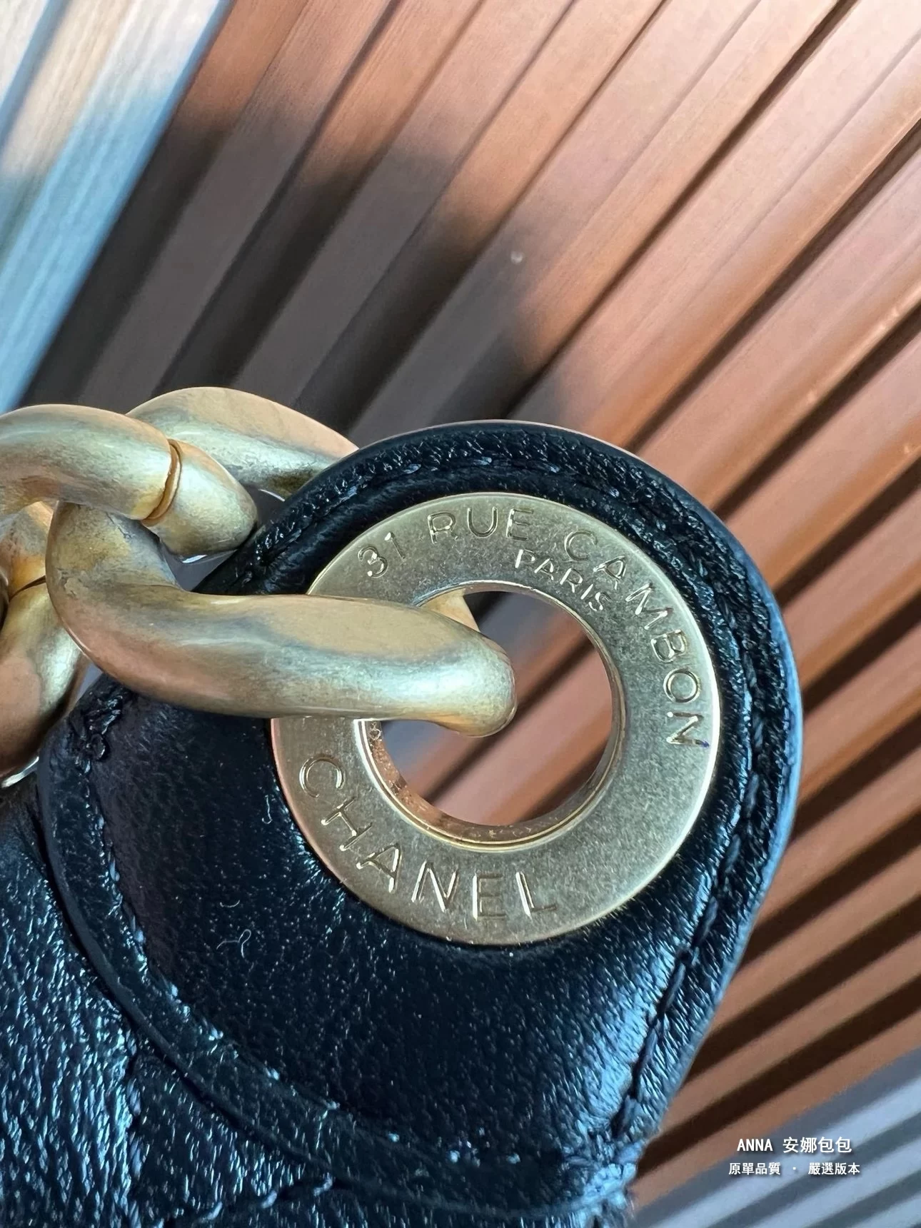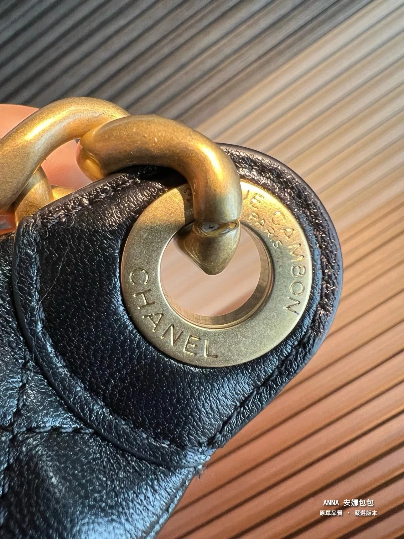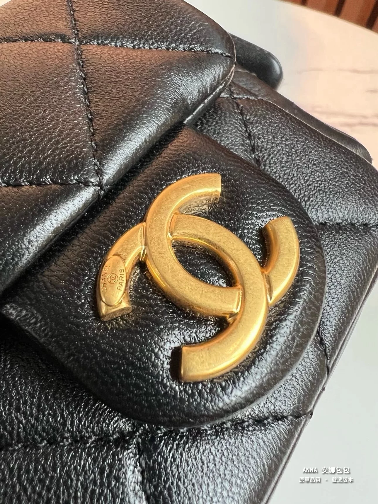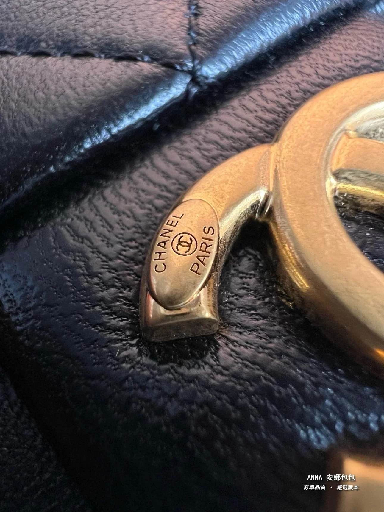 先看雙C logo、 做舊磨砂質感、 市面要麼暗要麼亮、我們恰似在兩這個之間、這個電鍍也是市面做不了的、 雙C略平輕微弧度、跟專櫃一個路子來的五金、