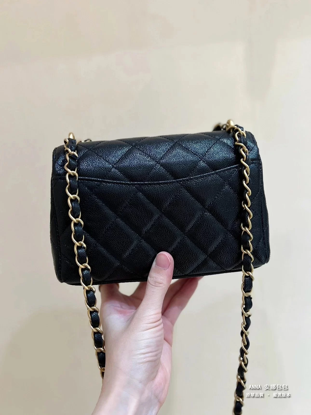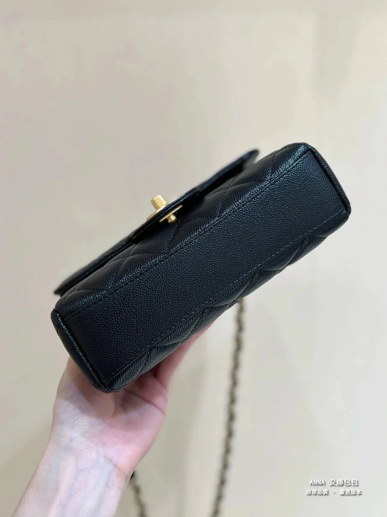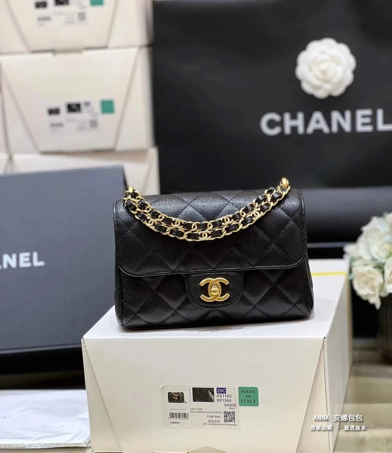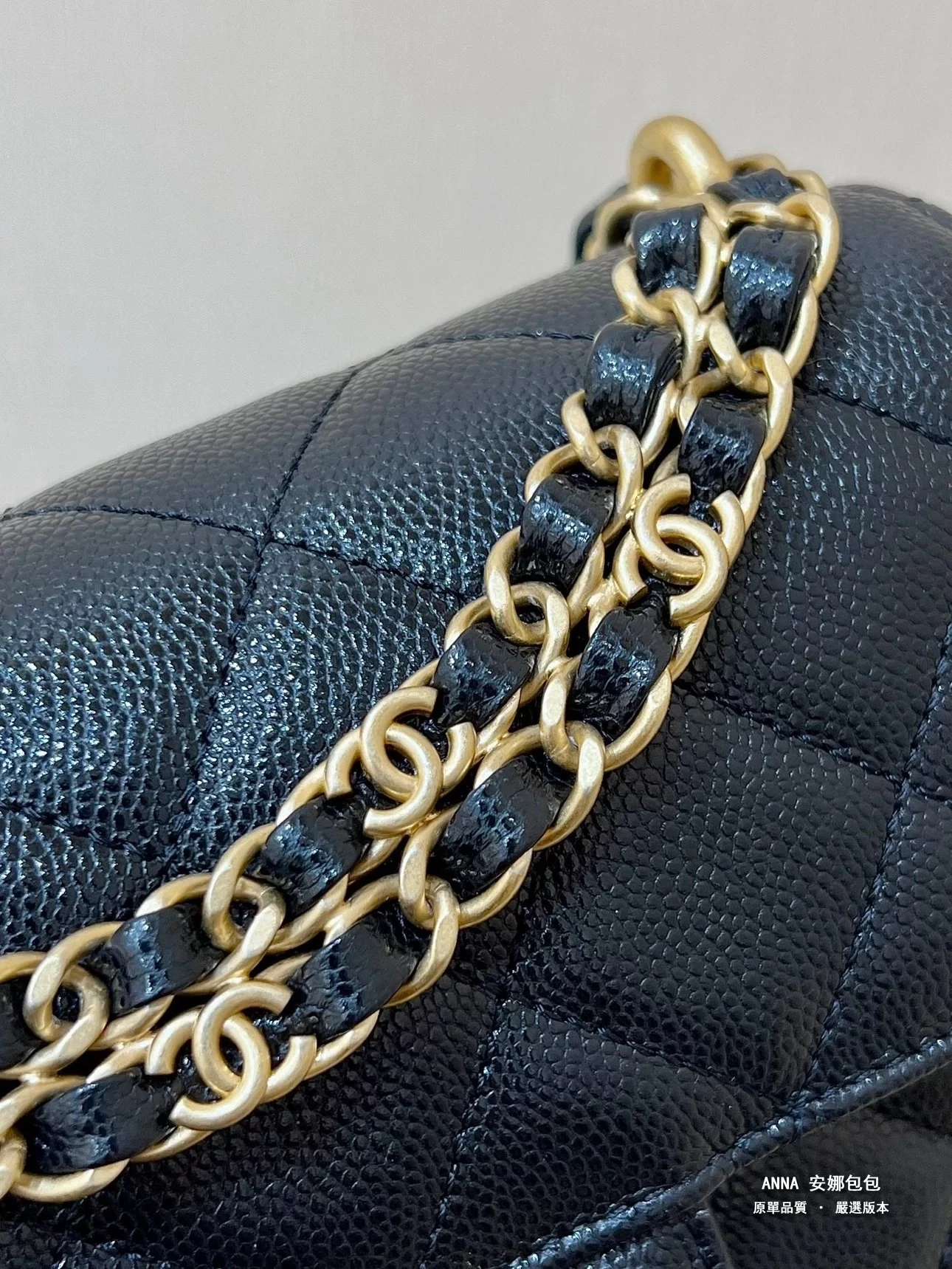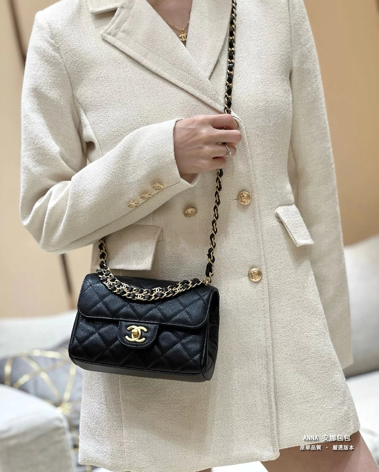 香奈兒 方胖子口蓋包 雙鏈條黑金 荔枝牛皮 頂級復刻版本 大容量 13×18×5.5cm