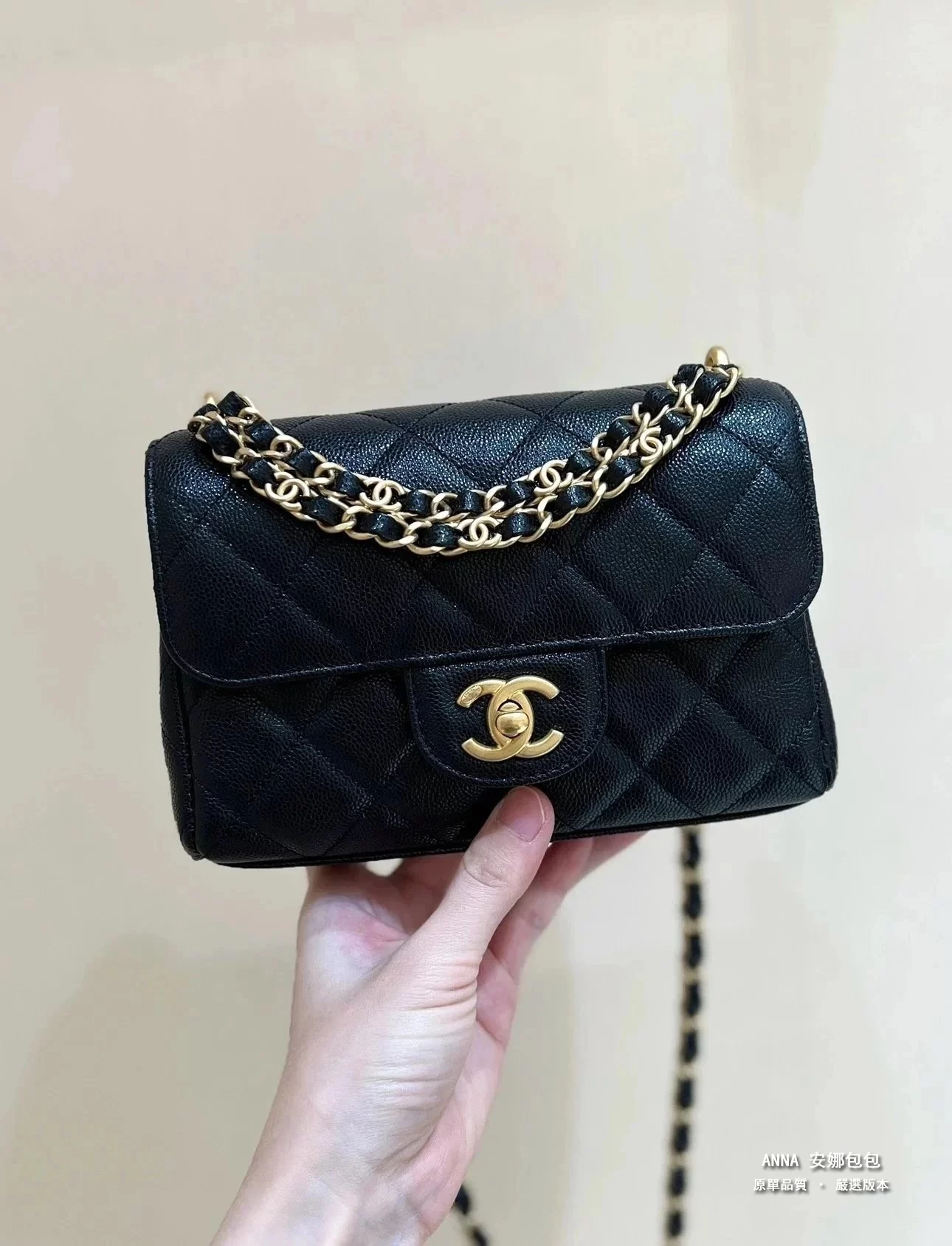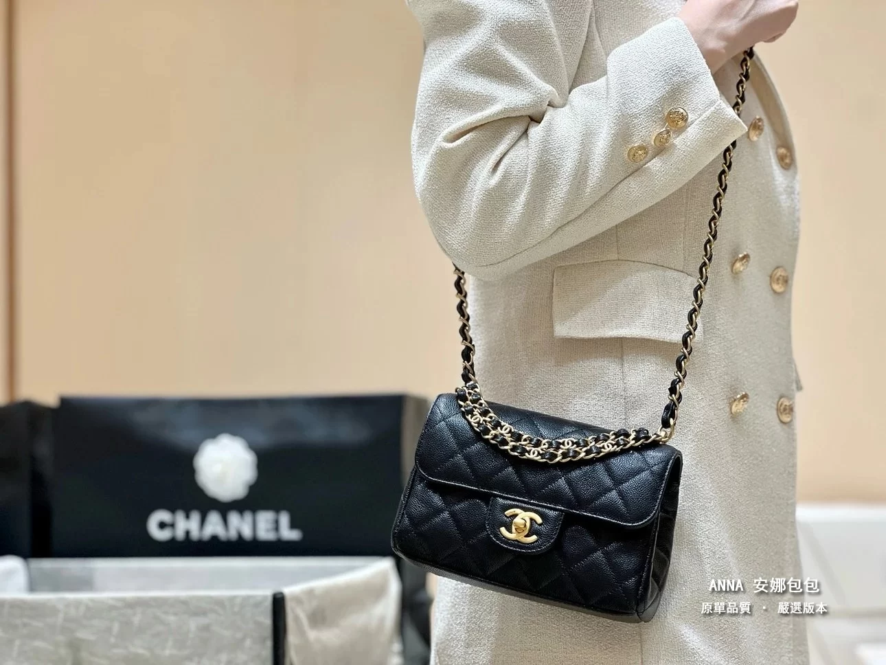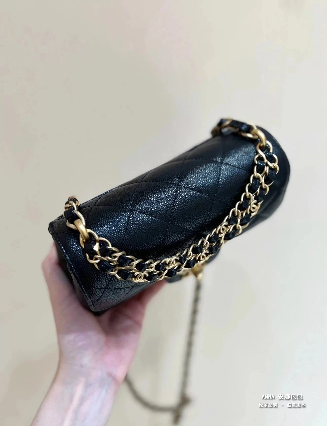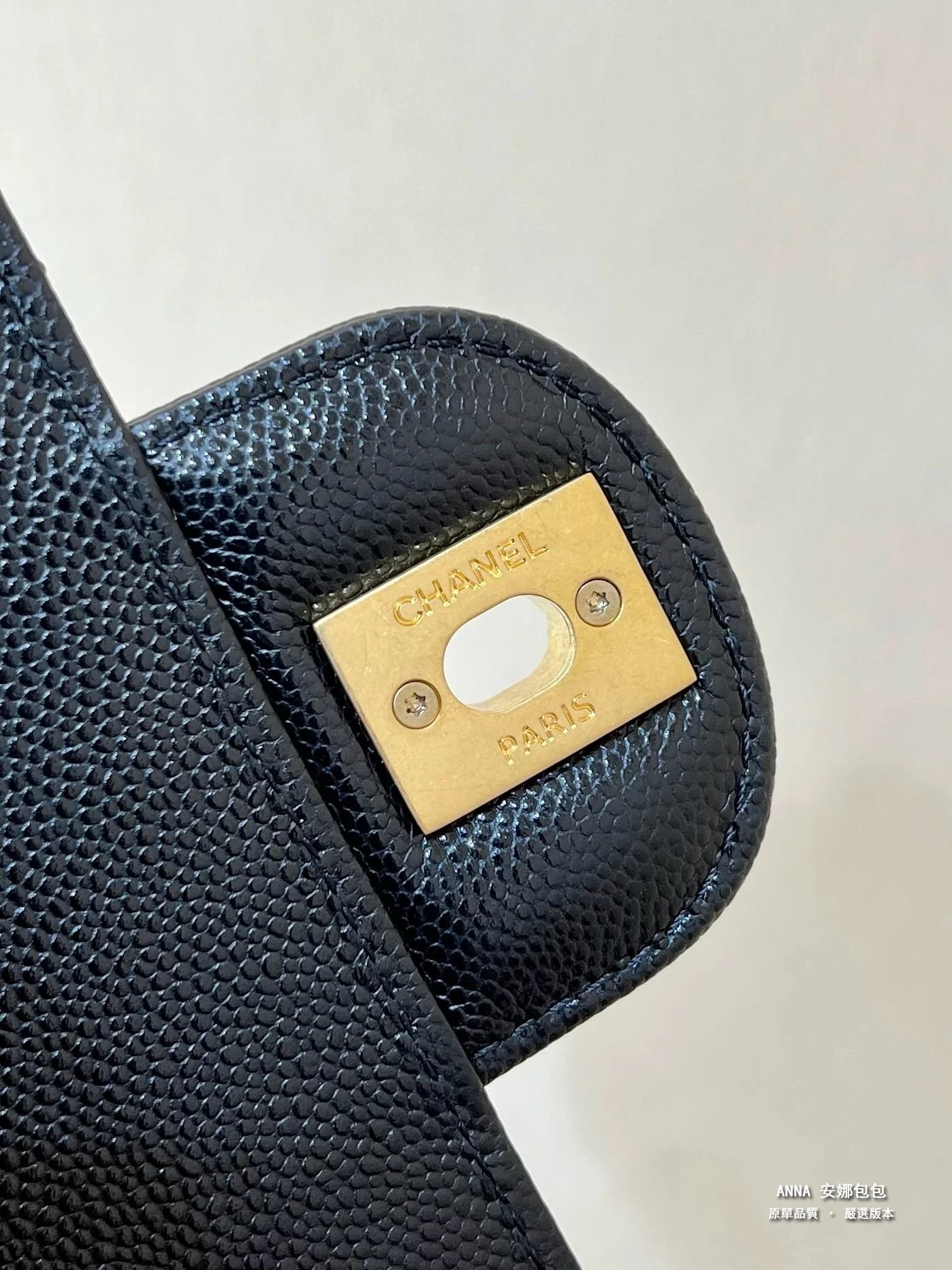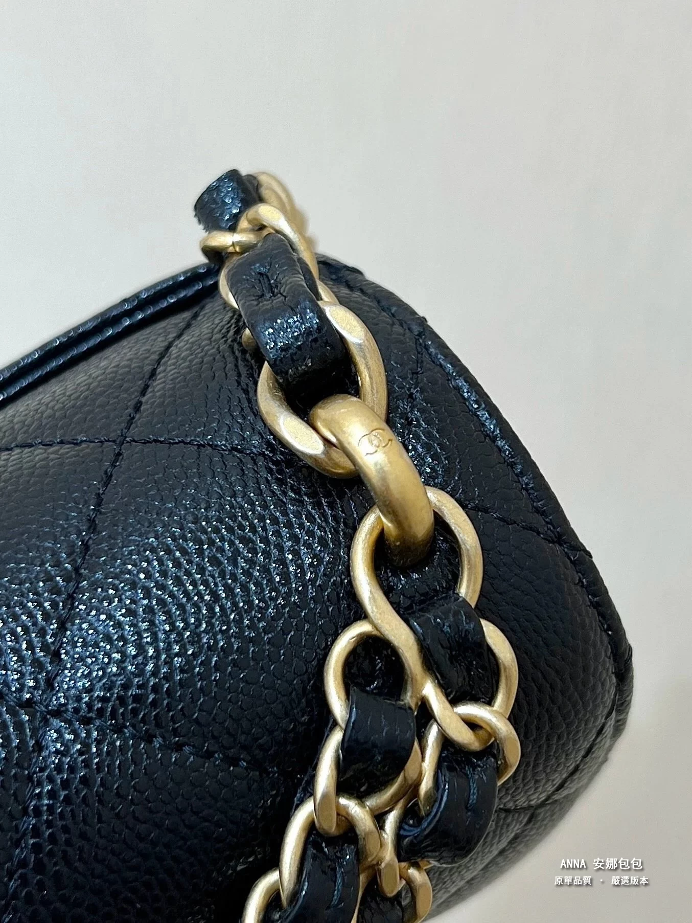 香奈兒 方胖子口蓋包 雙鏈條黑金 荔枝牛皮 頂級復刻版本 大容量 13×18×5.5cm