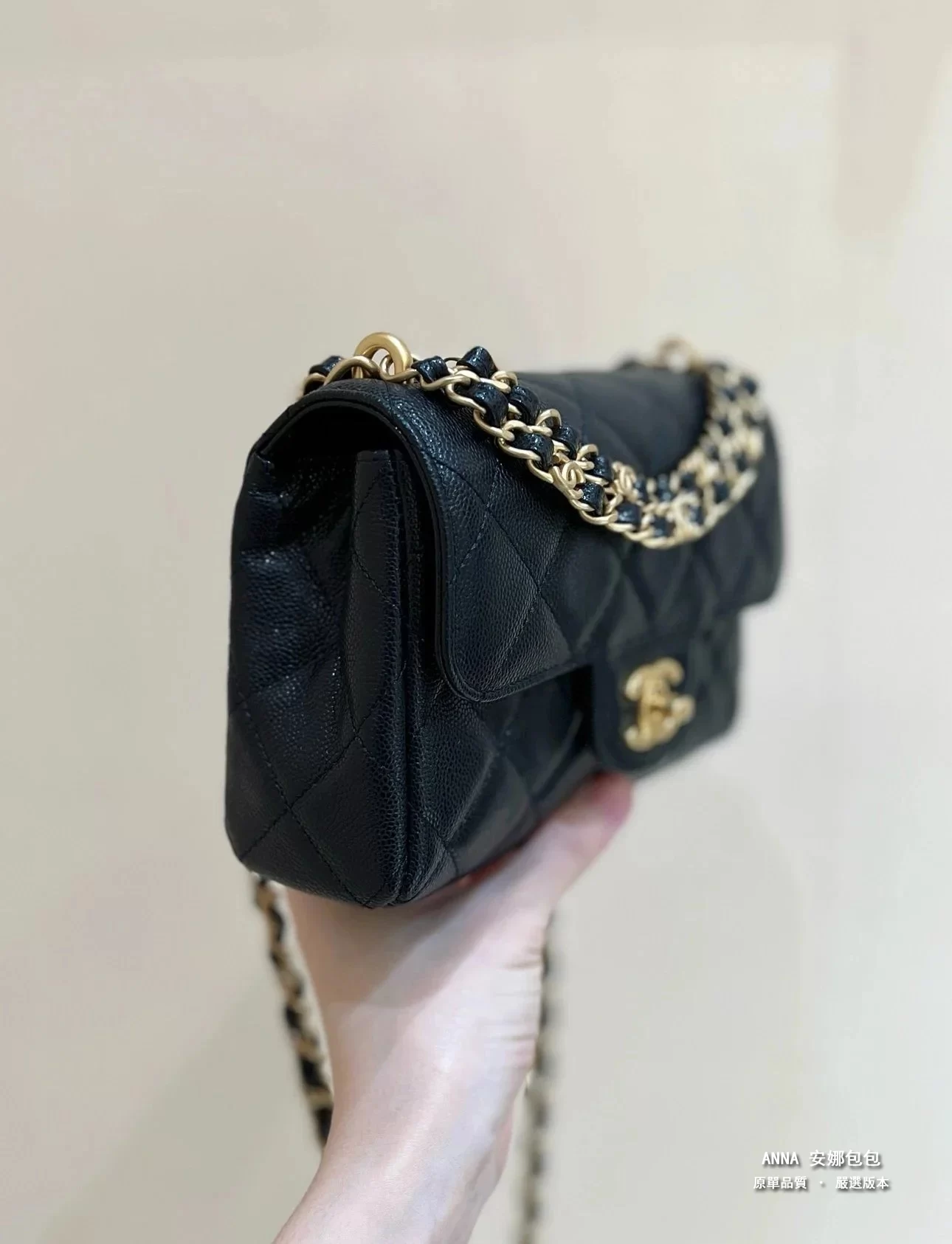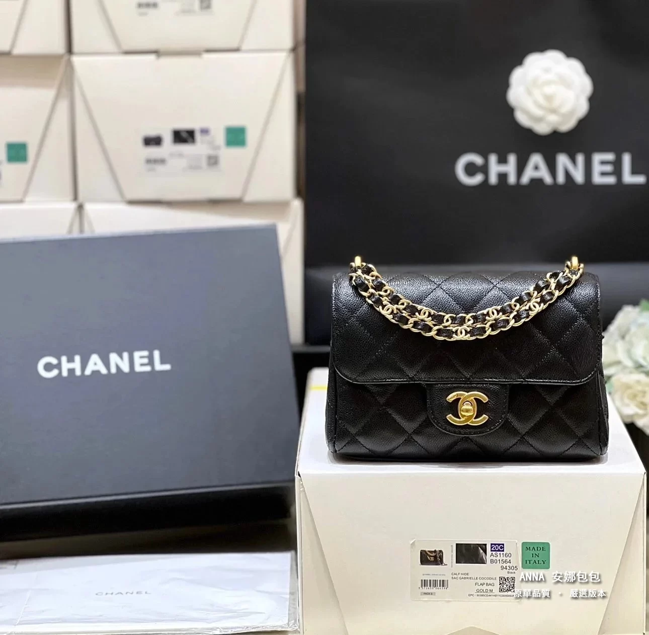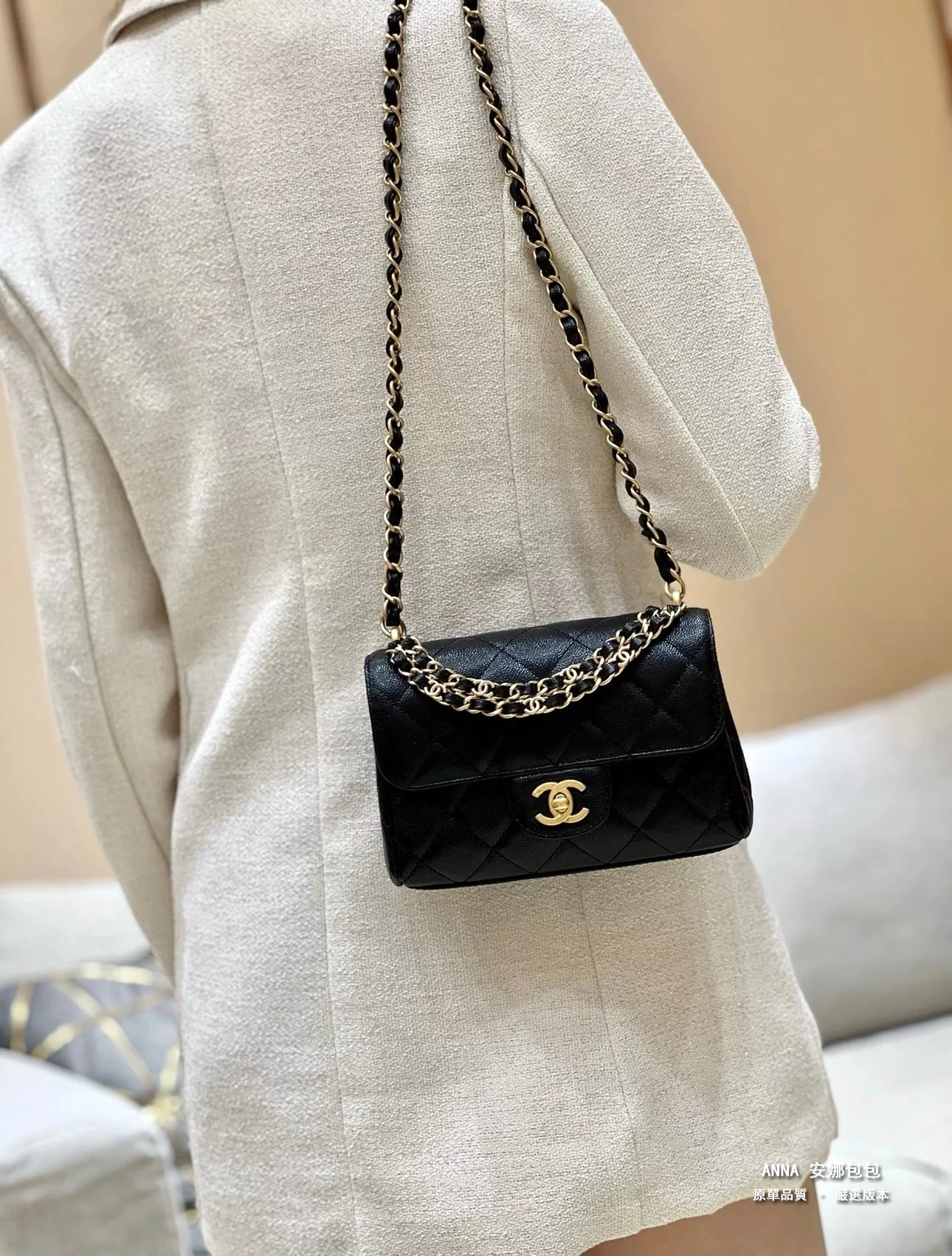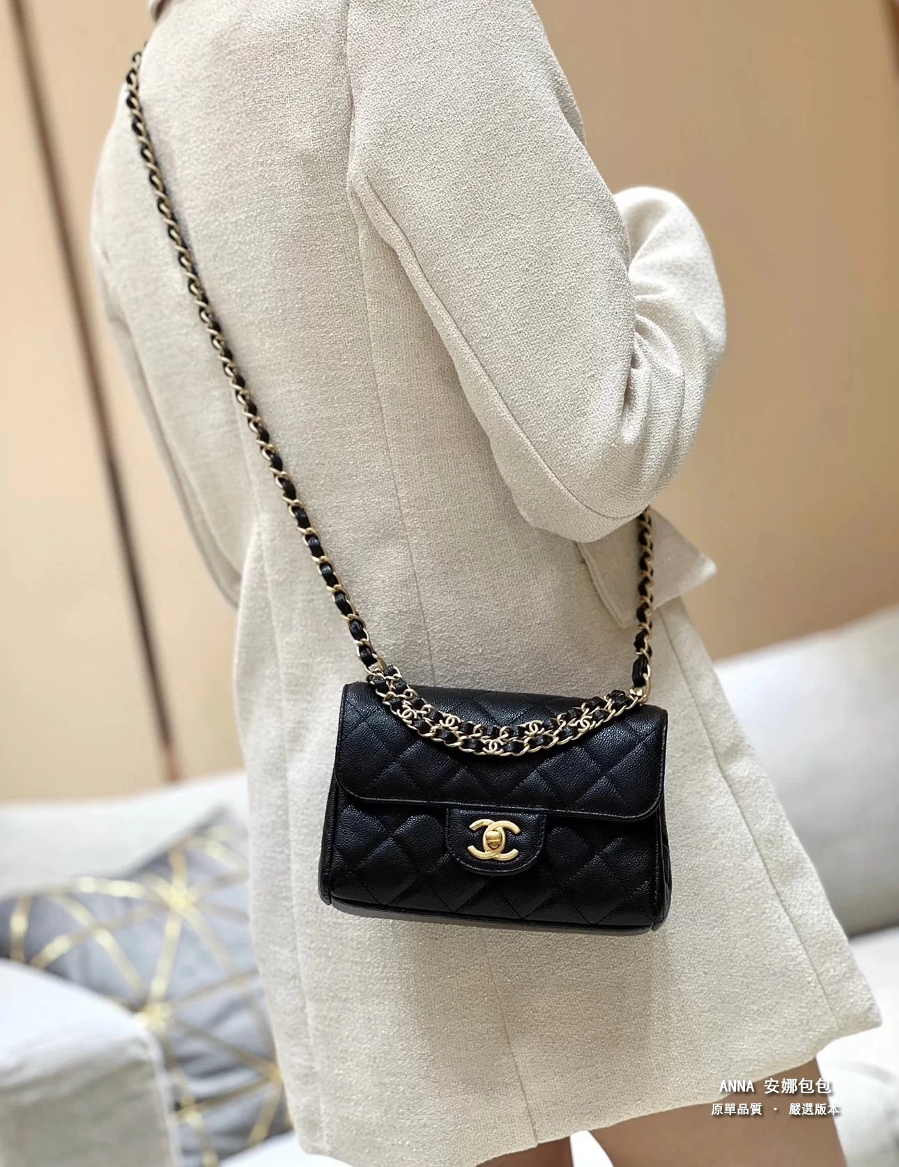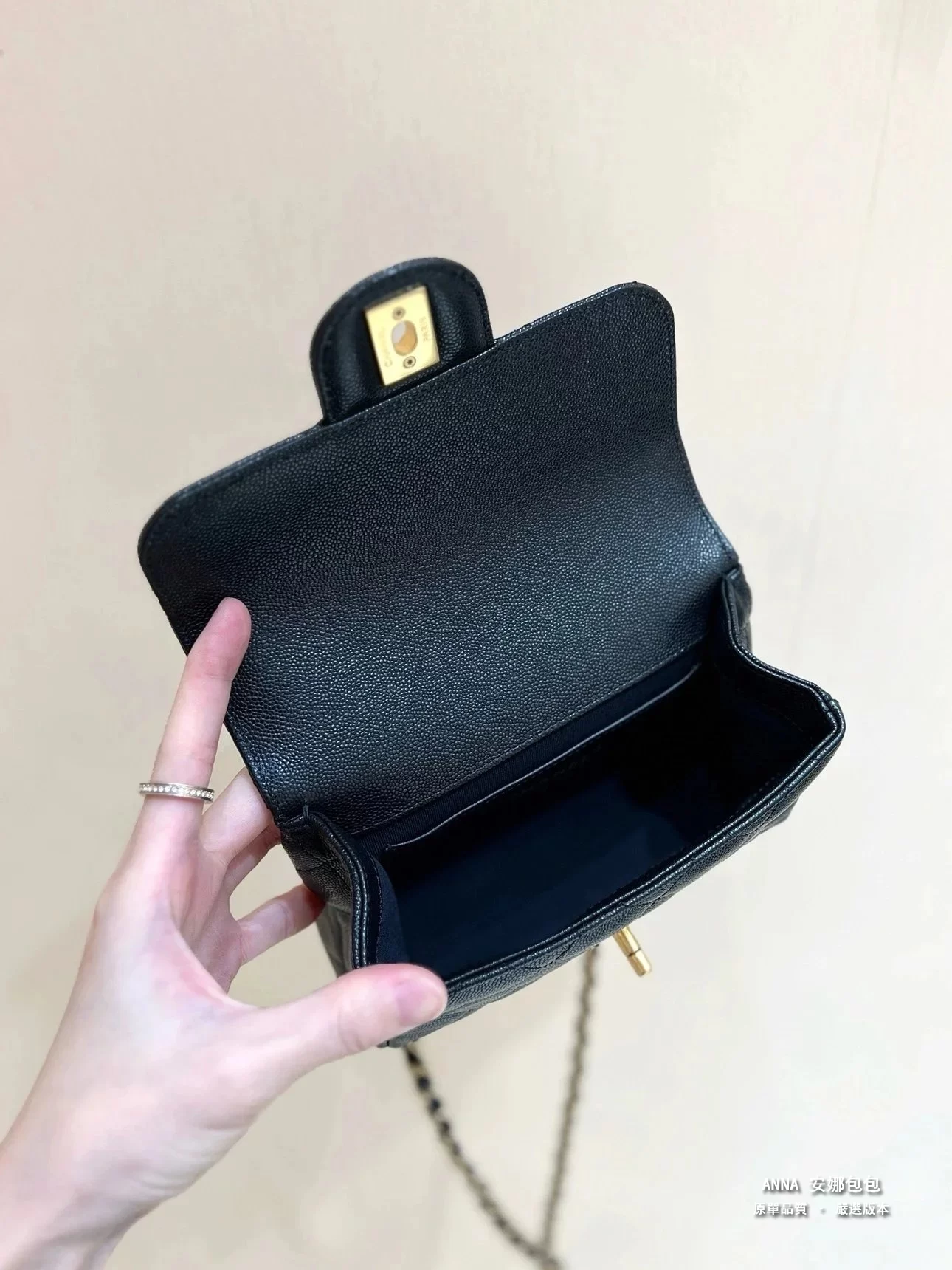 香奈兒 方胖子口蓋包 雙鏈條黑金 荔枝牛皮 頂級復刻版本 大容量 13×18×5.5cm