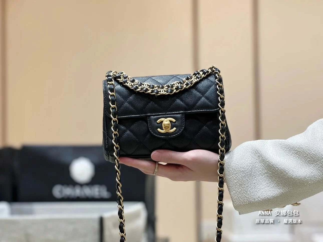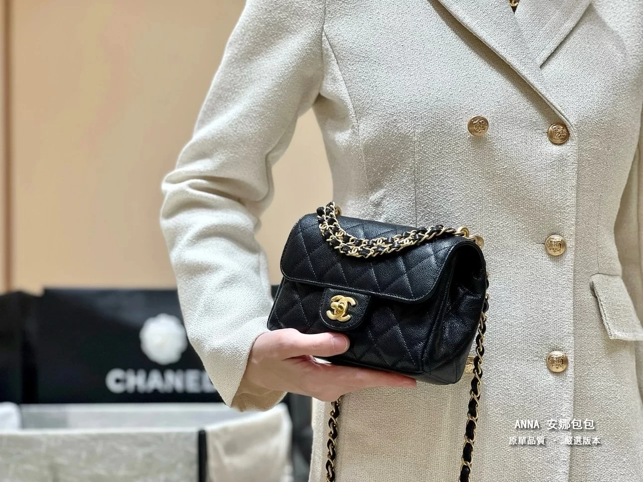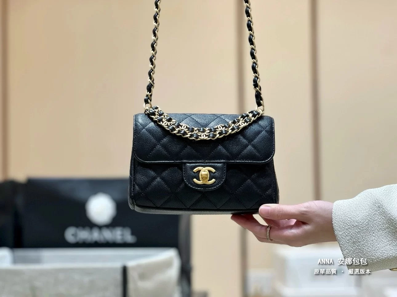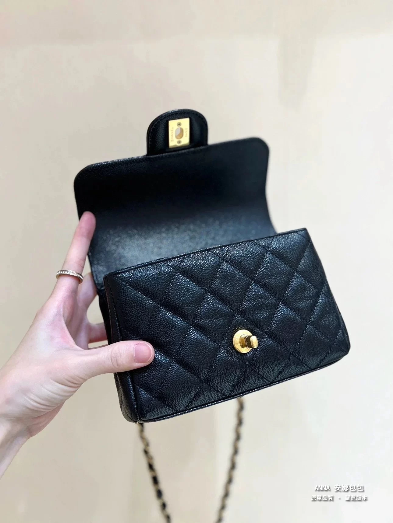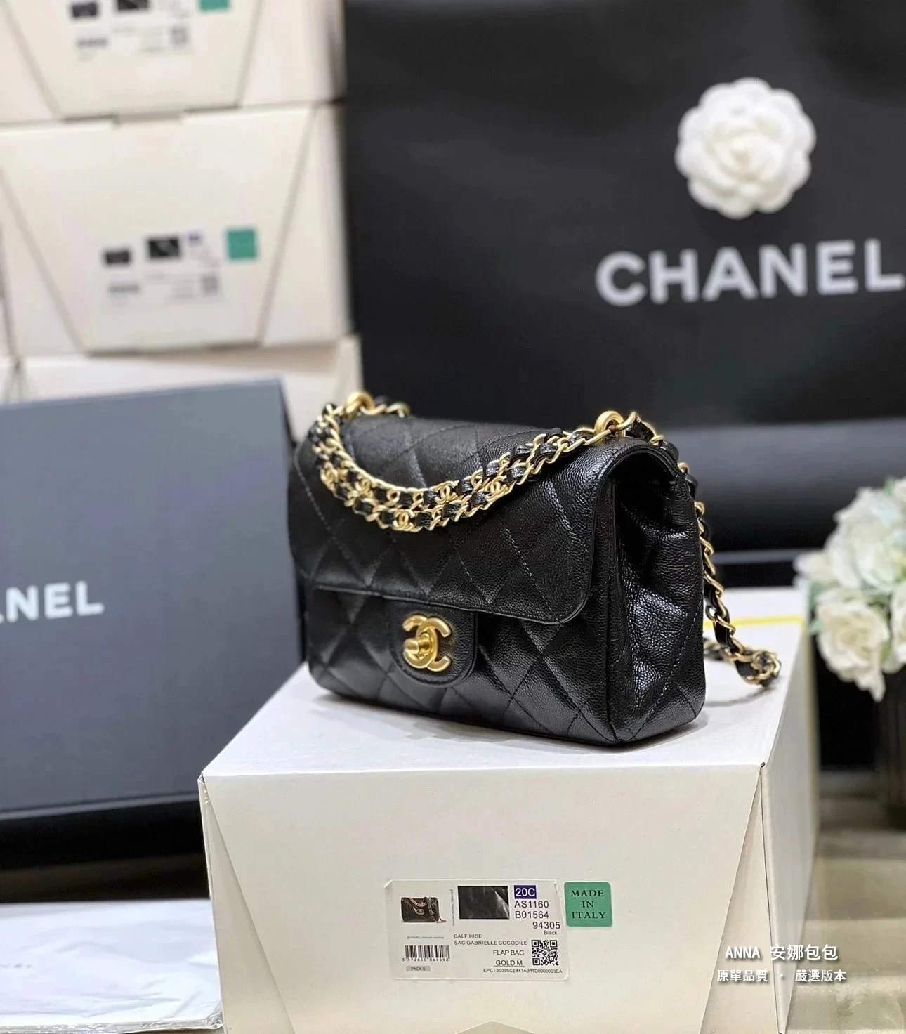香奈兒 方胖子口蓋包 雙鏈條黑金 荔枝牛皮 頂級復刻版本 大容量 13×18×5.5cm