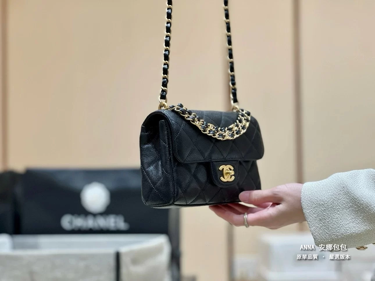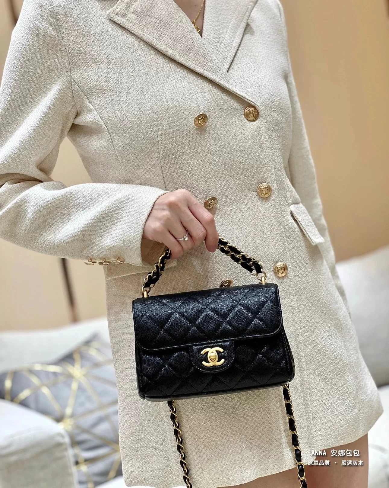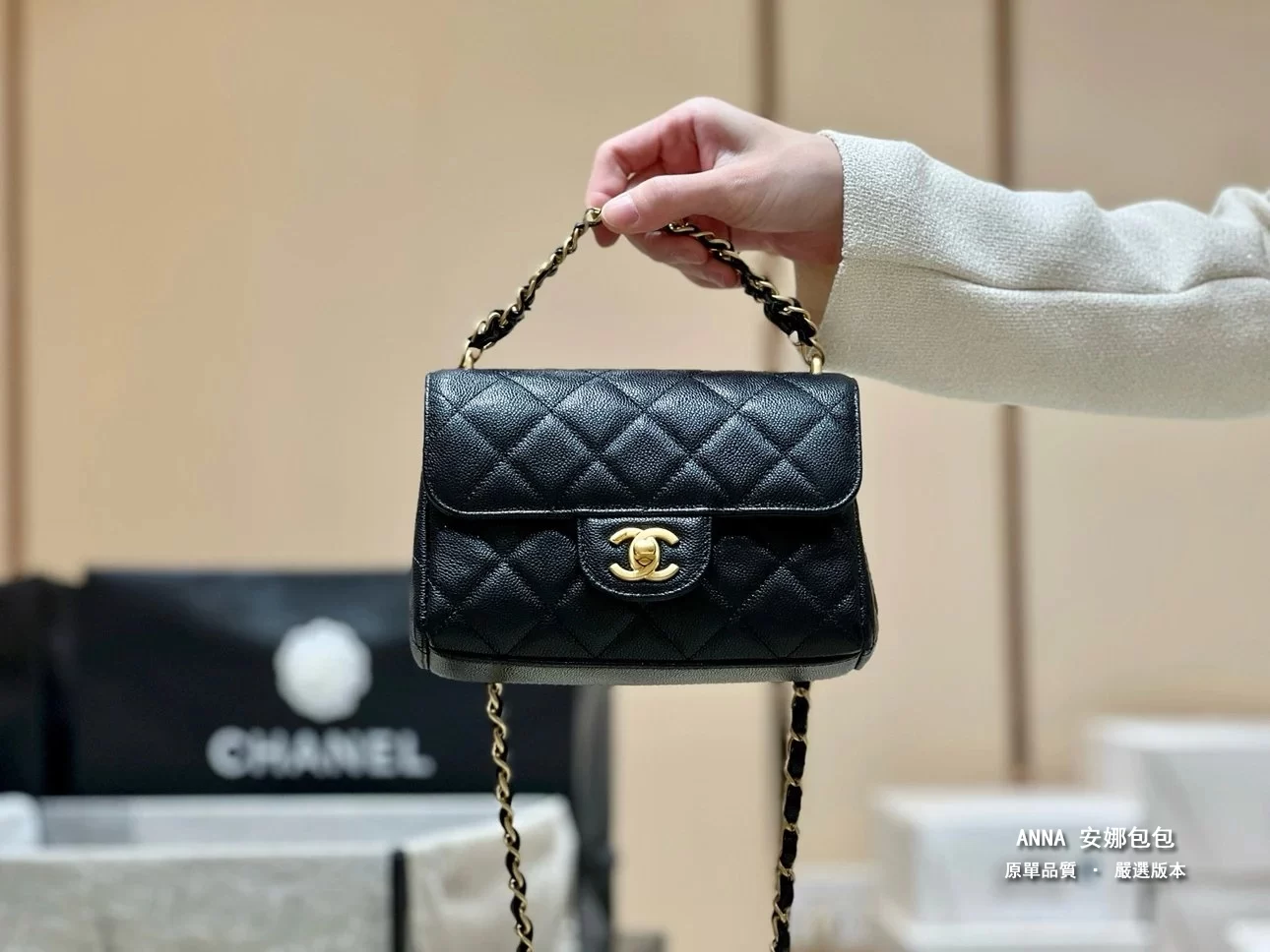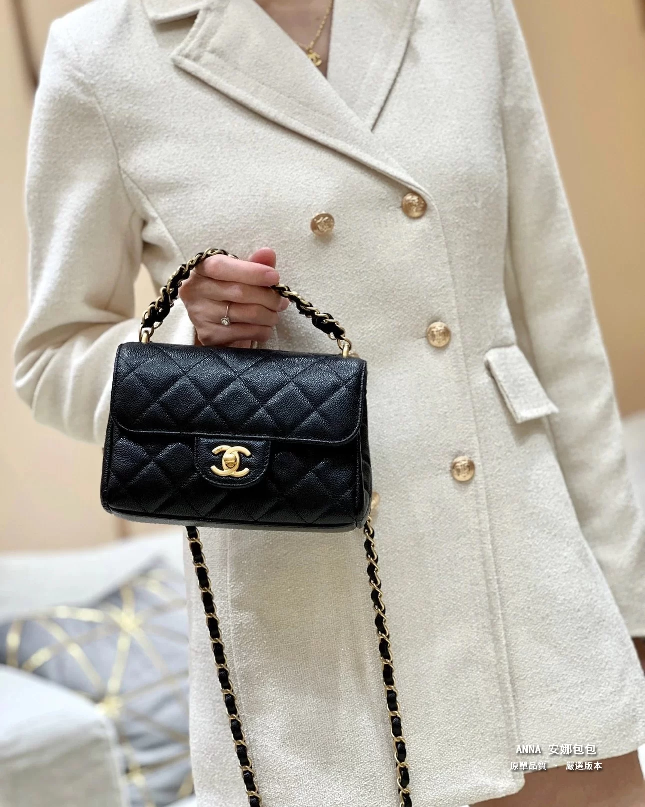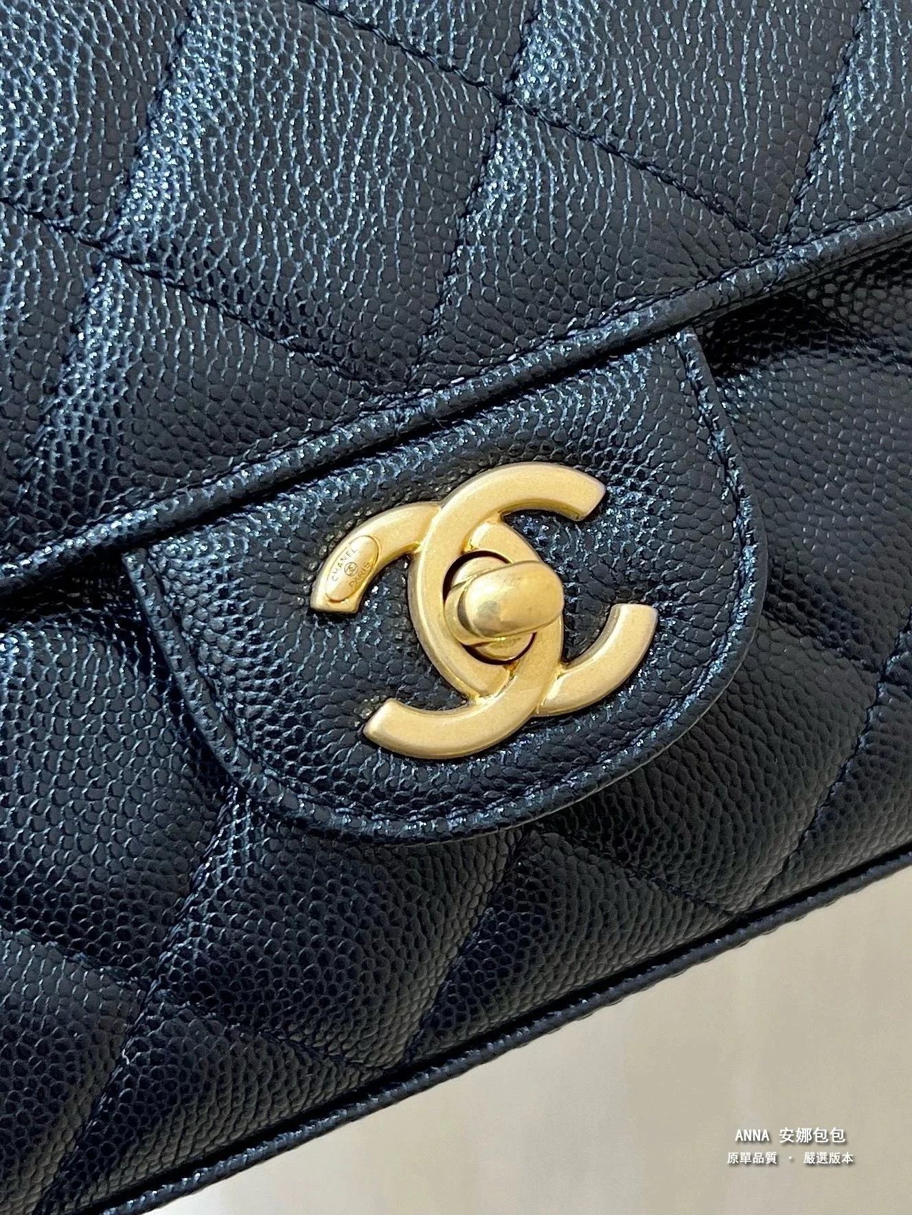 香奈兒 方胖子口蓋包 雙鏈條黑金 荔枝牛皮 頂級復刻版本 大容量 13×18×5.5cm
