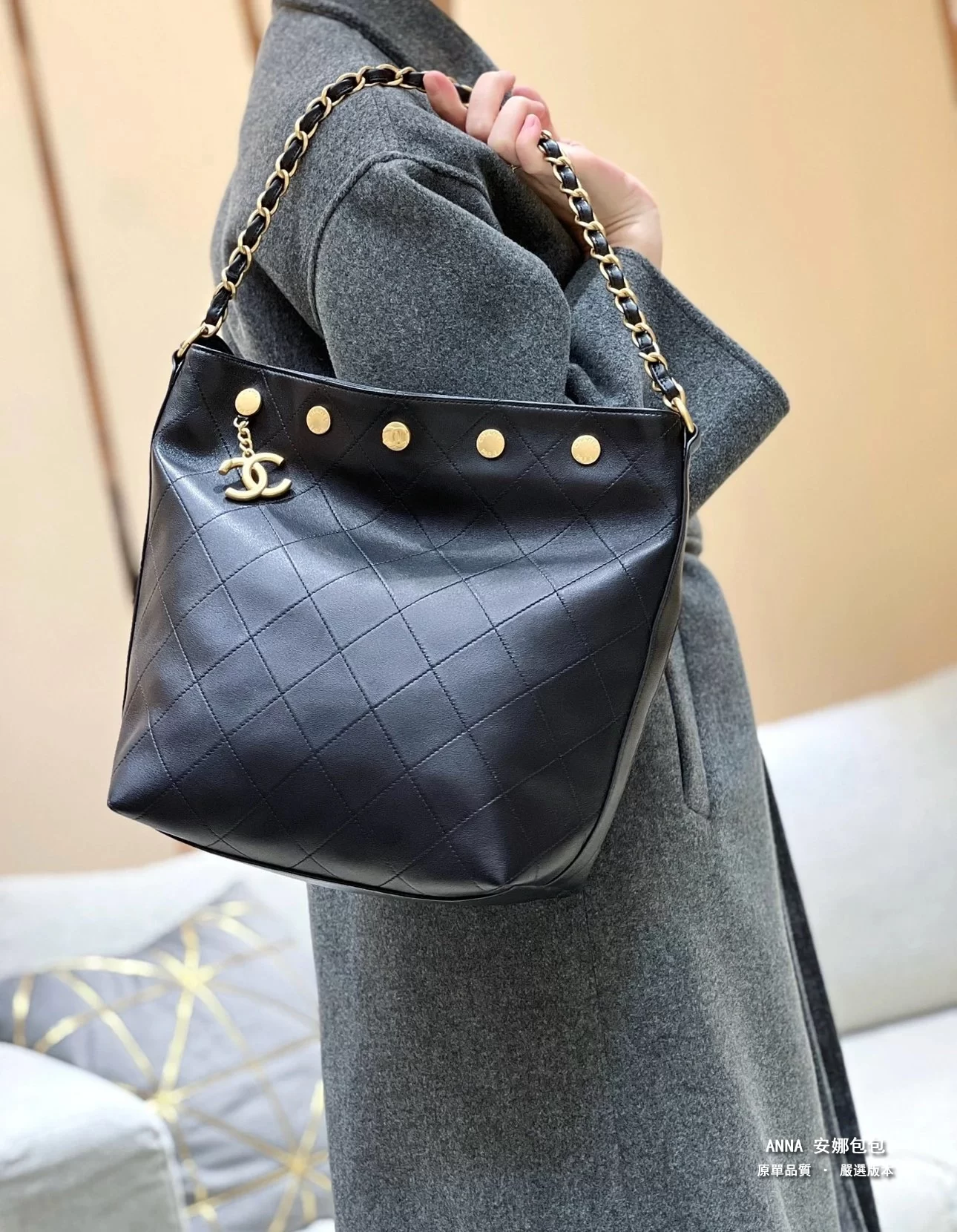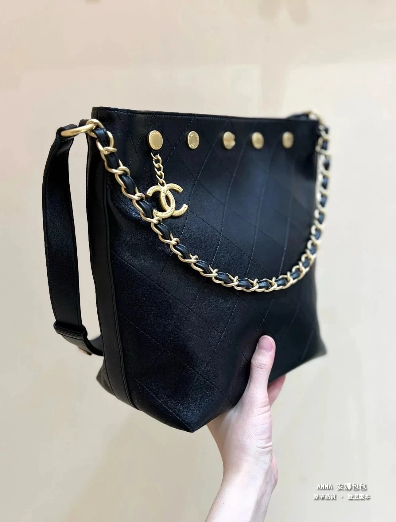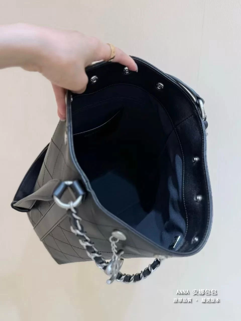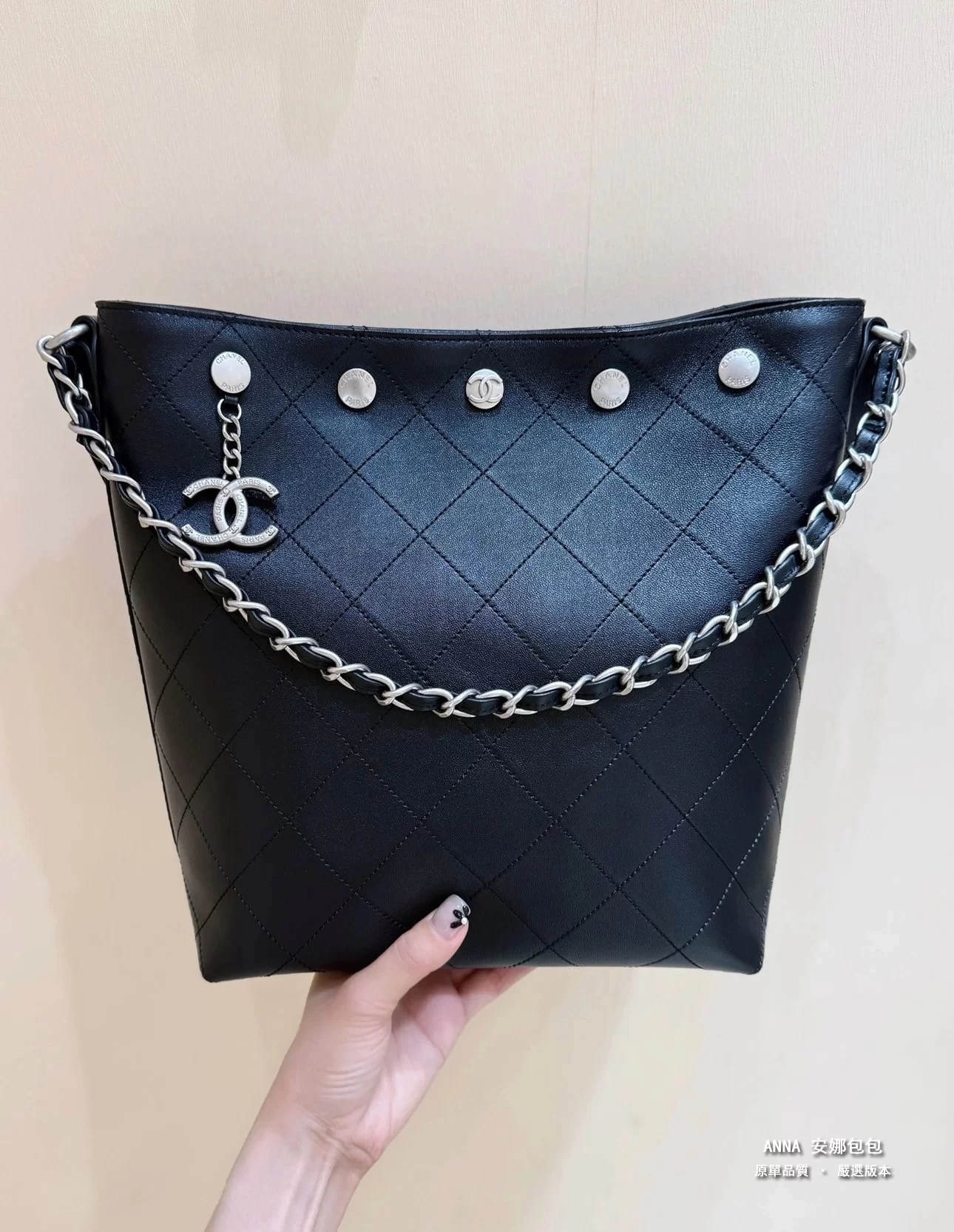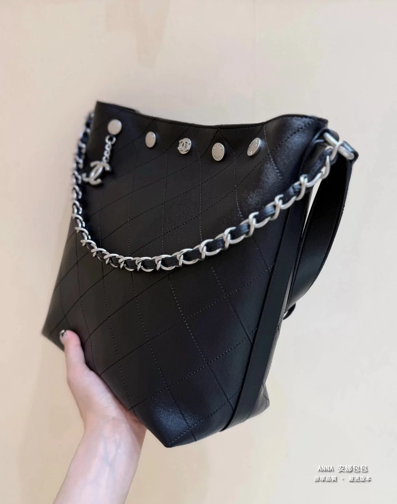 香奈兒 水桶包 鉚釘鏈條 菱格小羊皮 原廠皮復刻版本 28cm