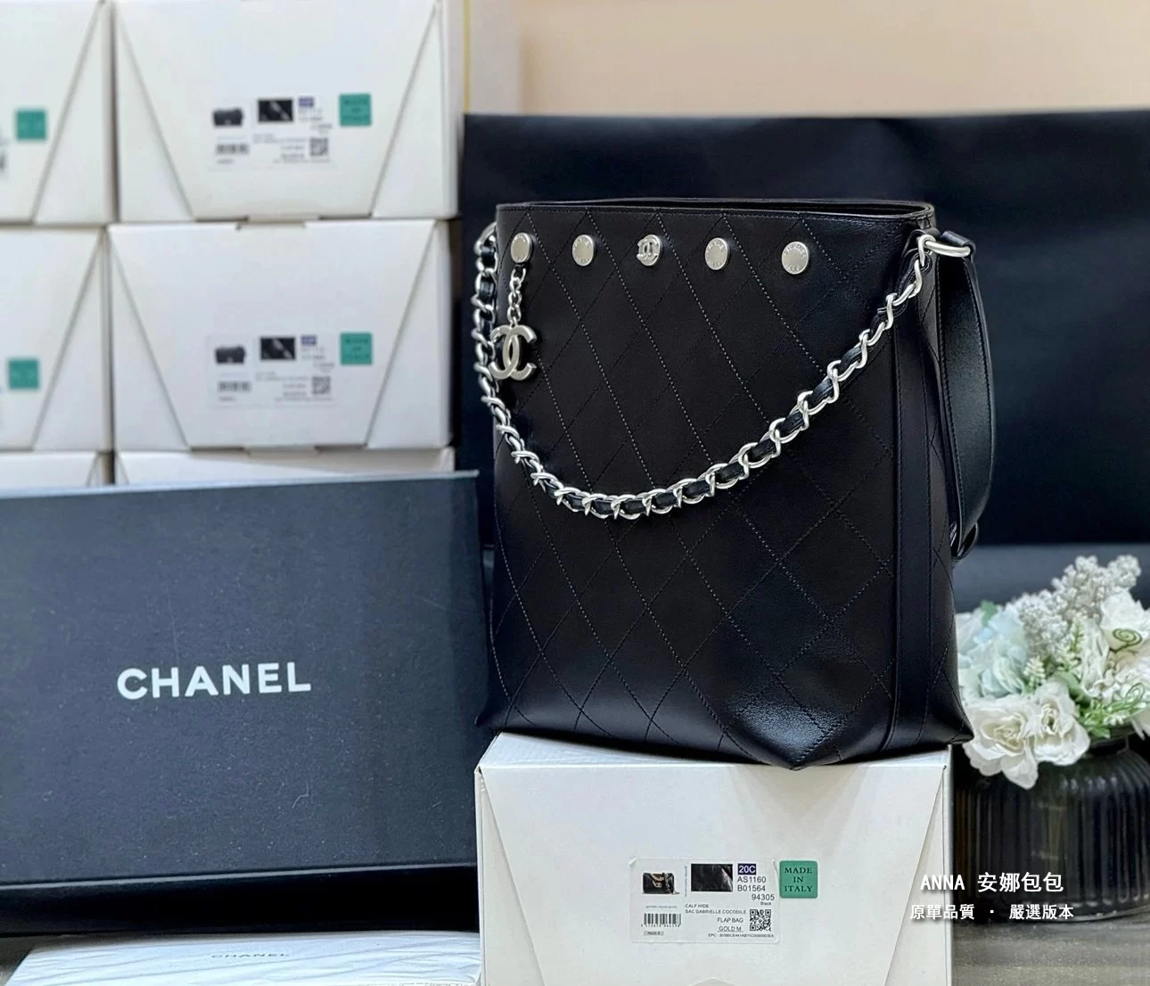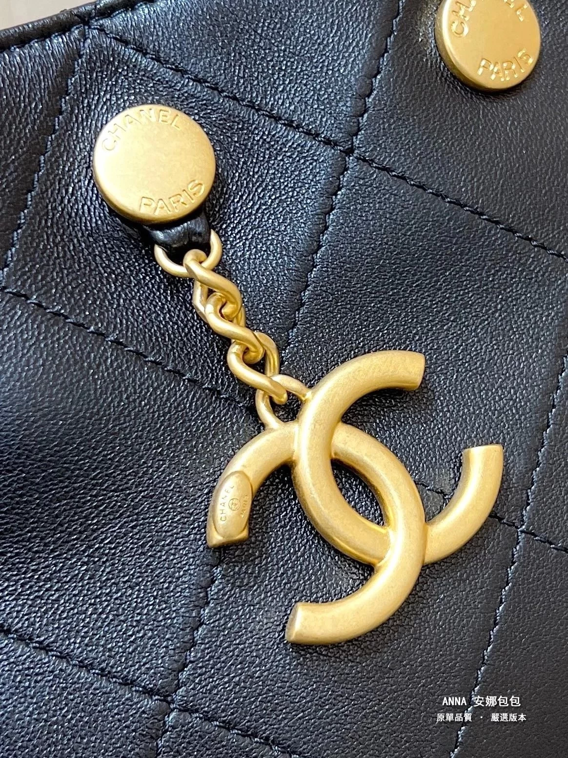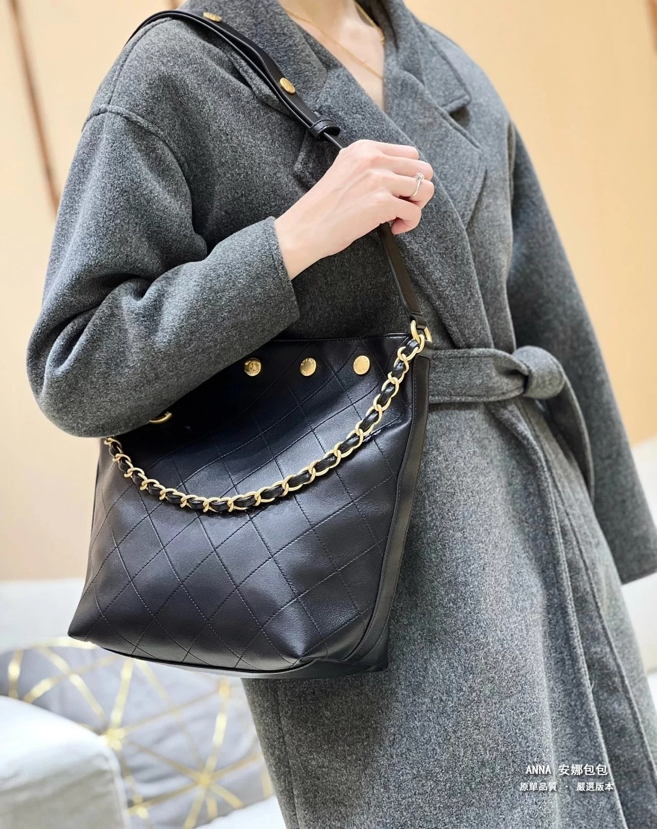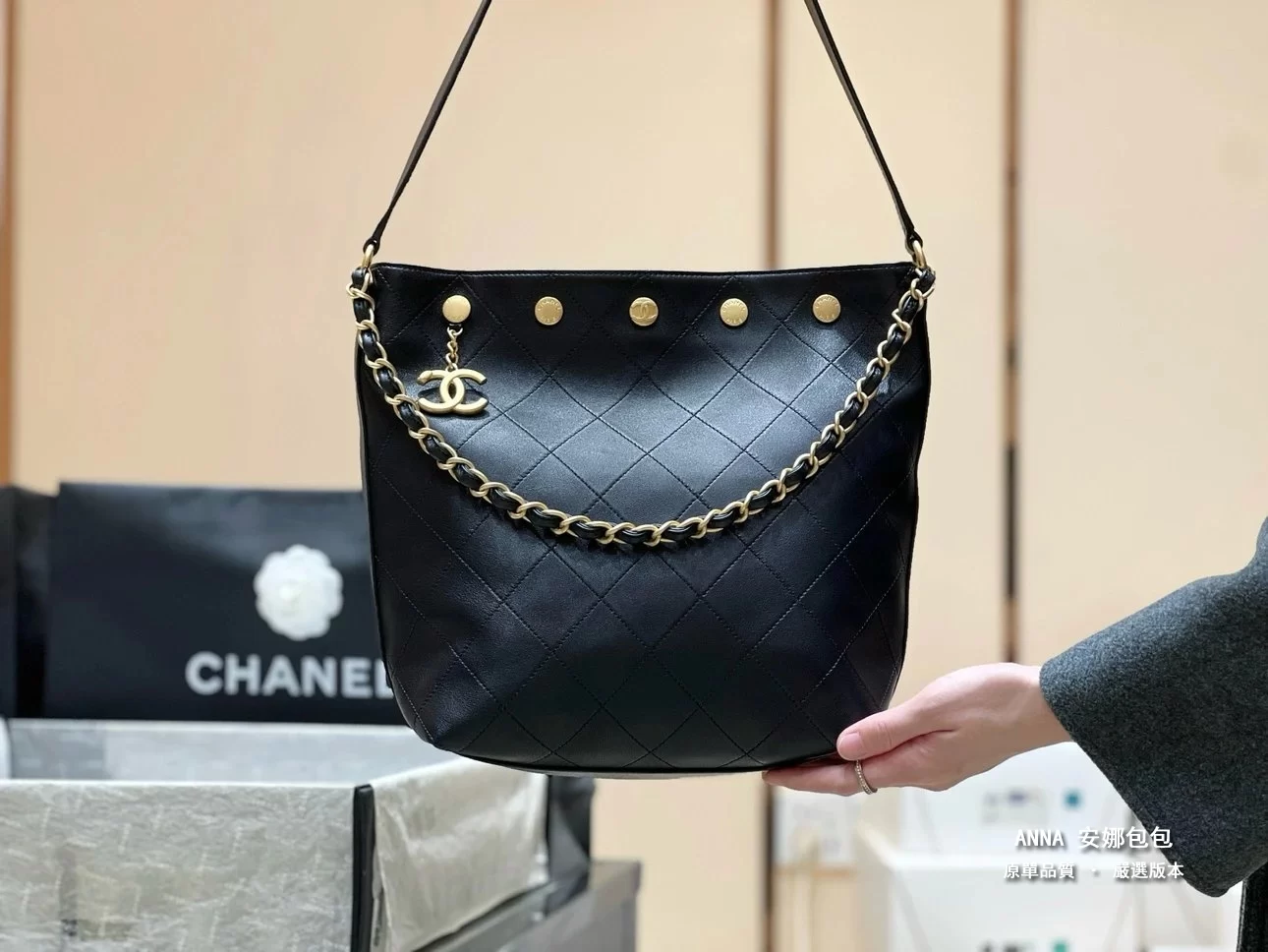 香奈兒 水桶包 鉚釘鏈條 菱格小羊皮 原廠皮復刻版本 28cm