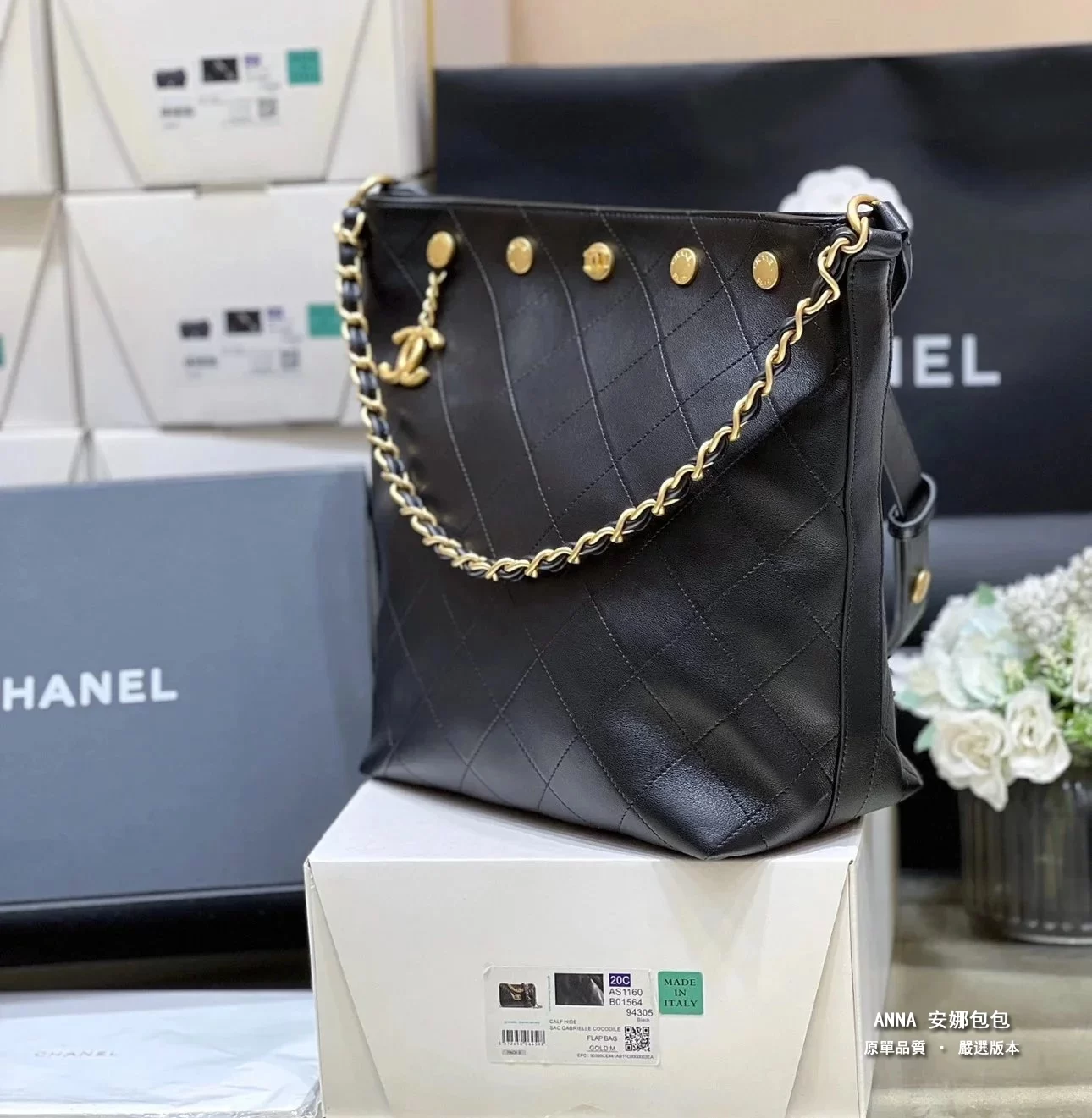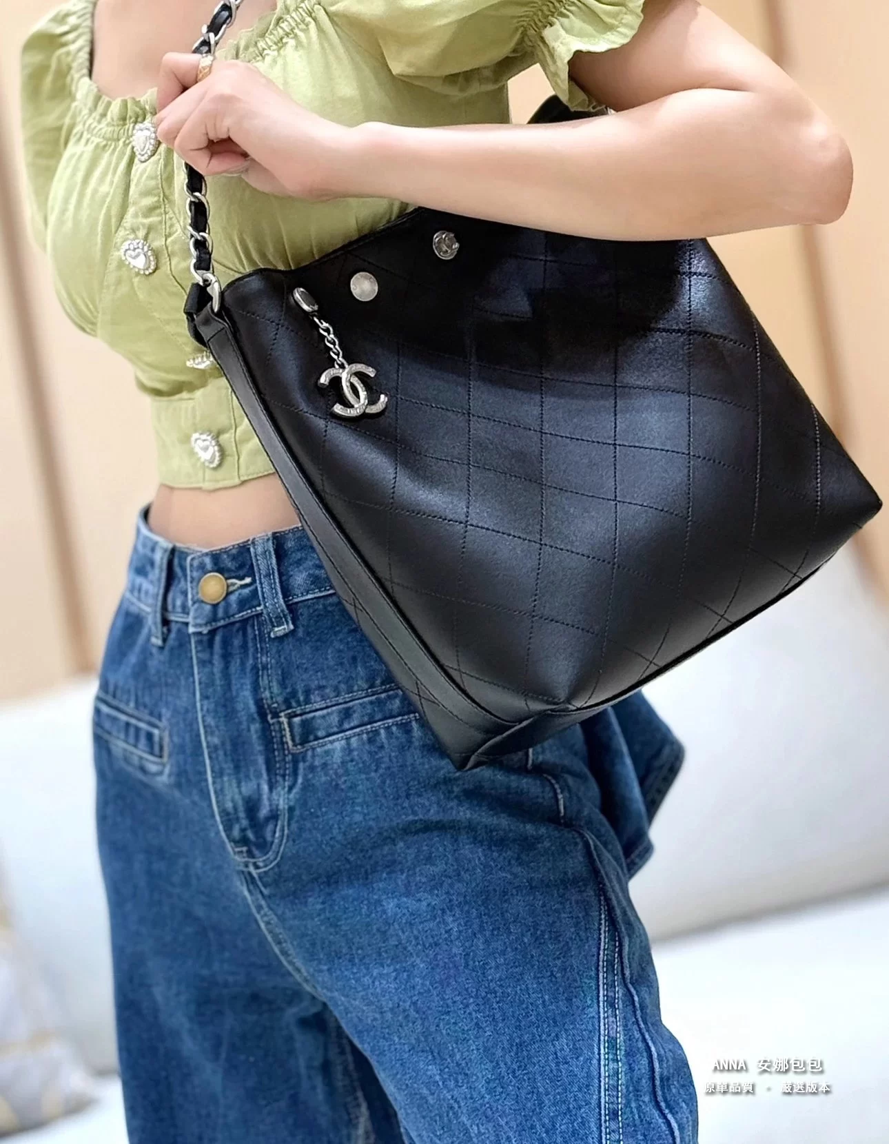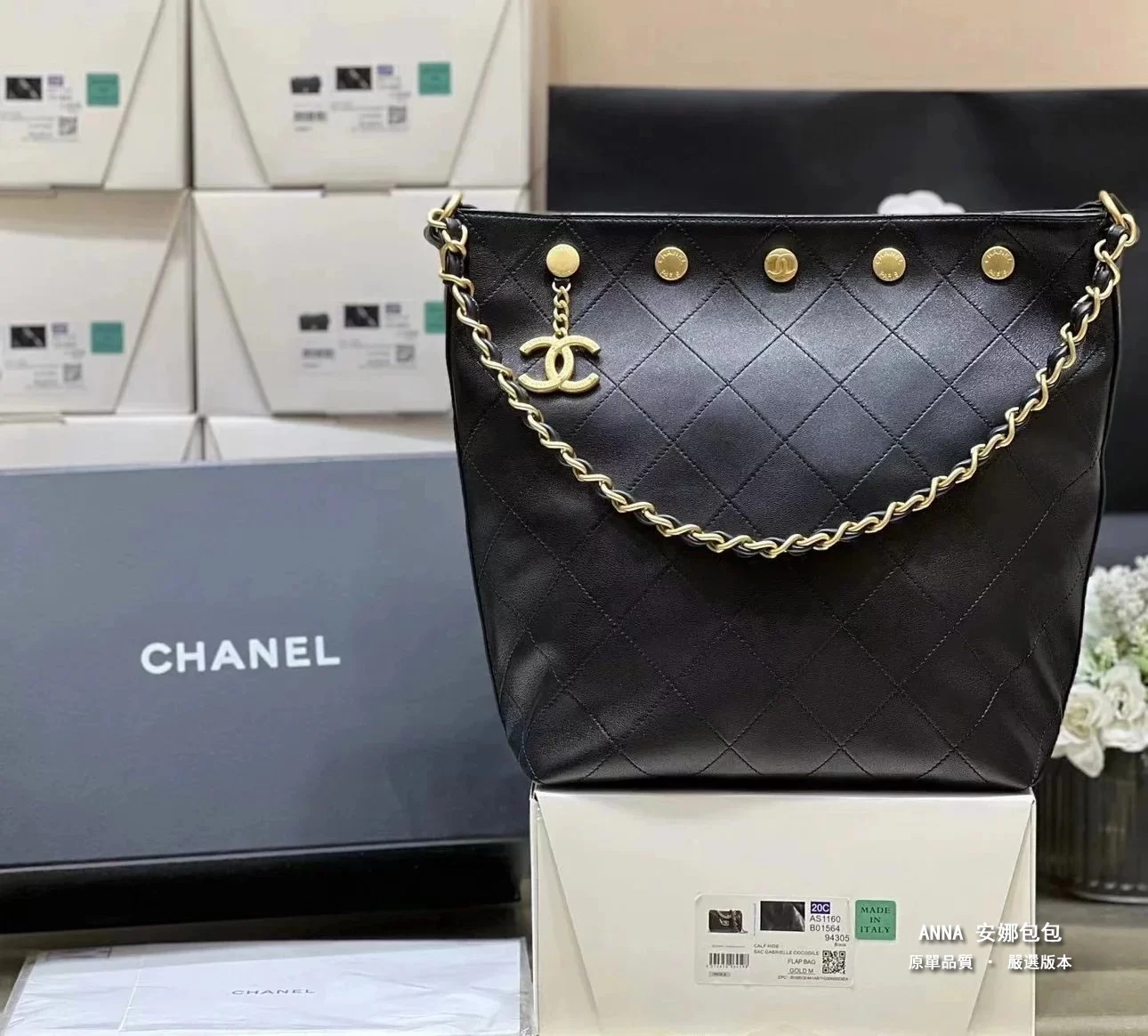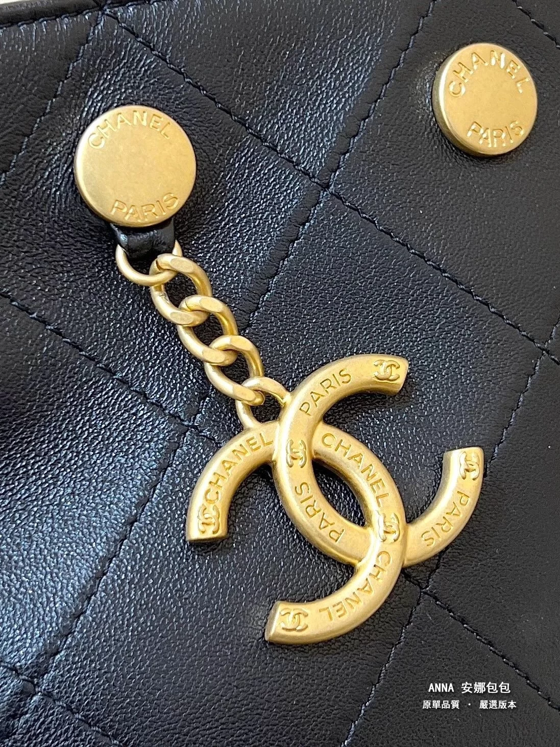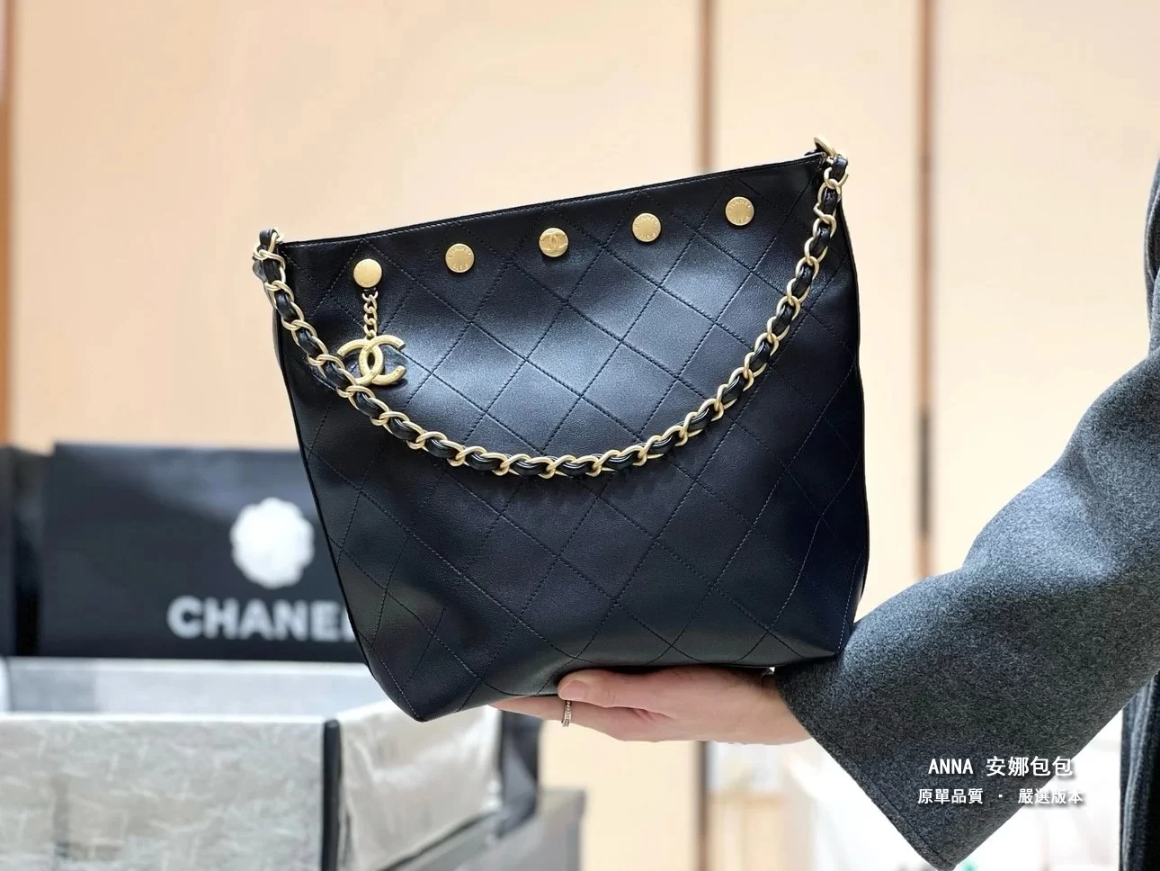 香奈兒 水桶包 鉚釘鏈條 菱格小羊皮 原廠皮復刻版本 28cm