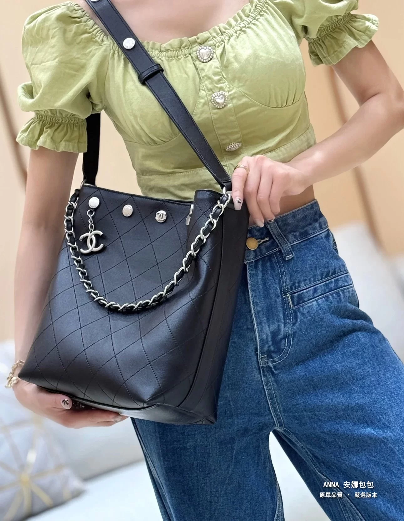 Chane1 25P 鉚釘水桶包[色]