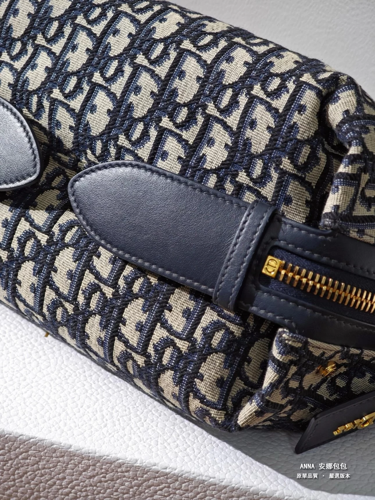 採用藍色 Obique 印花面料等材質精心製作,主隔層內設有一個拉鍊口袋,兩個側面裝飾性口袋搭配大號皮革拉鍊頭,飾以 Christian Dior Pars 標誌。