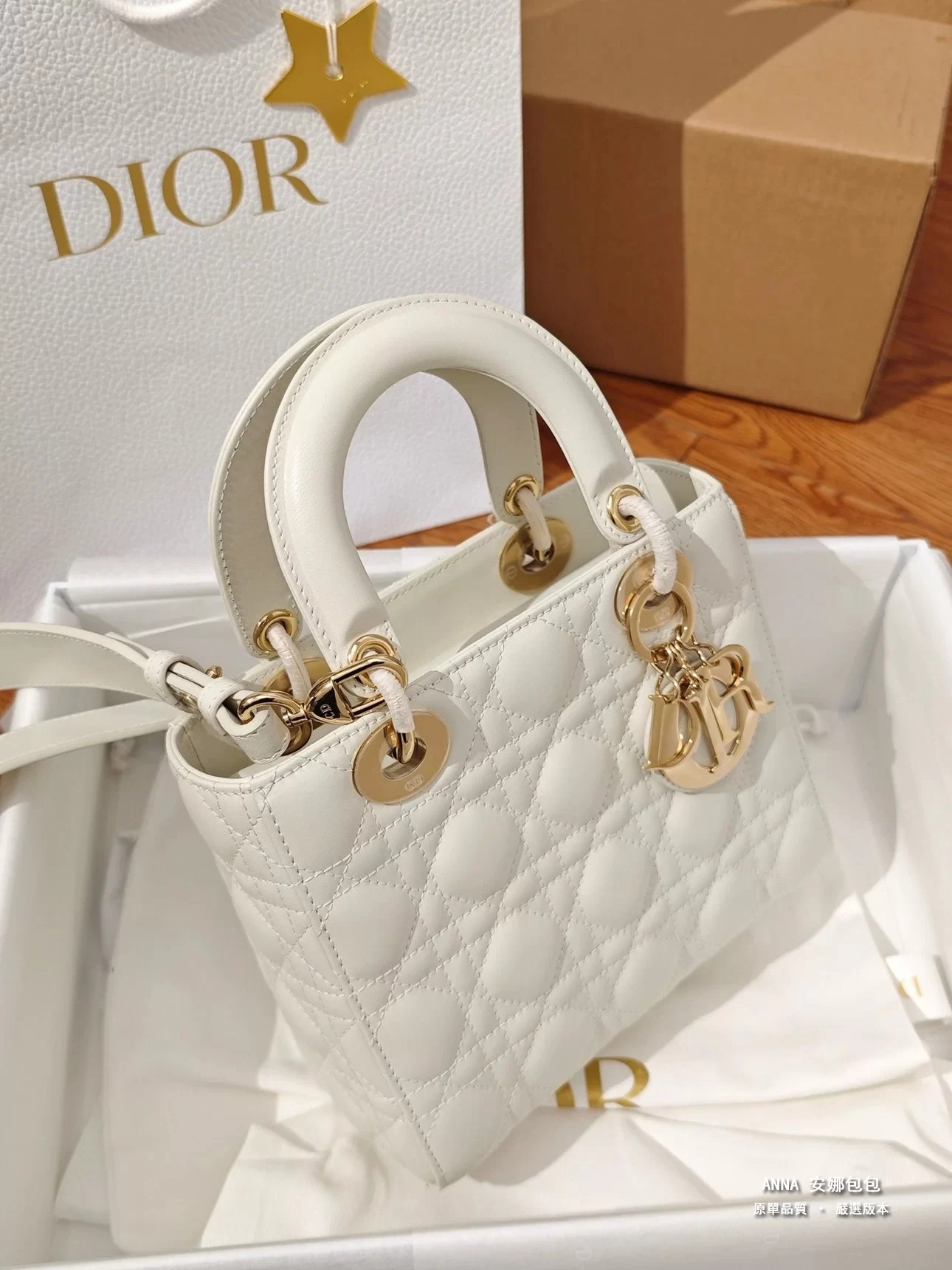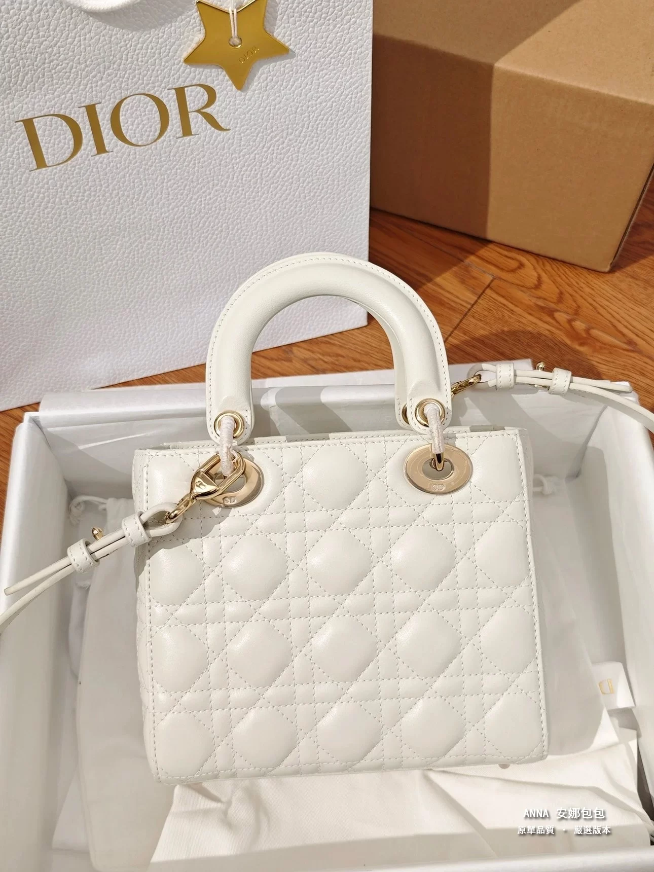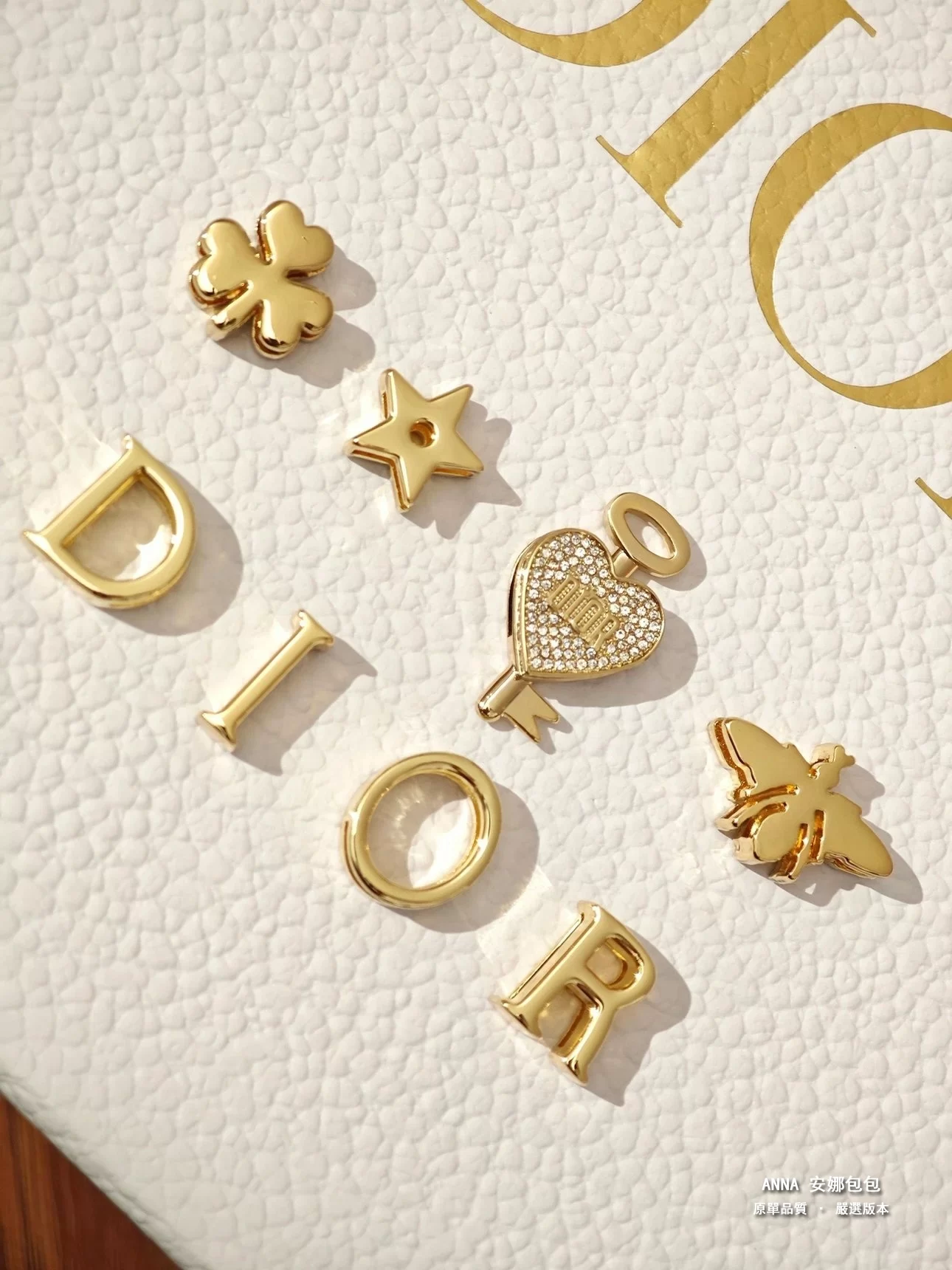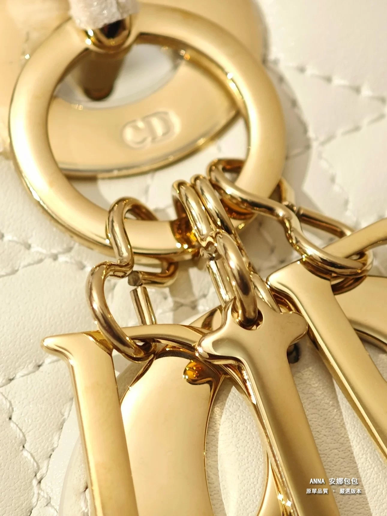 • 五金:淺金色金屬五金(D.I.O.R. 吊飾)