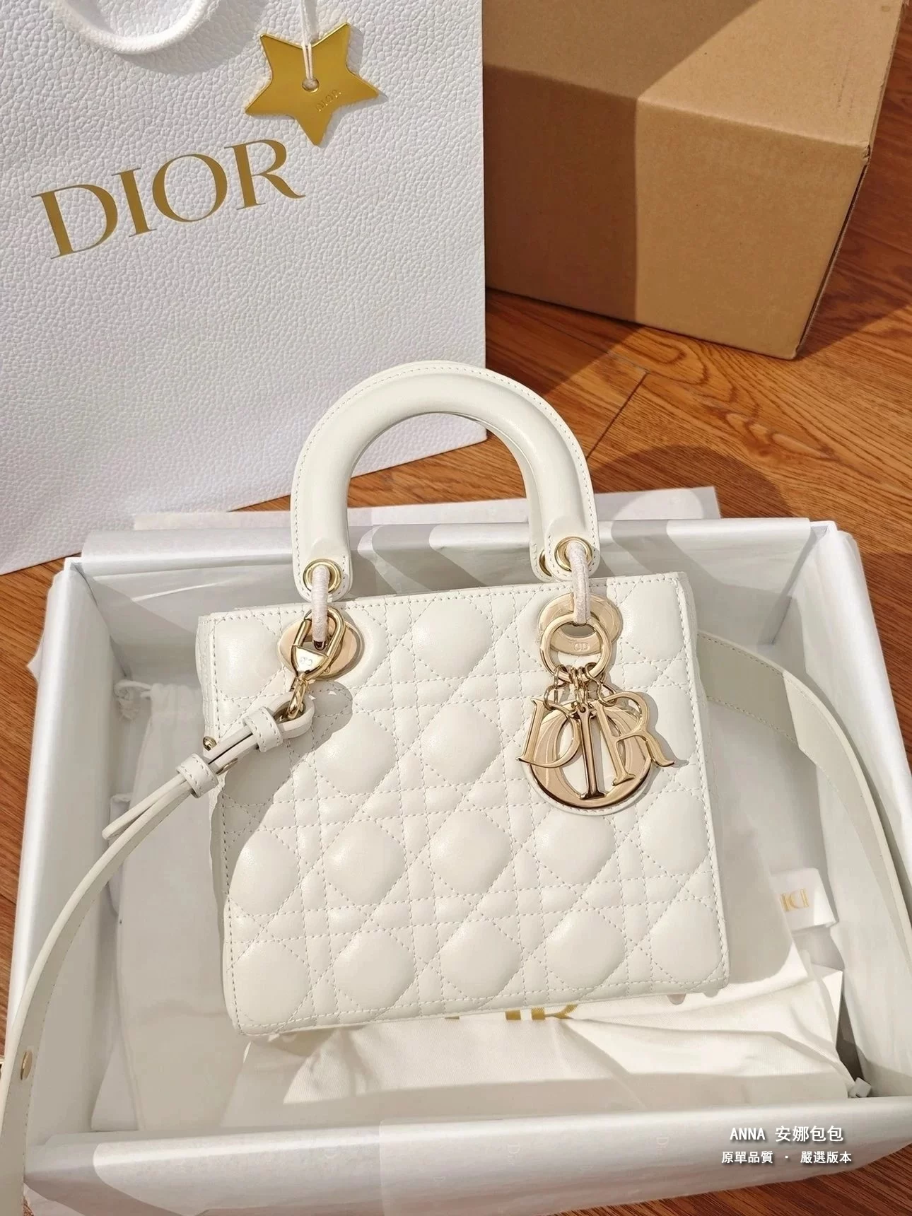 • 五金:淺金色金屬五金(D.I.O.R. 吊飾)