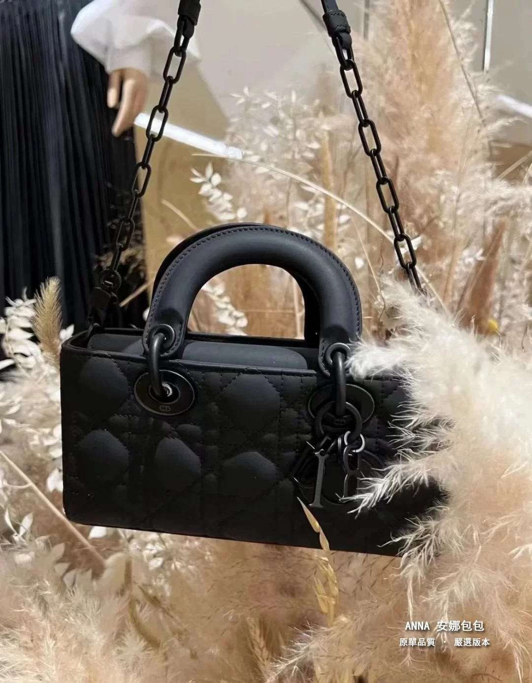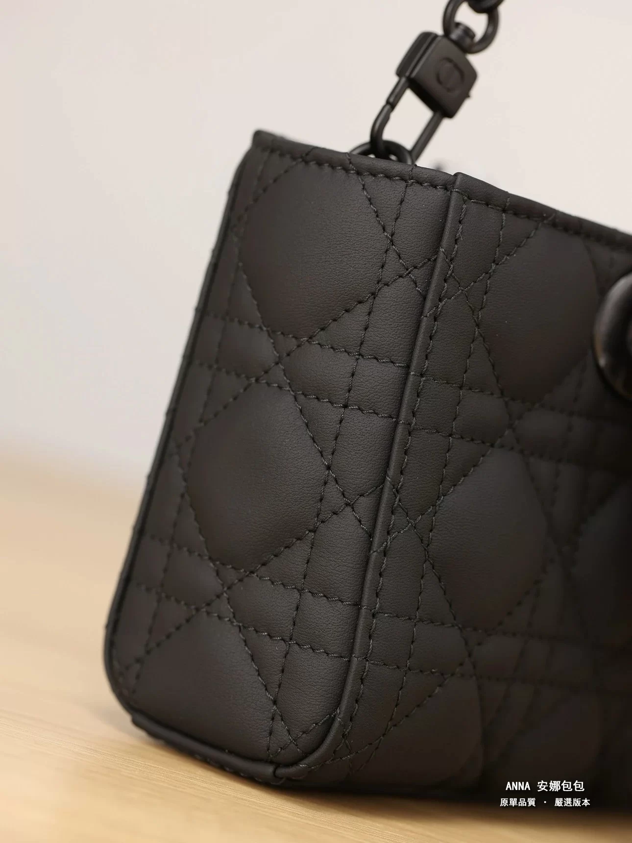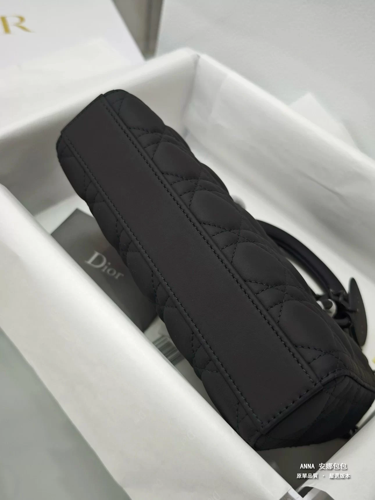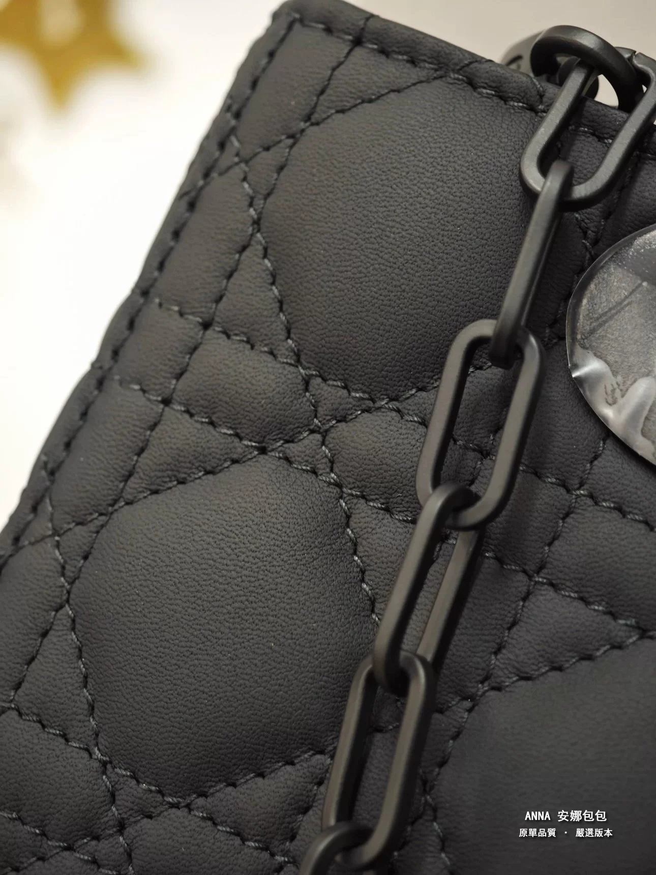 - 材質:黑色啞光牛皮革(藤格紋 Cannage 絎縫);內裡:羊皮革 / 牛皮革