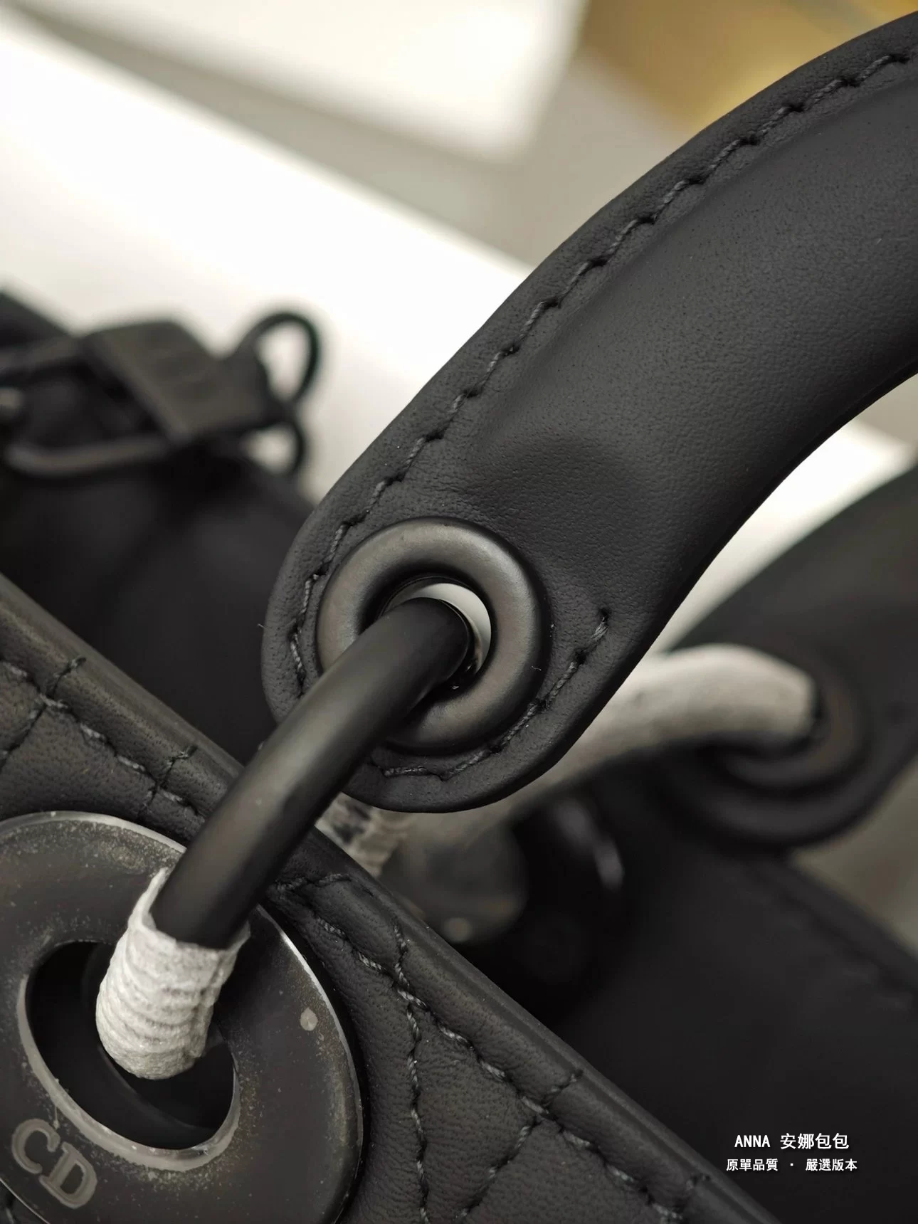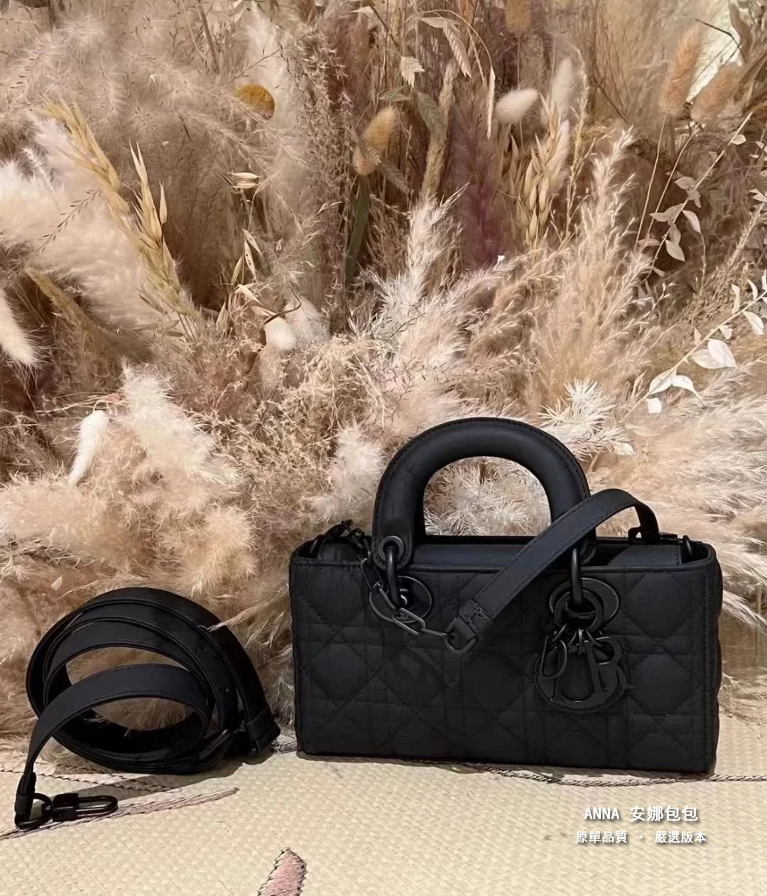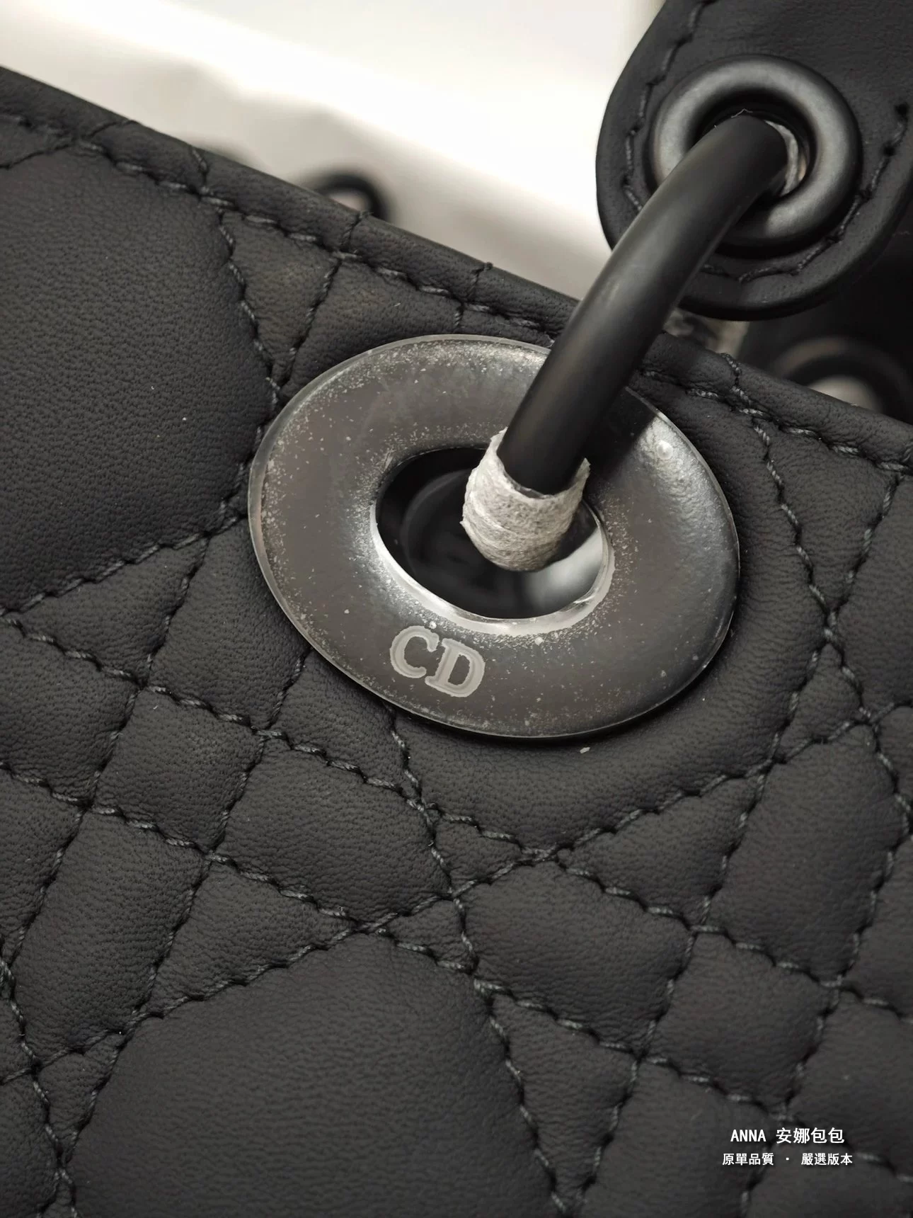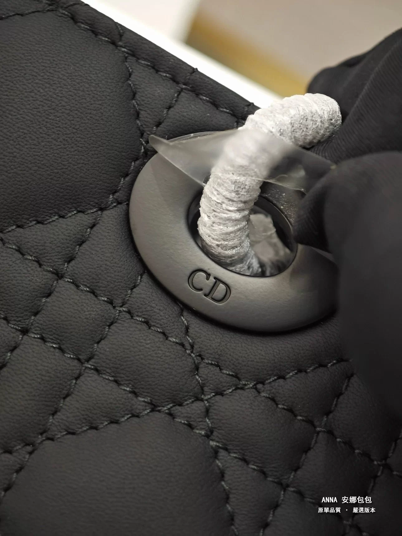 - 材質:黑色啞光牛皮革(藤格紋 Cannage 絎縫);內裡:羊皮革 / 牛皮革