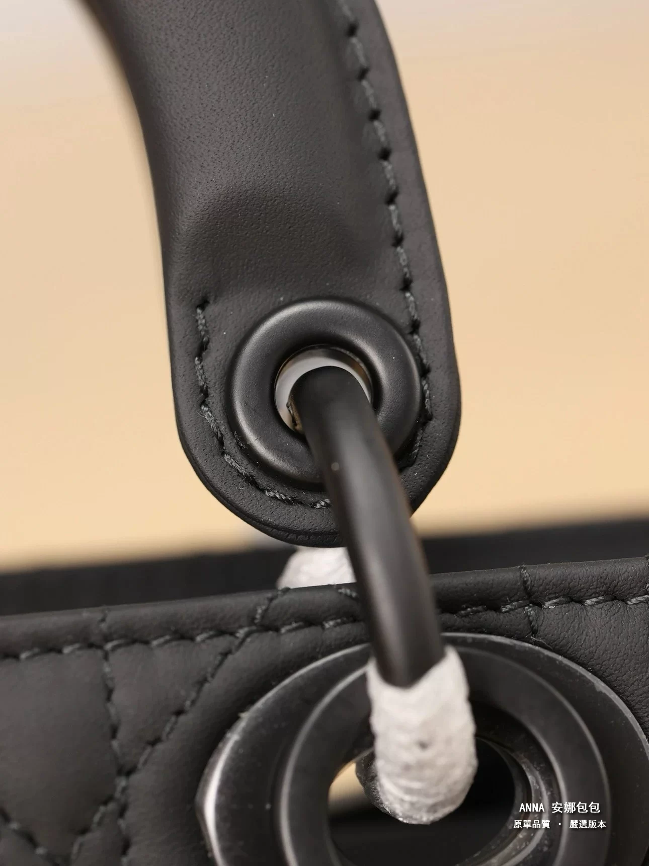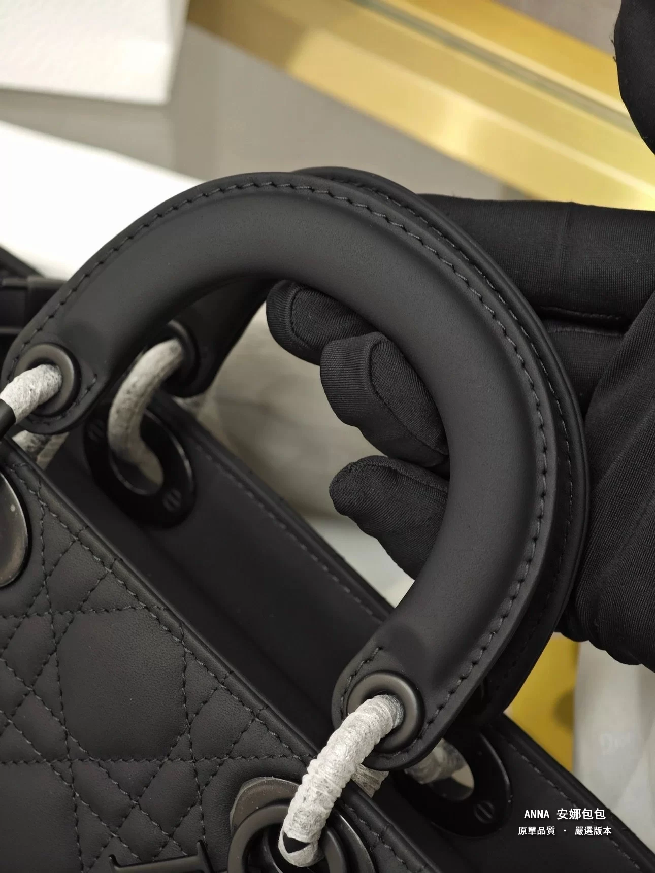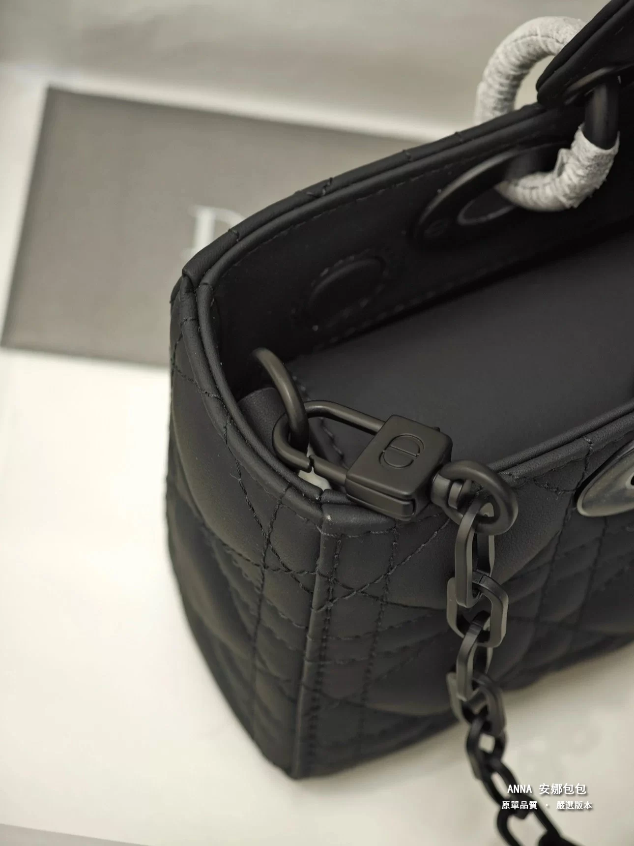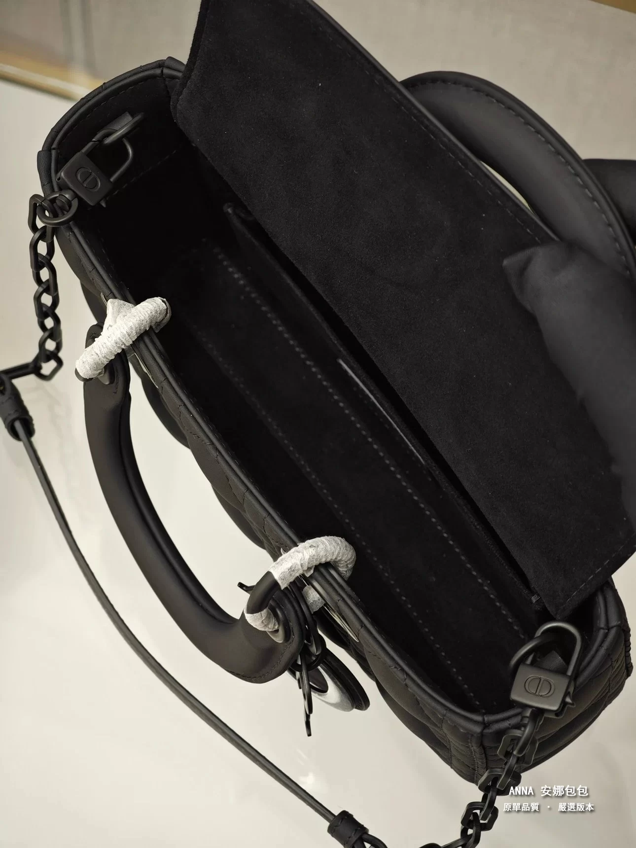 - 材質:黑色啞光牛皮革(藤格紋 Cannage 絎縫);內裡:羊皮革 / 牛皮革