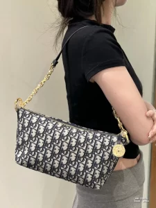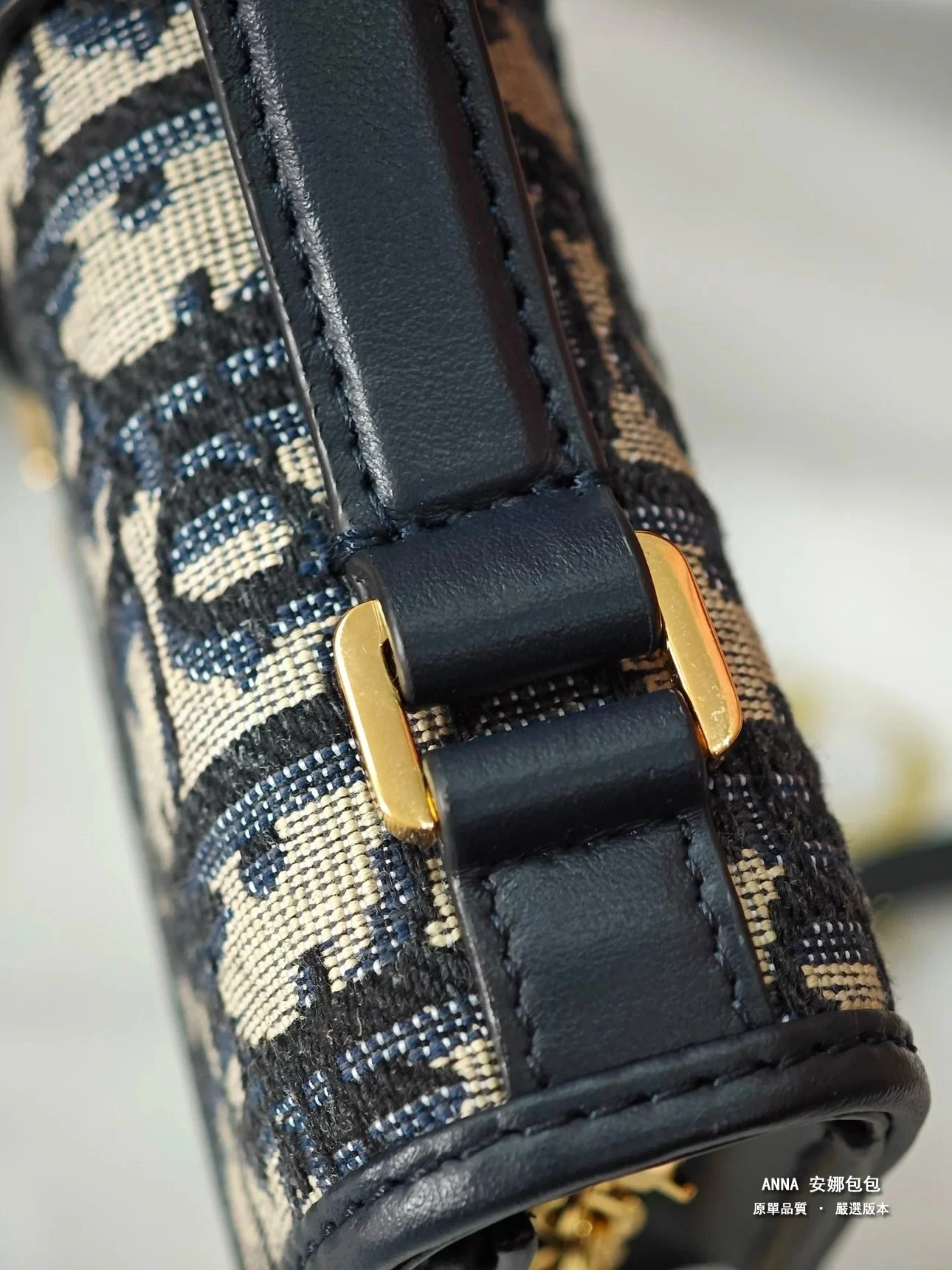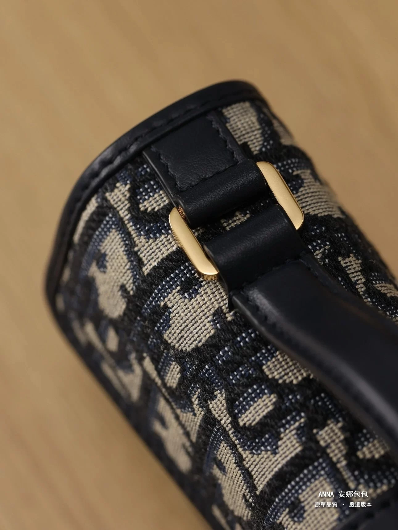 採用藍色Oblique 印花面料精心製作,翻蓋飾以復古金色飾面金屬CD釦環,靈感源自Christian Dior 香水瓶的封口,可收納各種日常用品。