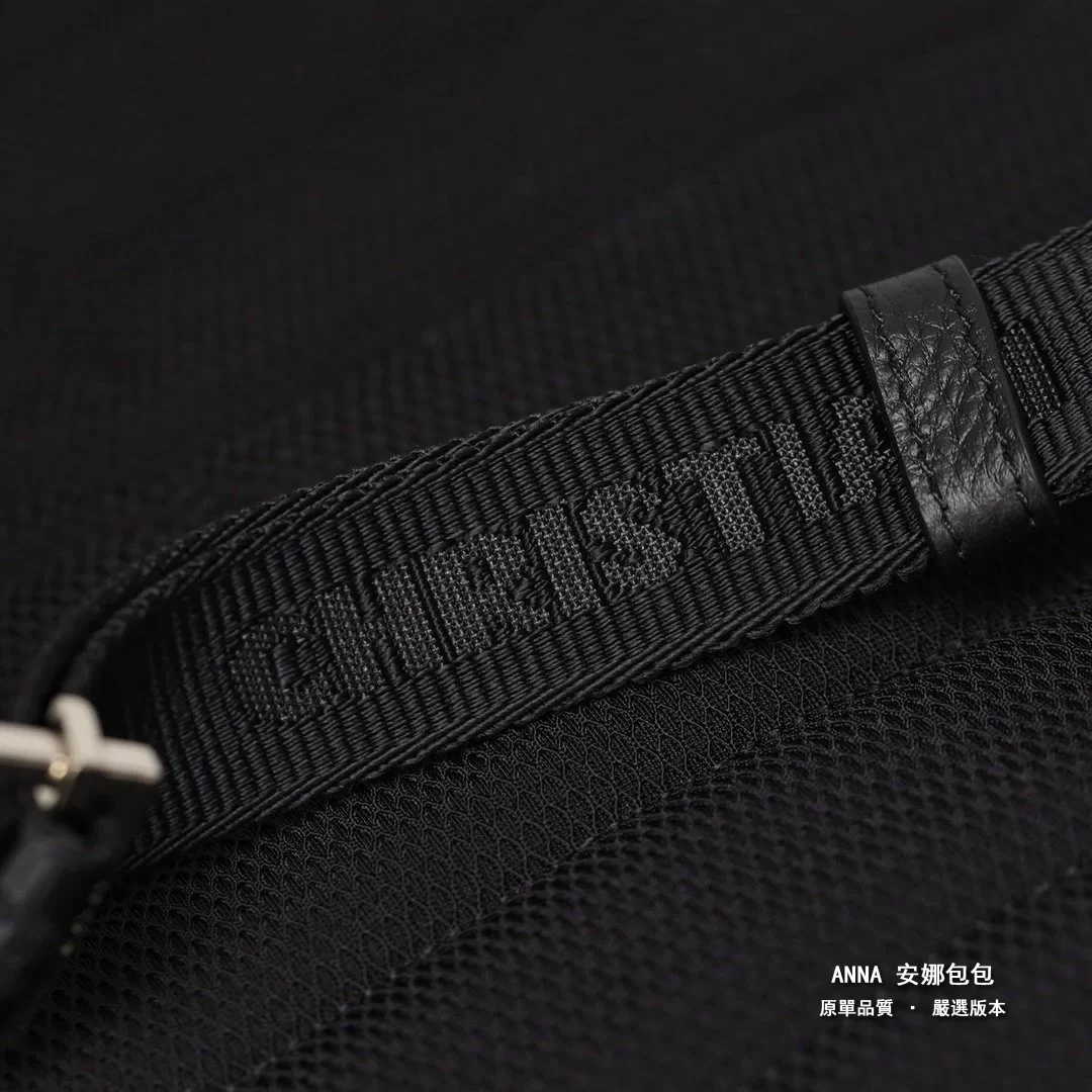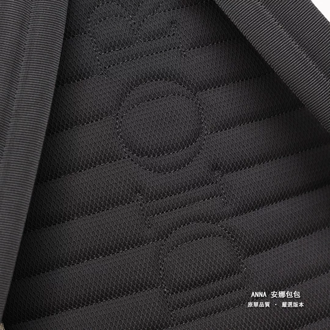 黑色尼龍可調節加墊肩帶,搭配黑色牛皮革細節