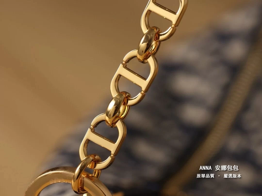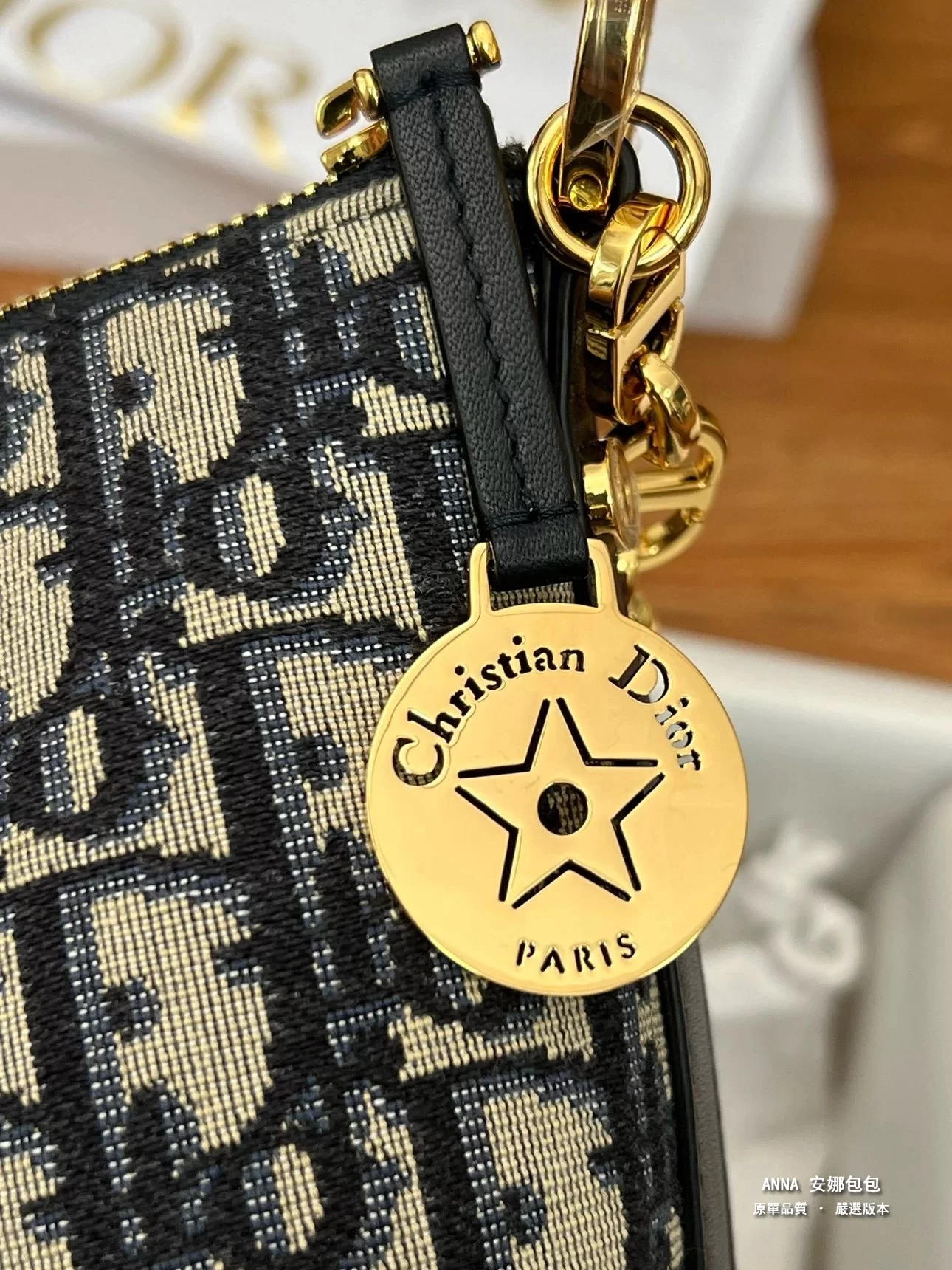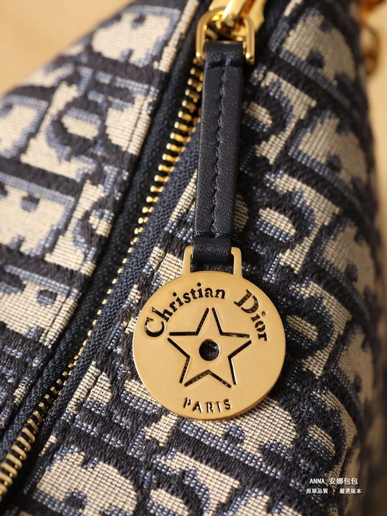 - 五金:金色飾面金屬鏈環;刻字圓形飾牌(Christian Dior Paris)+星星元素;側邊 CD 鉚釘