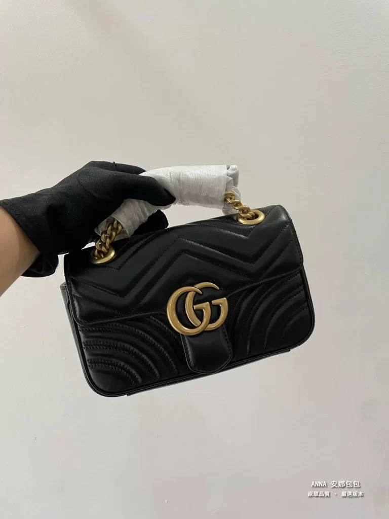 古馳 Gucci 馬蒙特 Marmont 迷你鏈條斜挎包 GG 金扣 菱格全皮 原單頂級版本 22cm