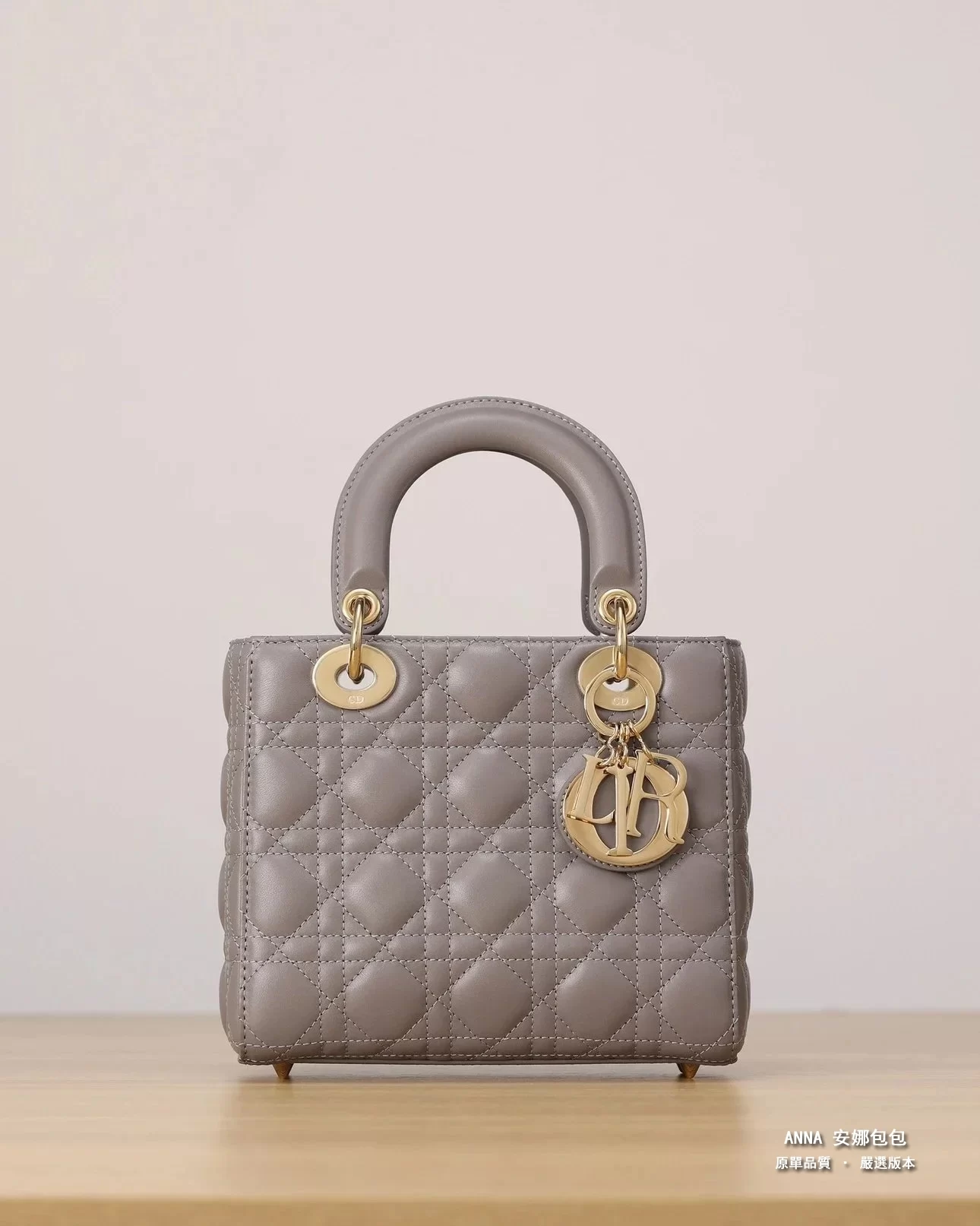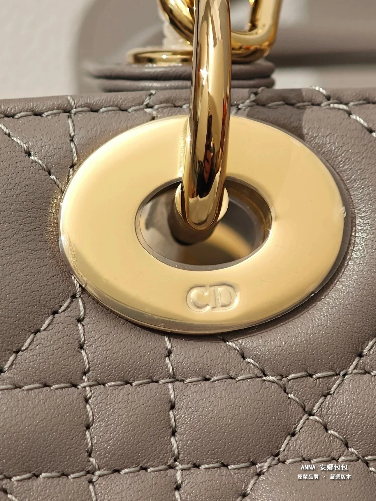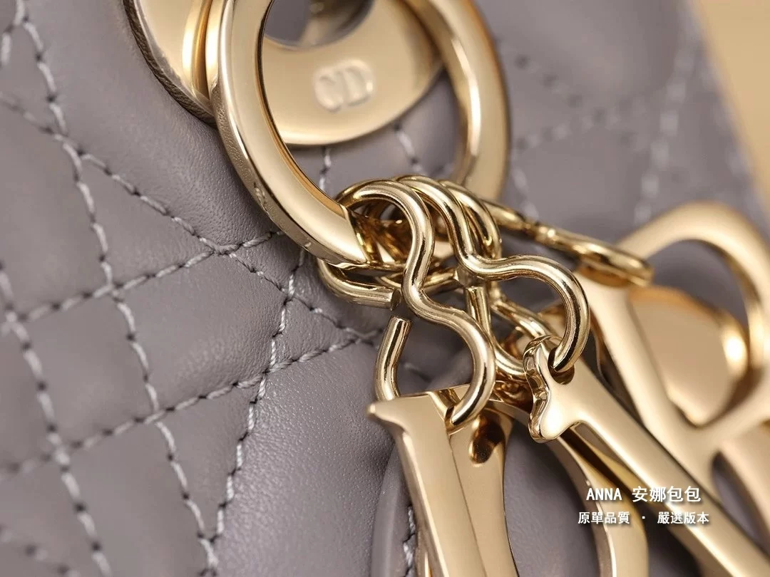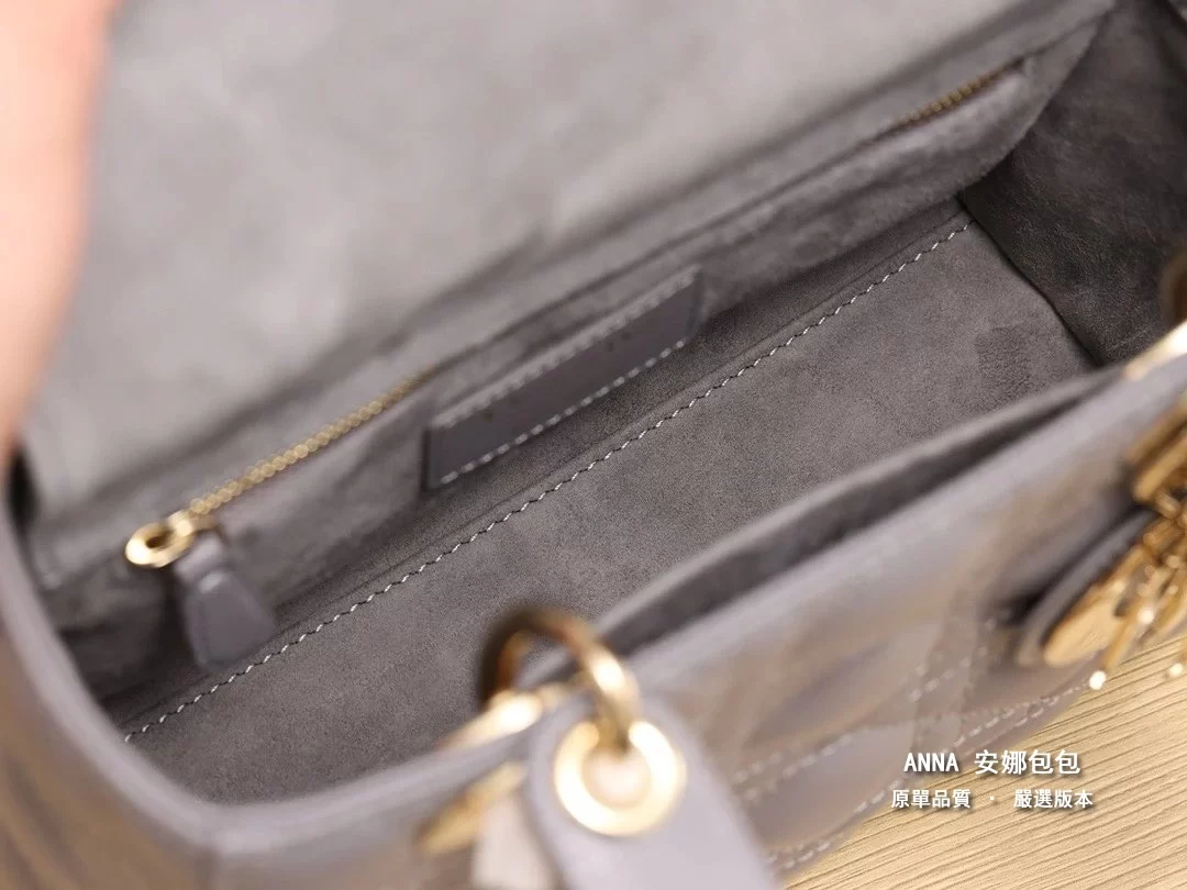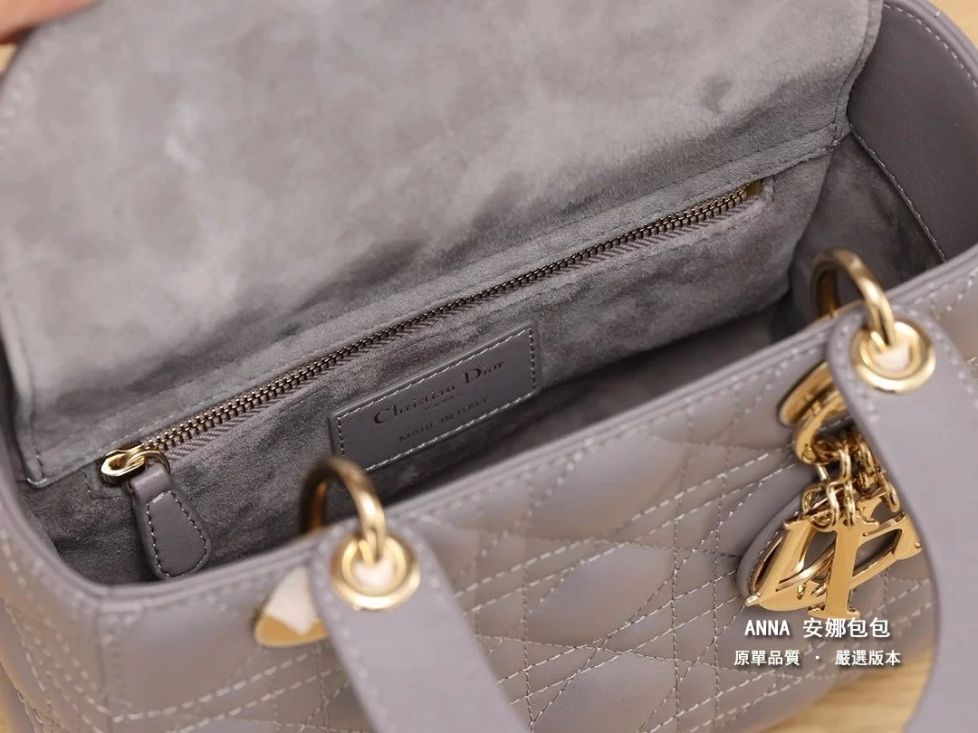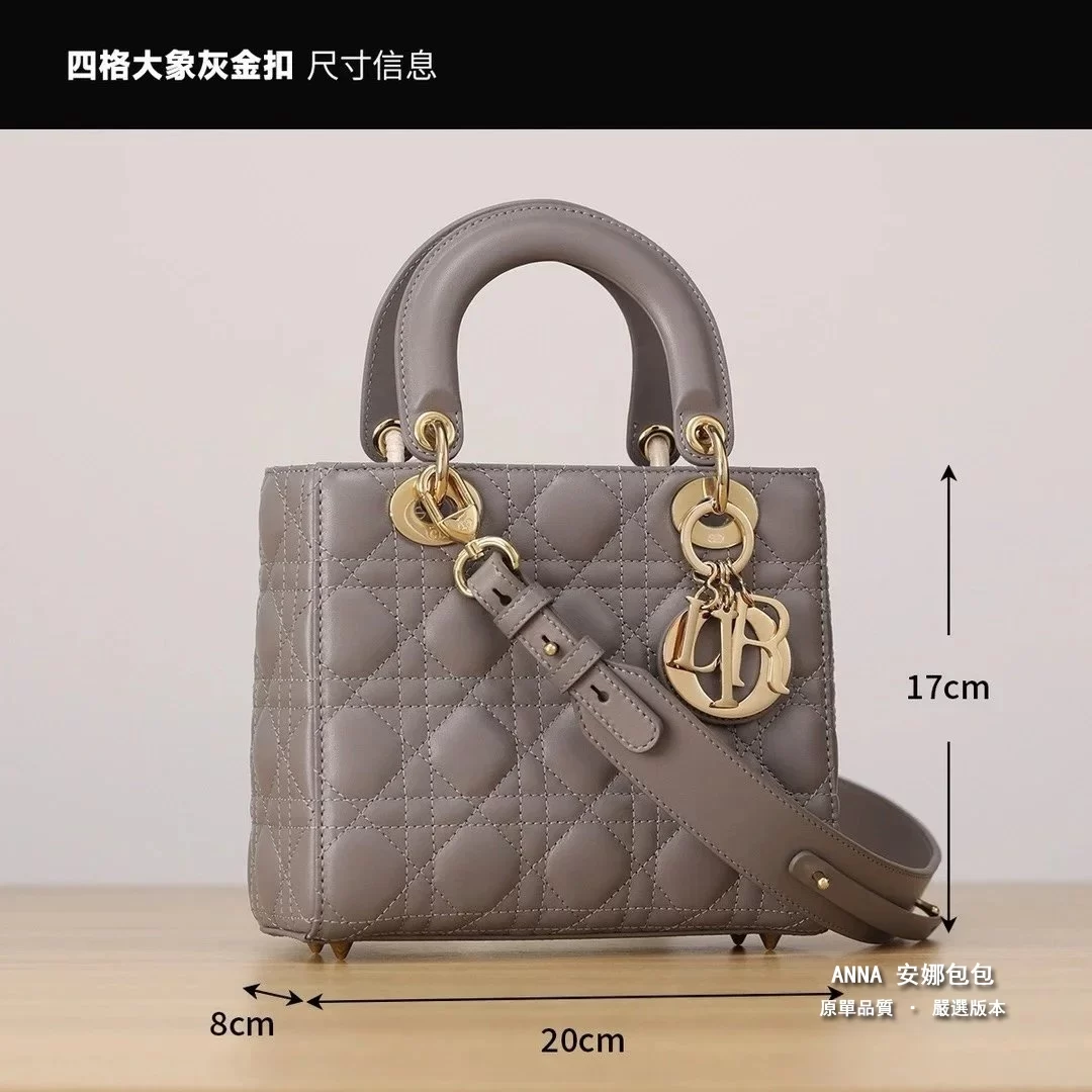 獨家渠道貨 四格戴妃包大象灰羊皮金扣