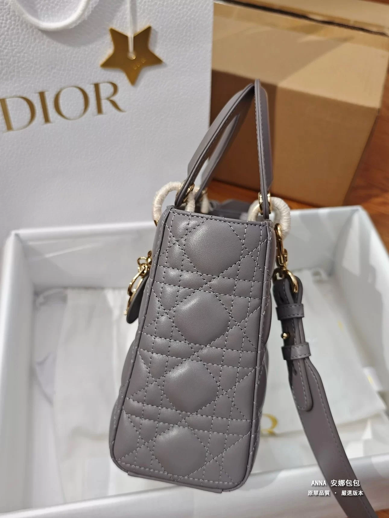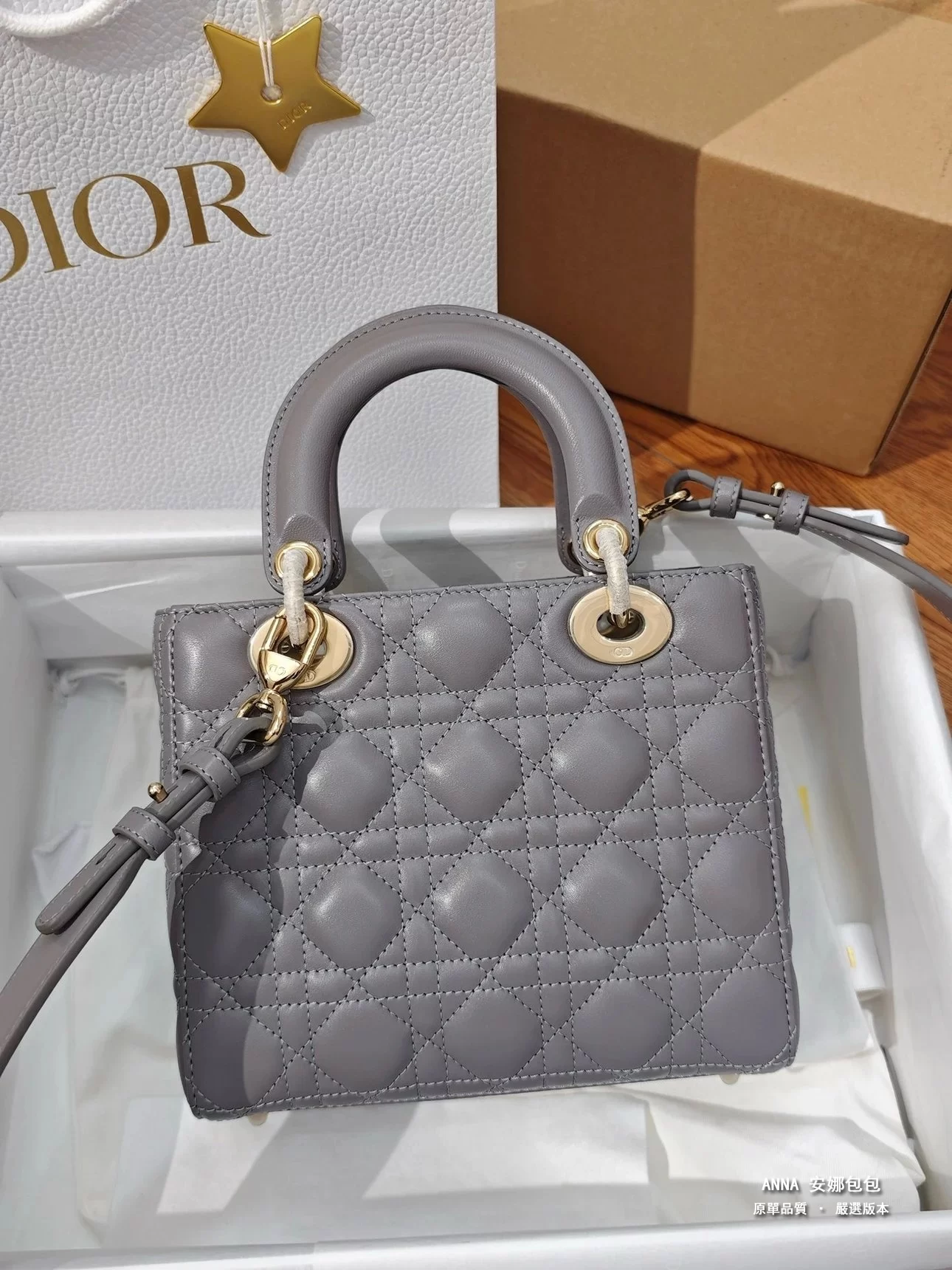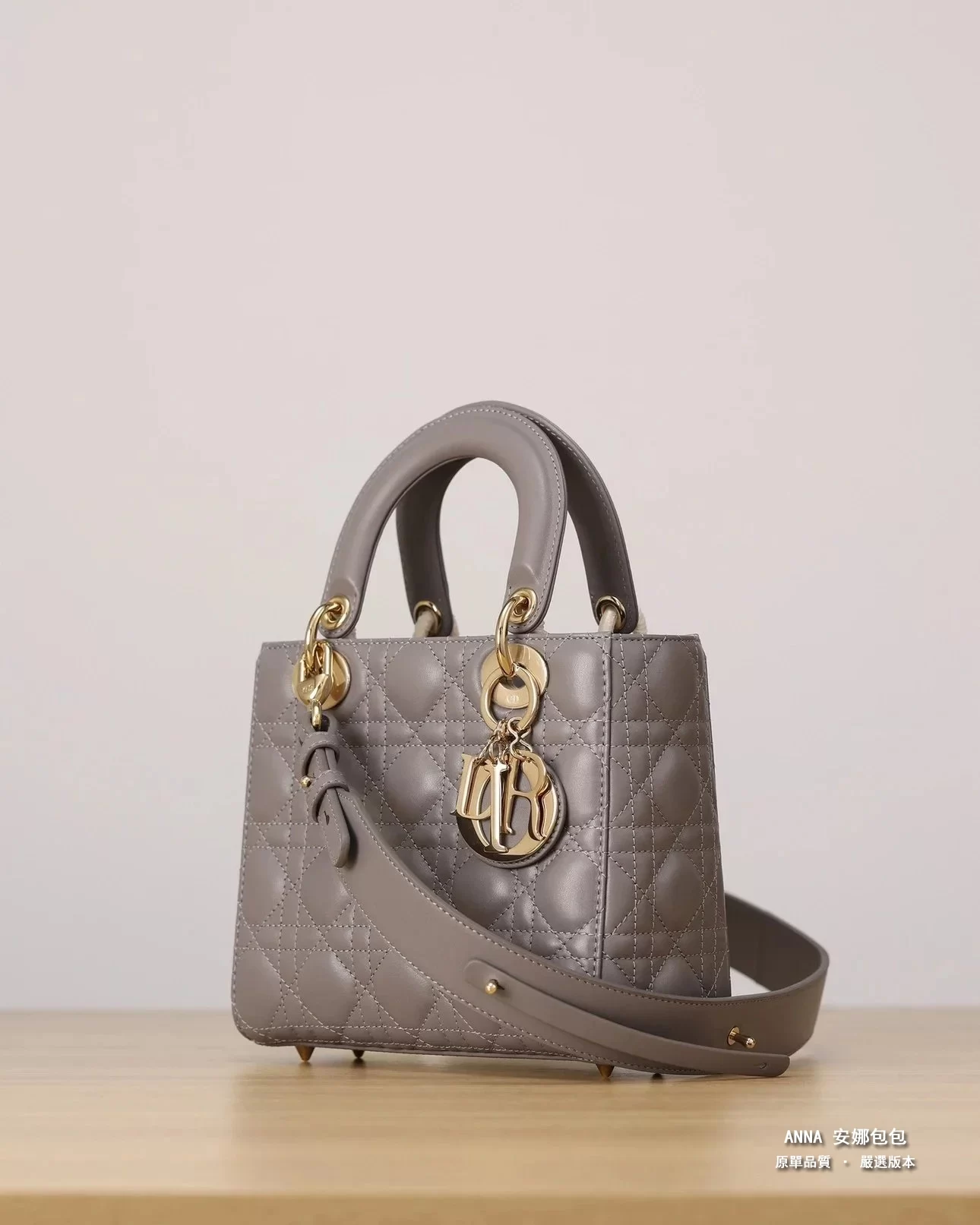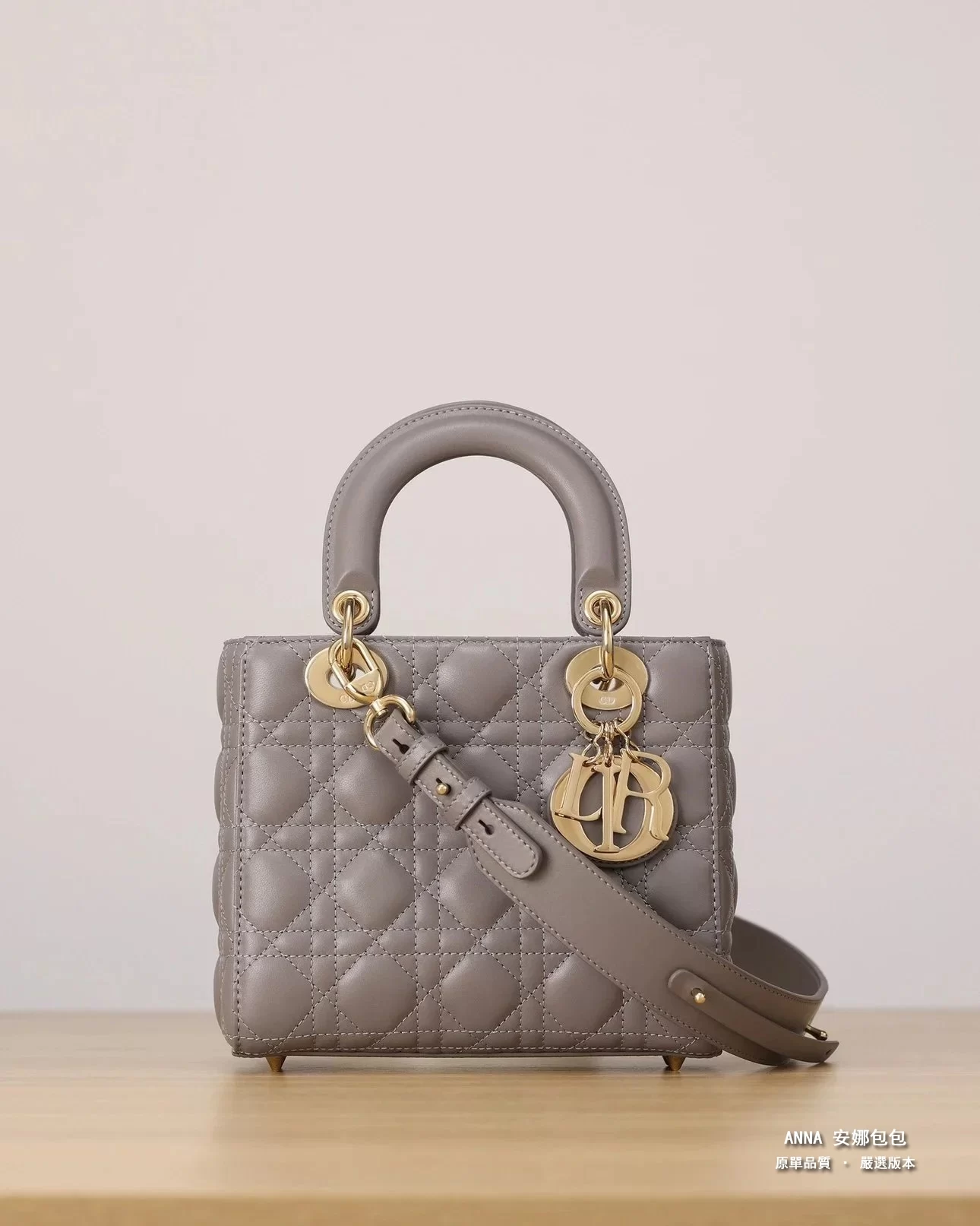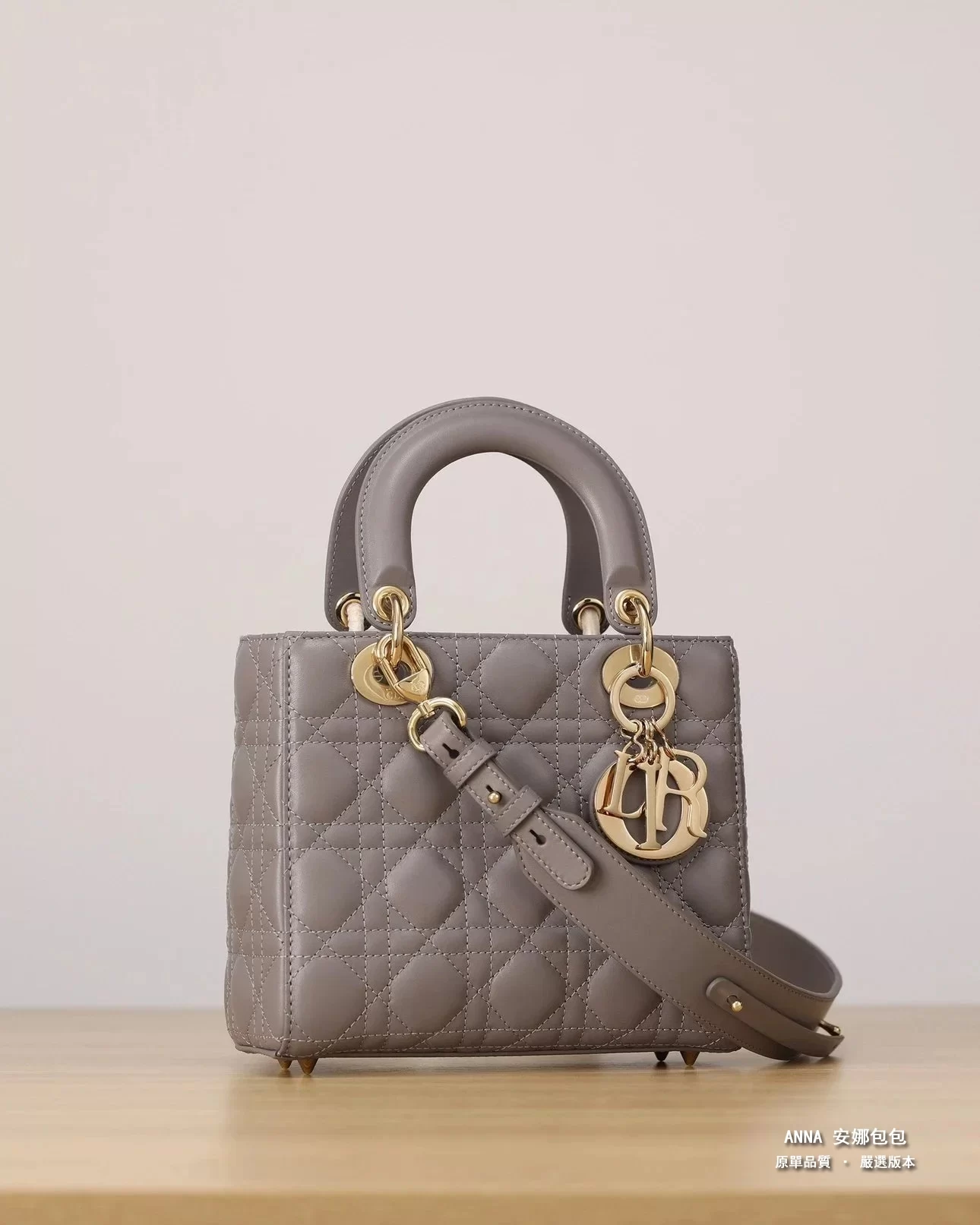 獨家渠道貨 四格戴妃包大象灰羊皮金扣