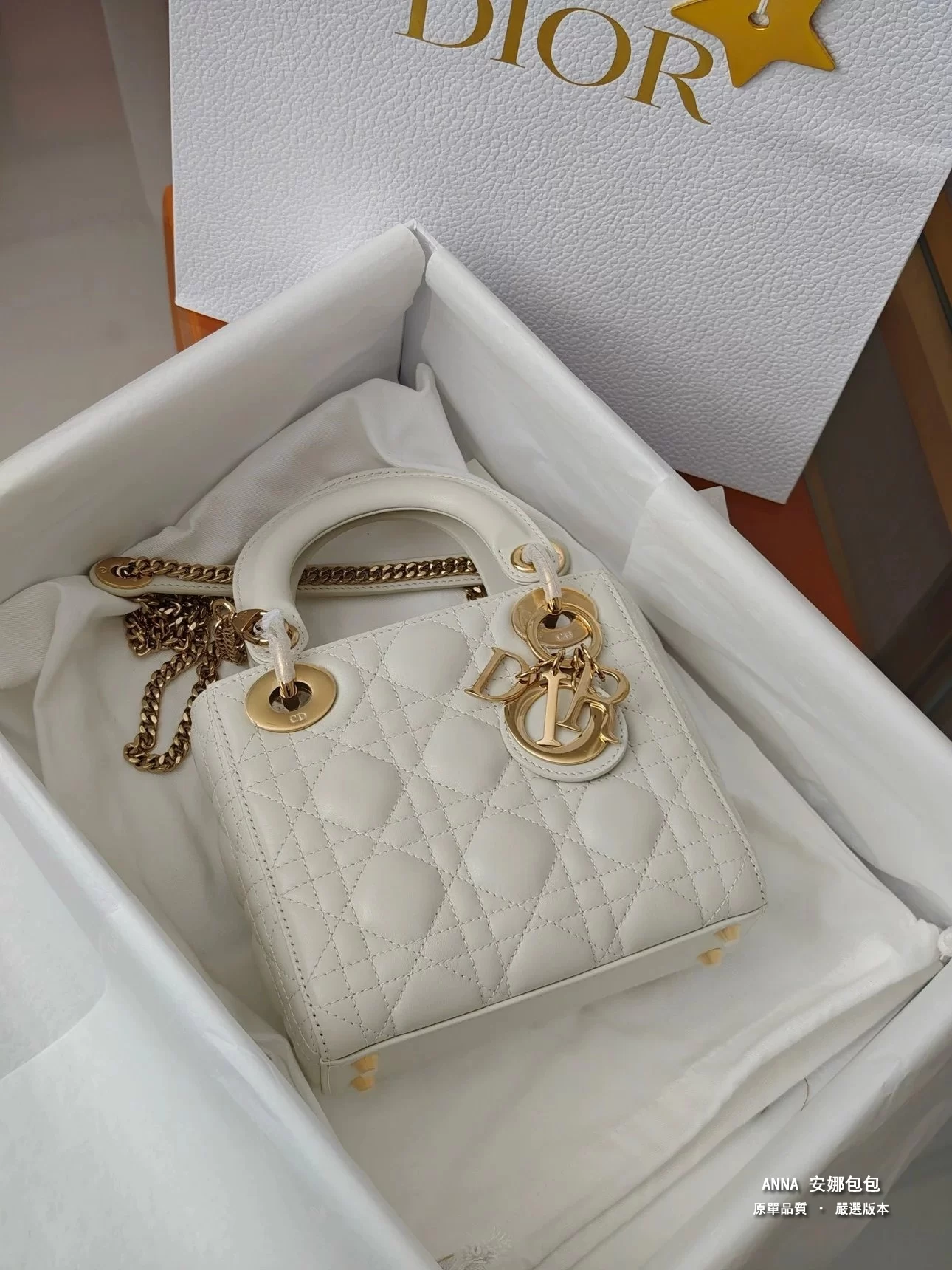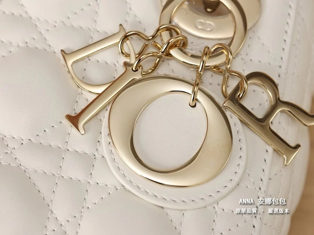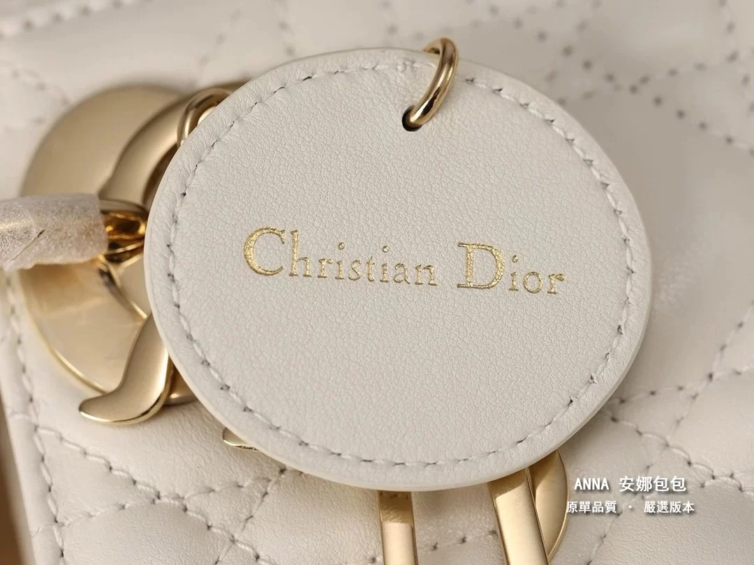 迪奧 Lady Dior 迷你三格 奶白羊皮 藤格紋 原單頂級版