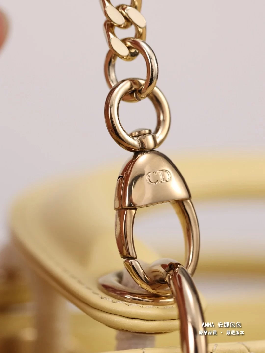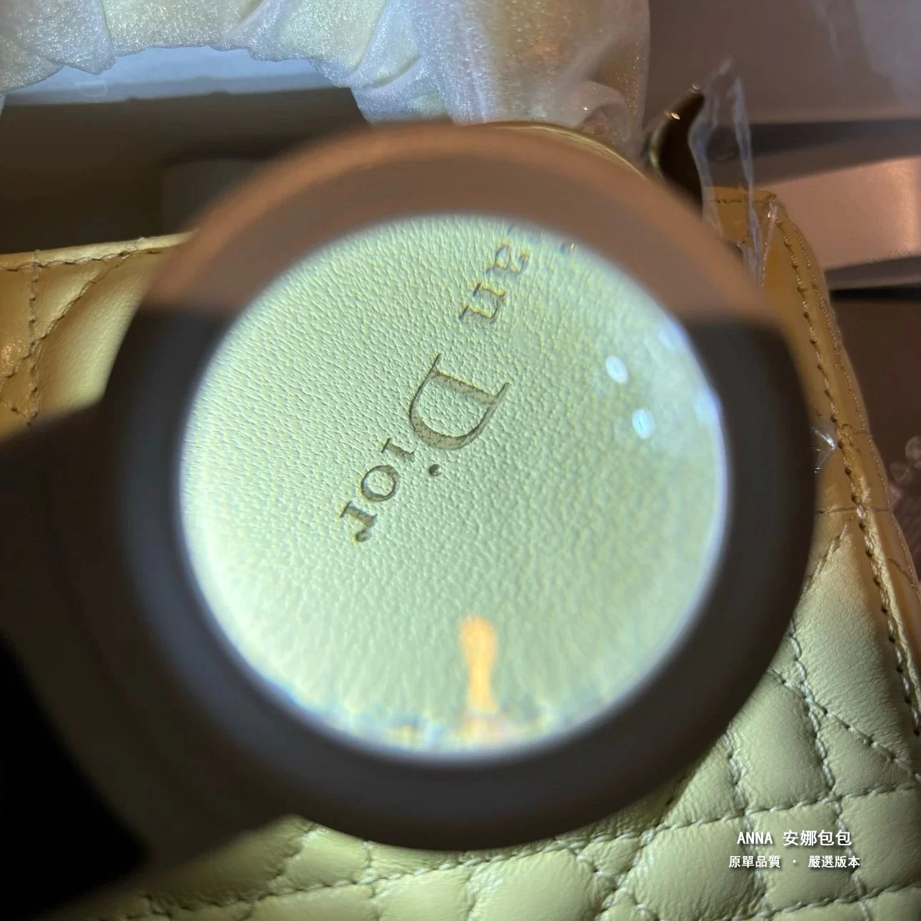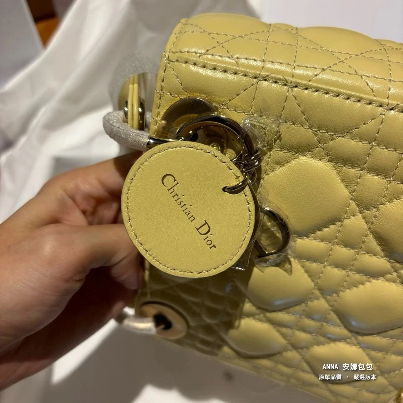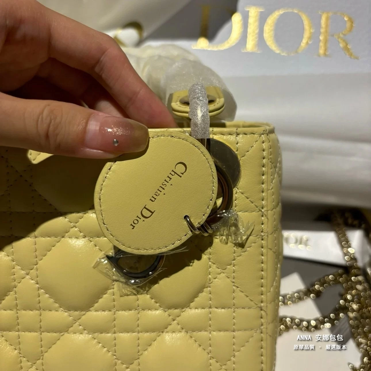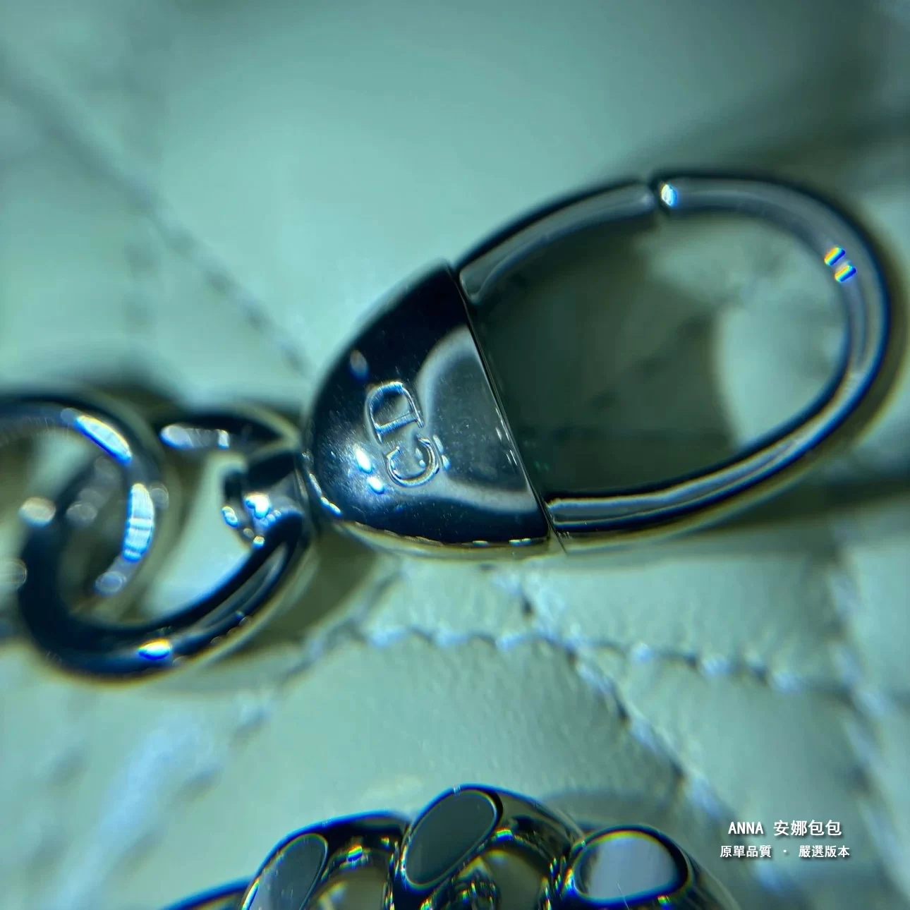 - 五金:淺金色金屬五金(D.I.O.R. 吊飾)