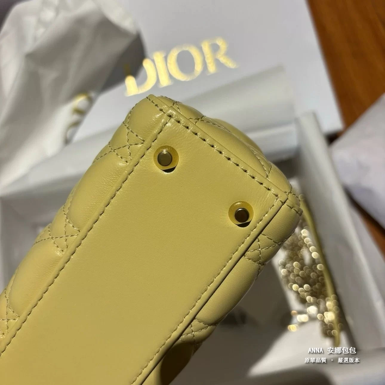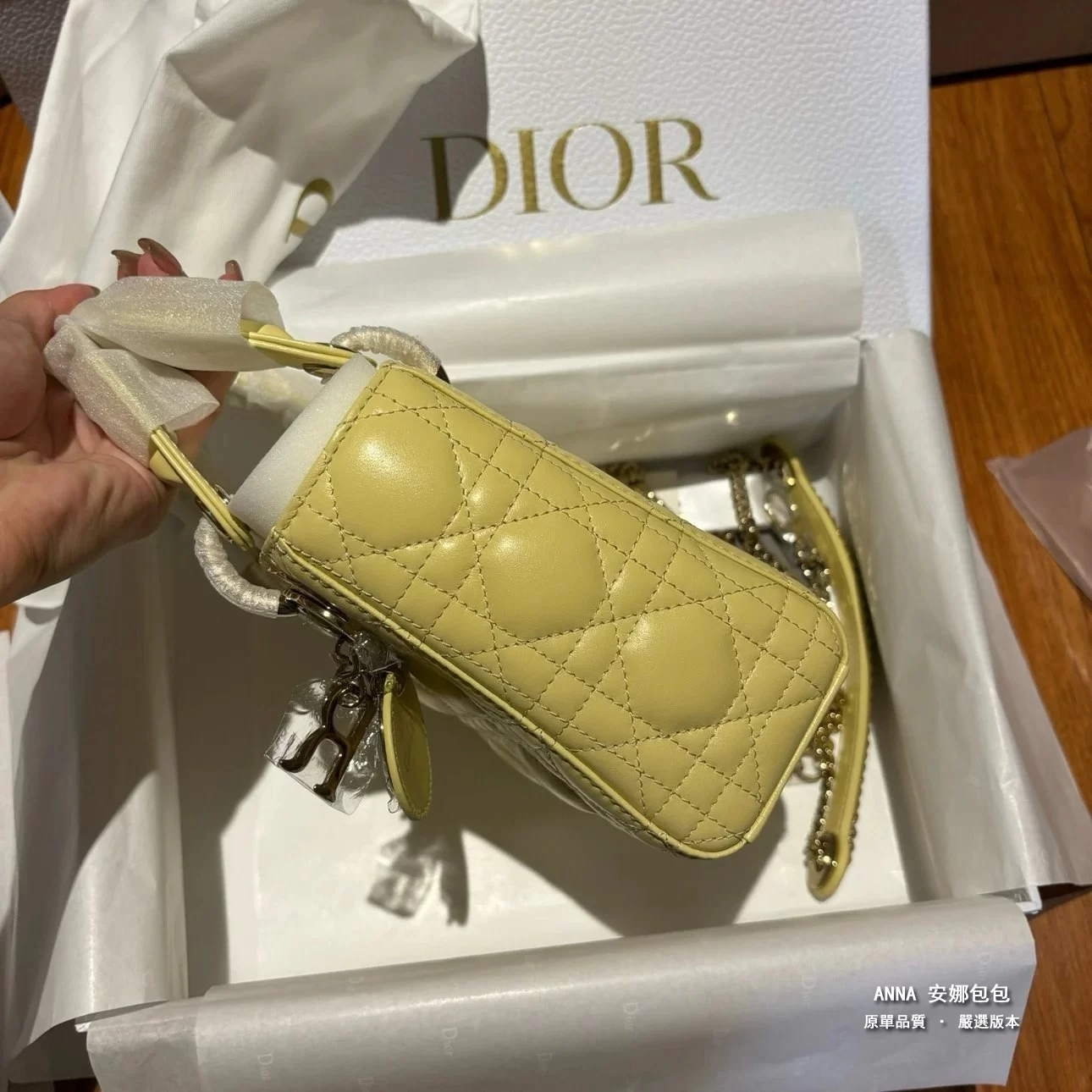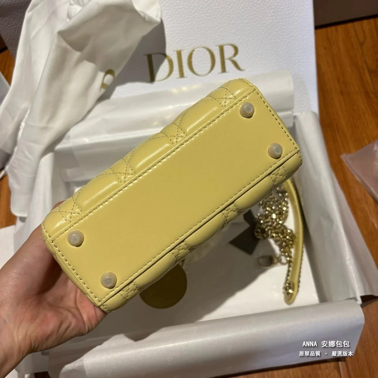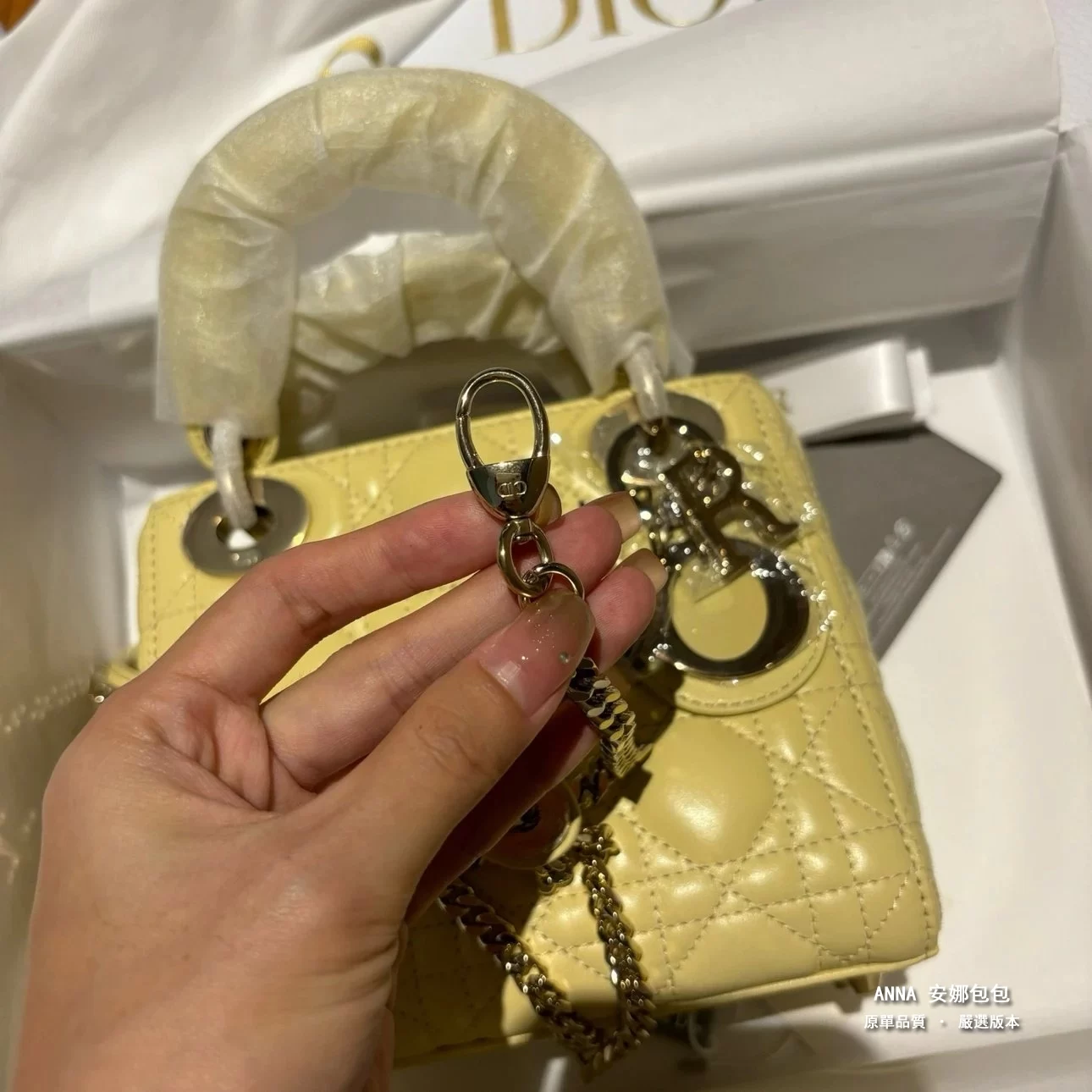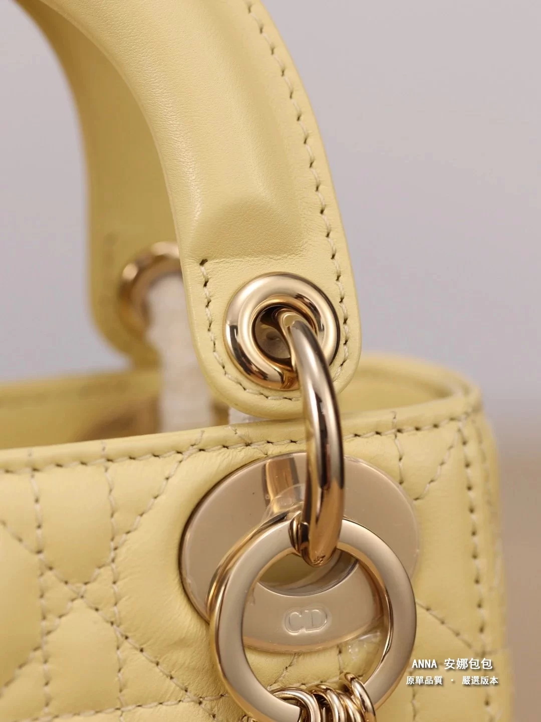 - 五金:淺金色金屬五金(D.I.O.R. 吊飾)