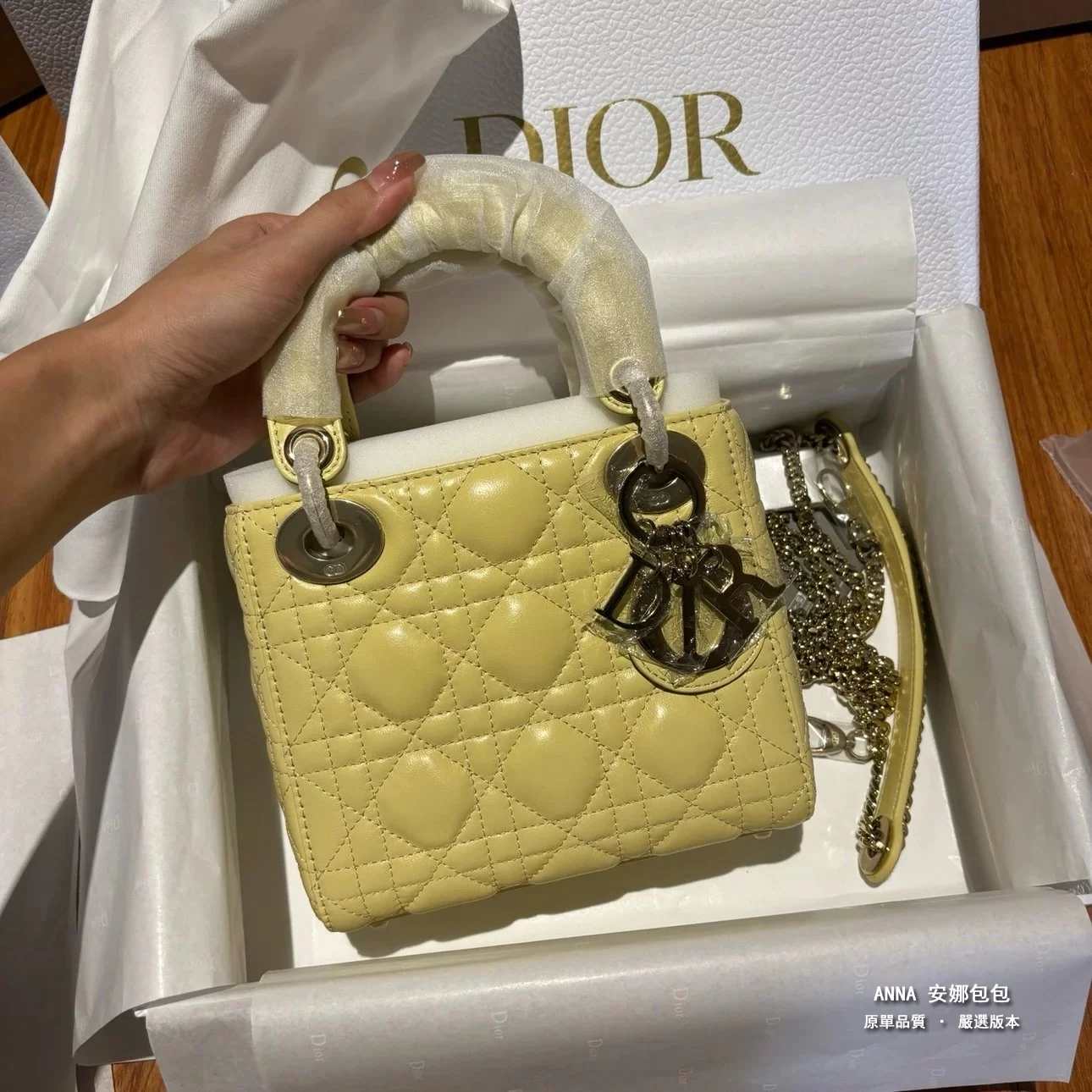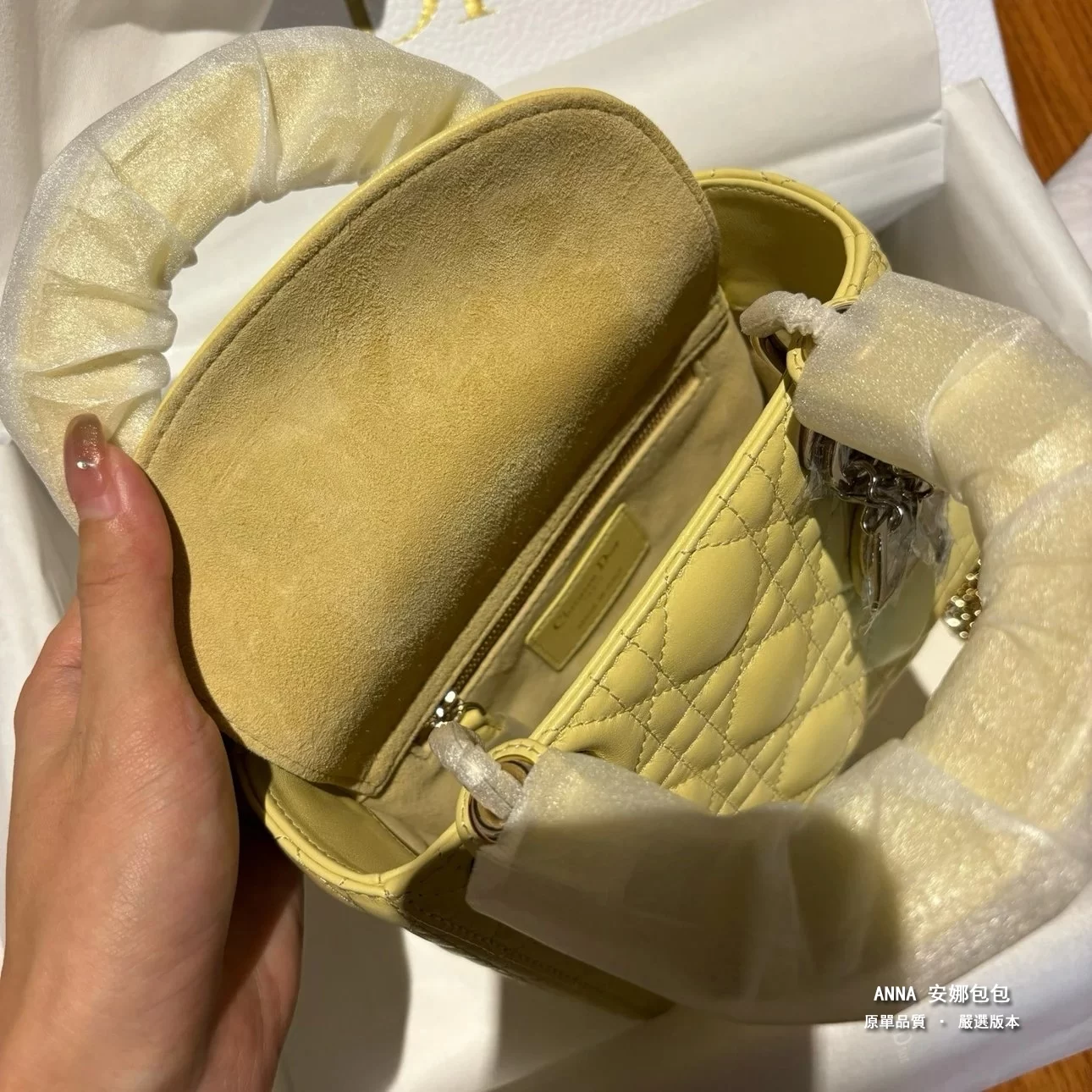 進口羊皮+進口設備繡花+進口純鋼五金+原廠進口膠水+原版開發+芯片跳碼+升級羊絨裏=獨家天花板王炸戴妃包