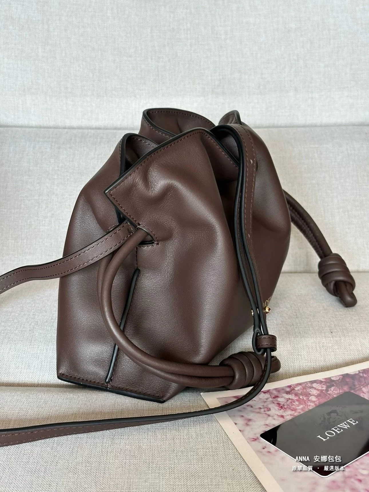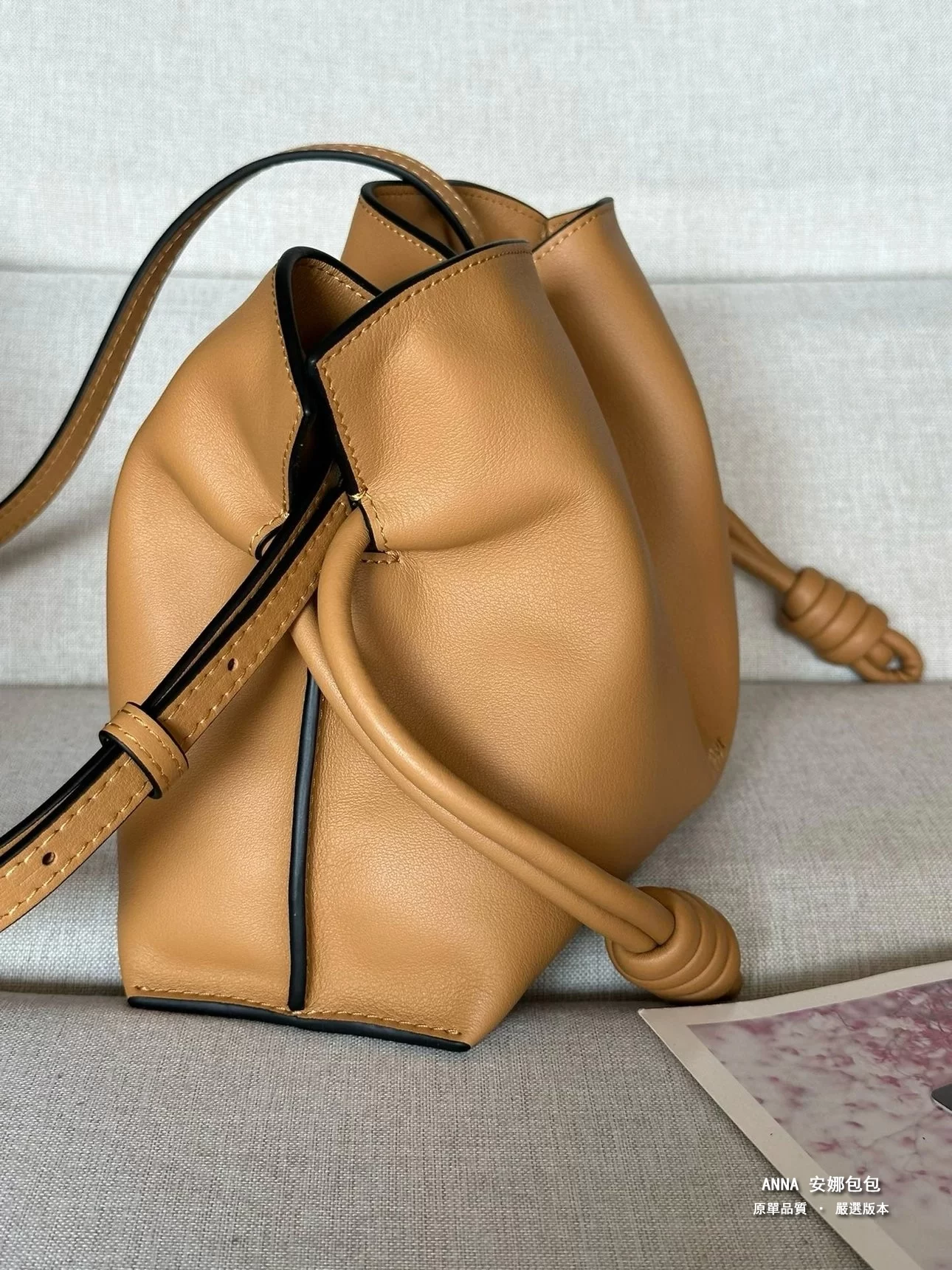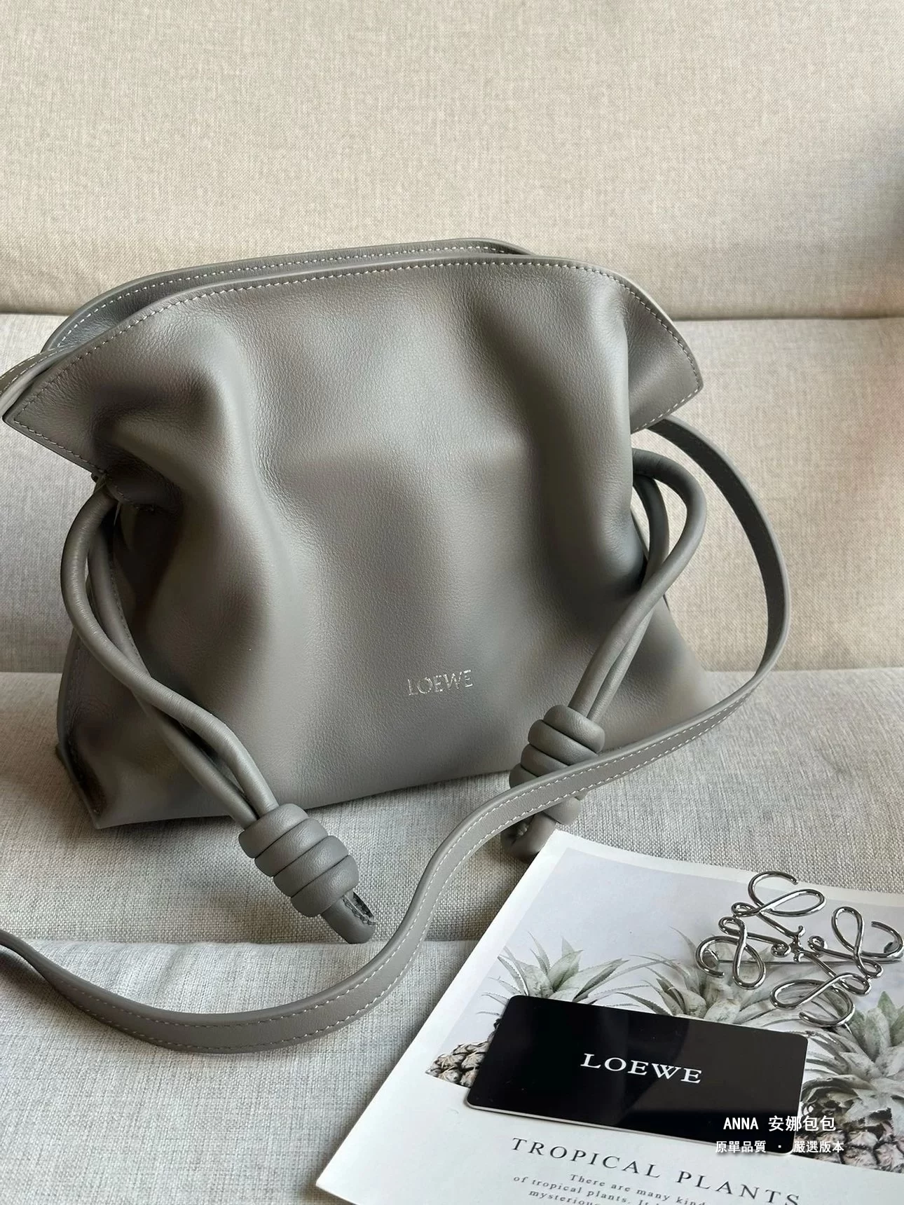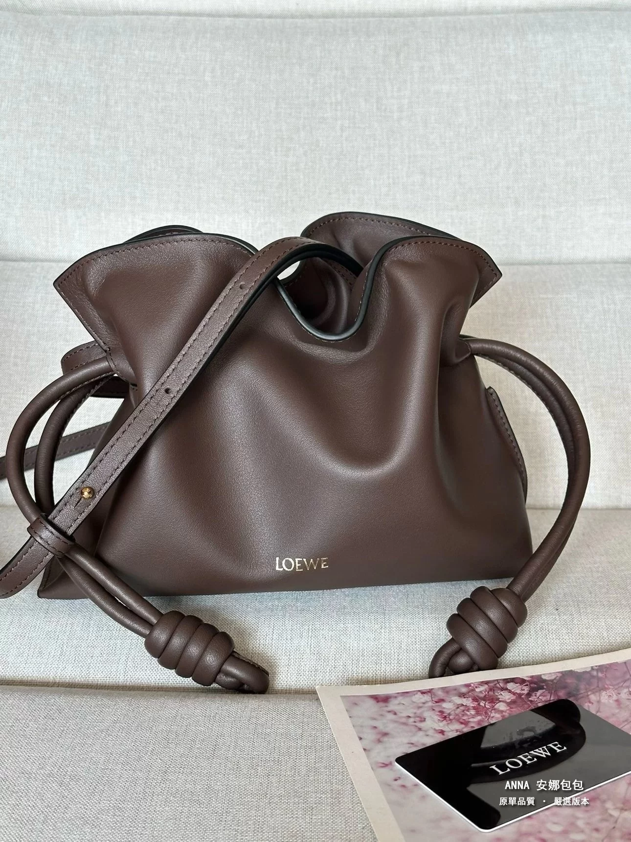 十九世紀七十年代發佈的 Flamenco 手拿包,採用拉繩收緊,並打上標誌性的盤繞結。此迷你版本採用納帕牛皮革製成。