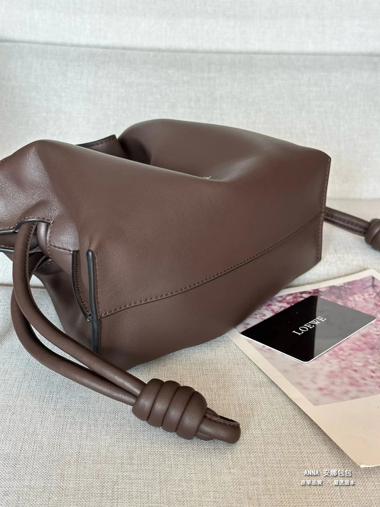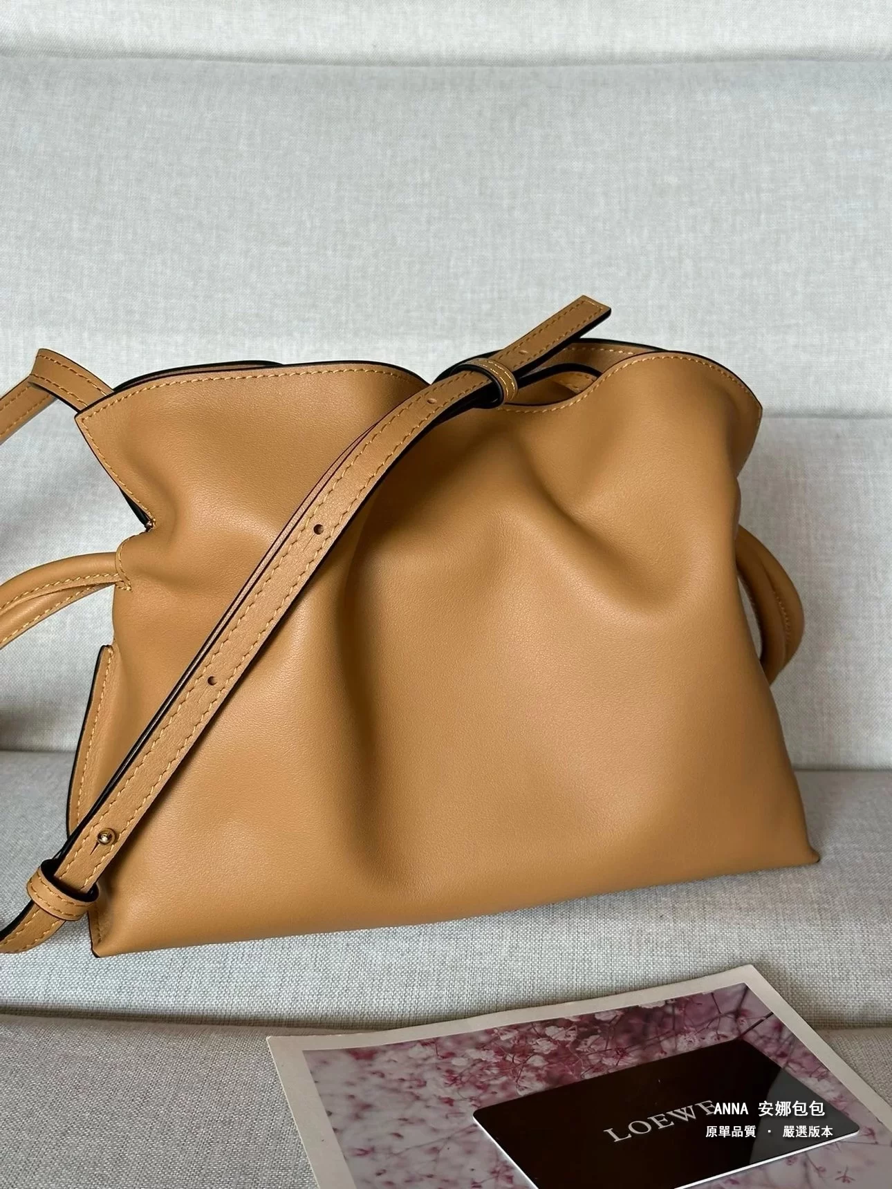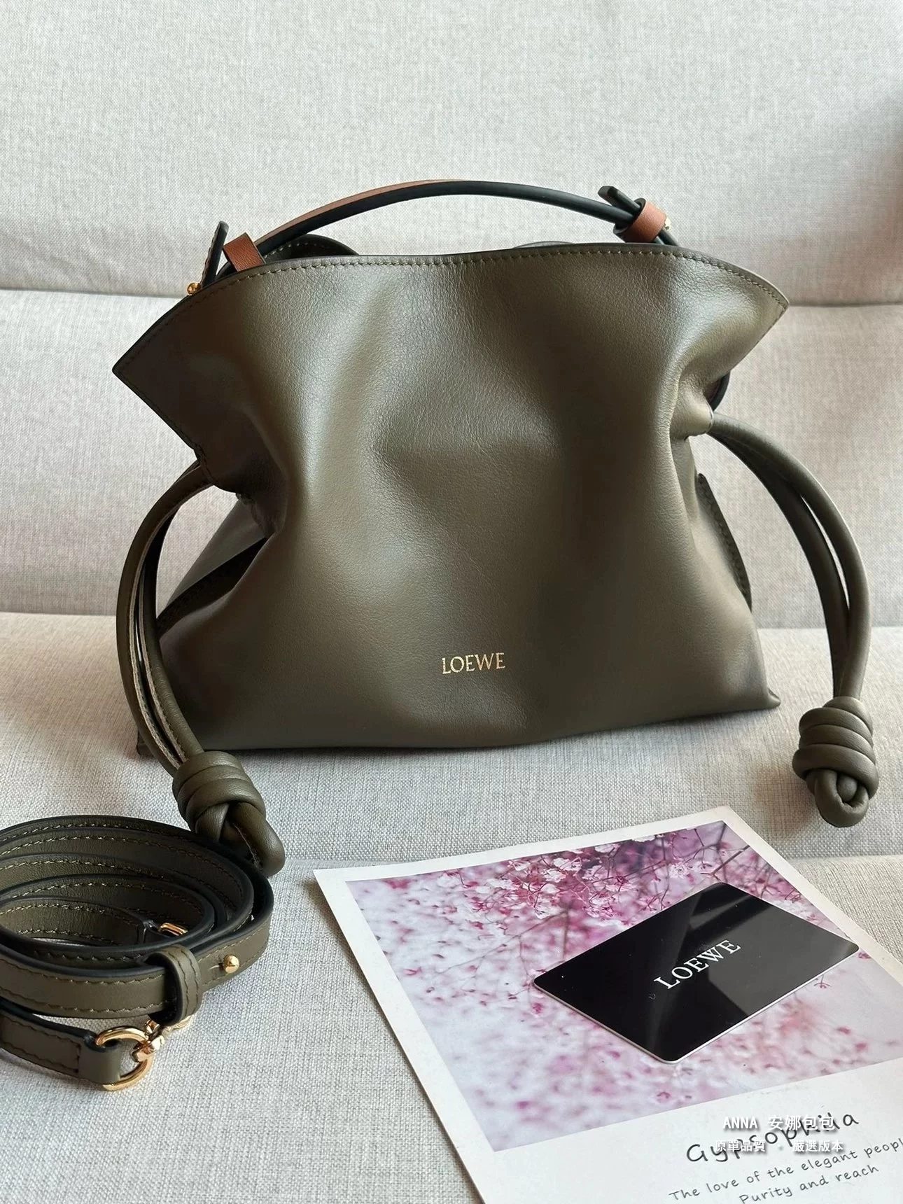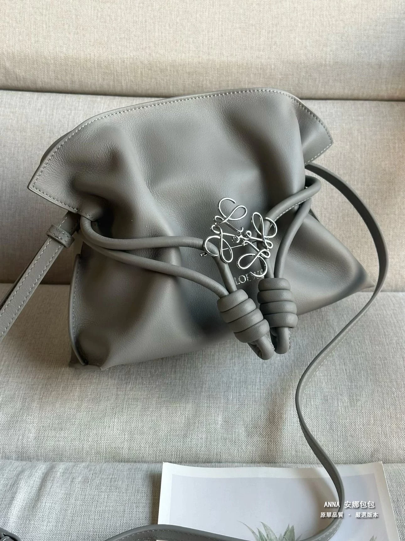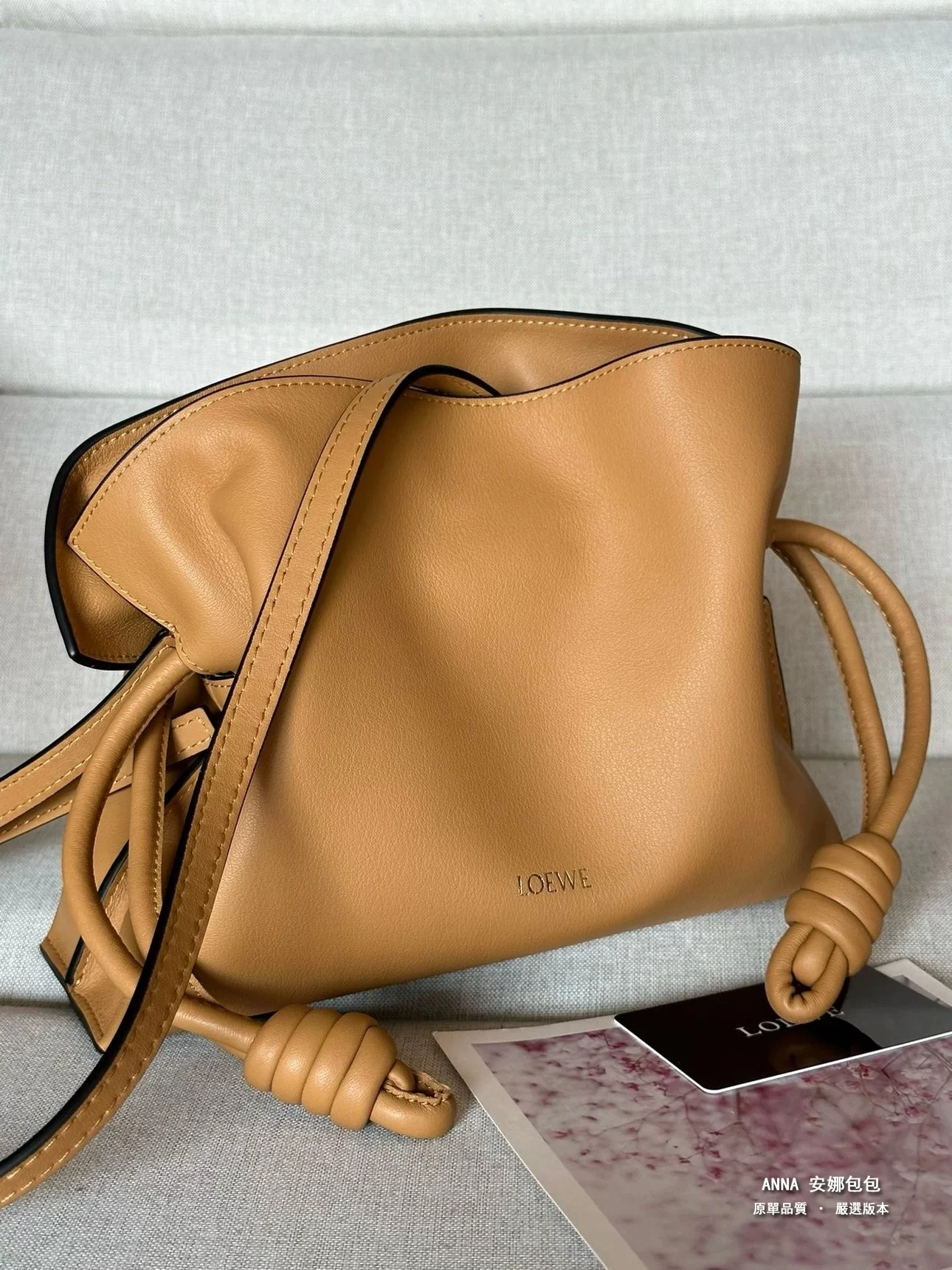 十九世紀七十年代發佈的 Flamenco 手拿包,採用拉繩收緊,並打上標誌性的盤繞結。此迷你版本採用納帕牛皮革製成。