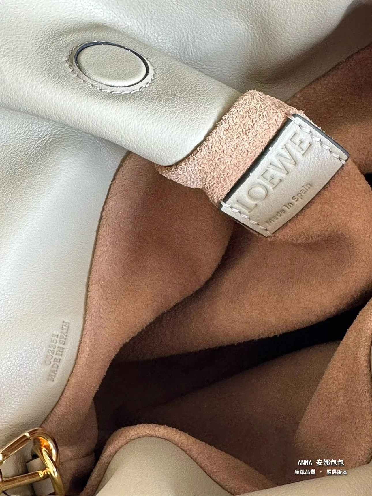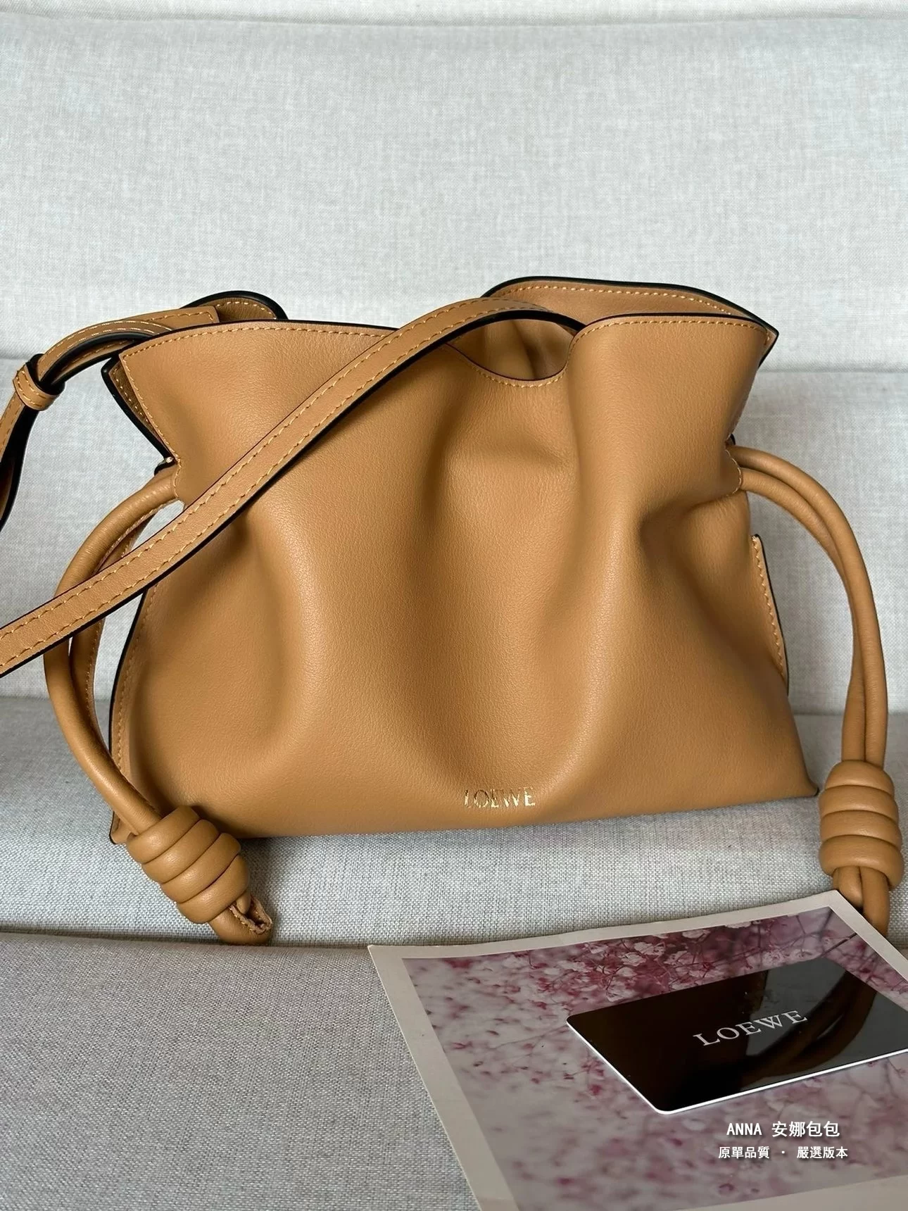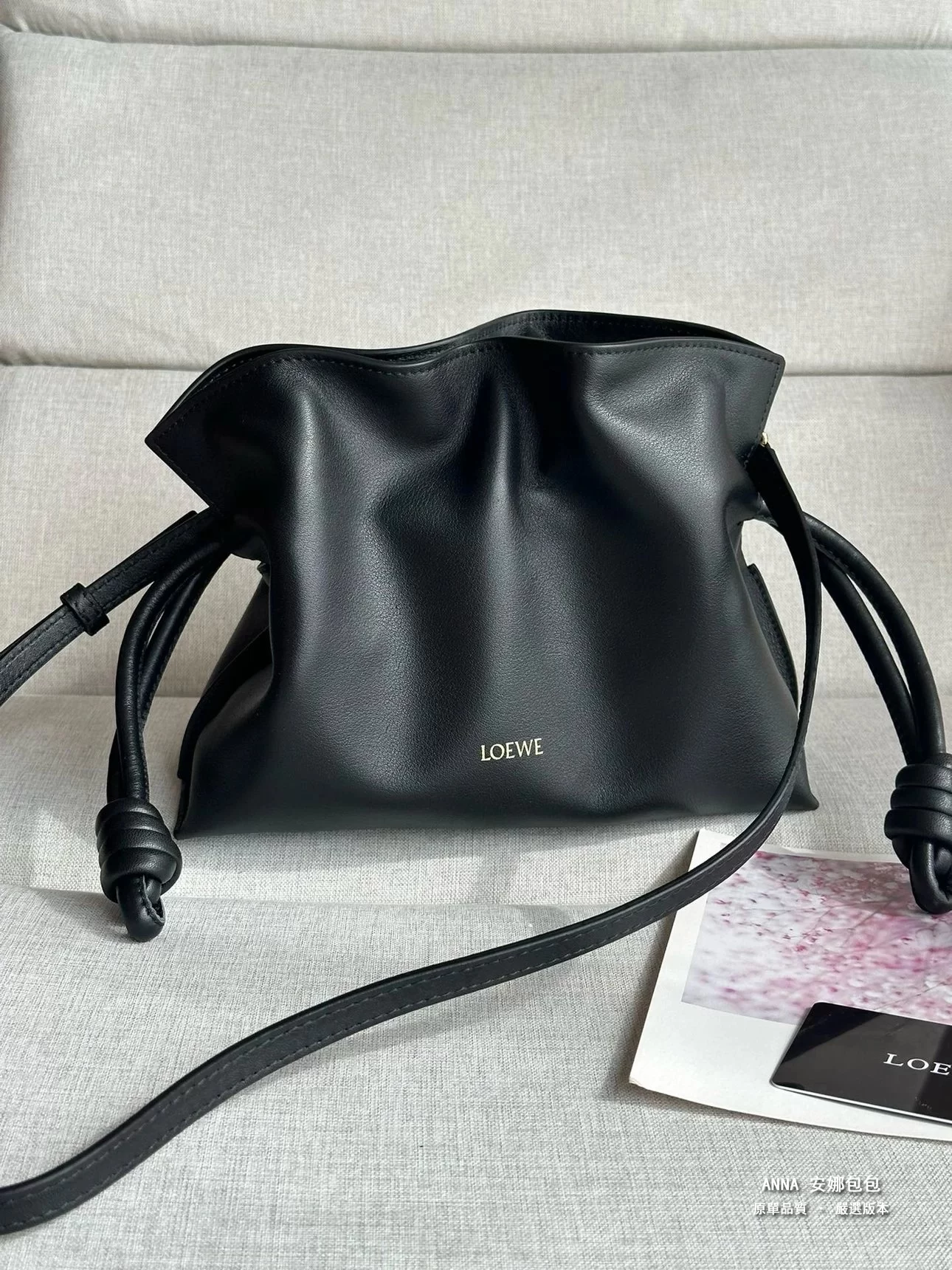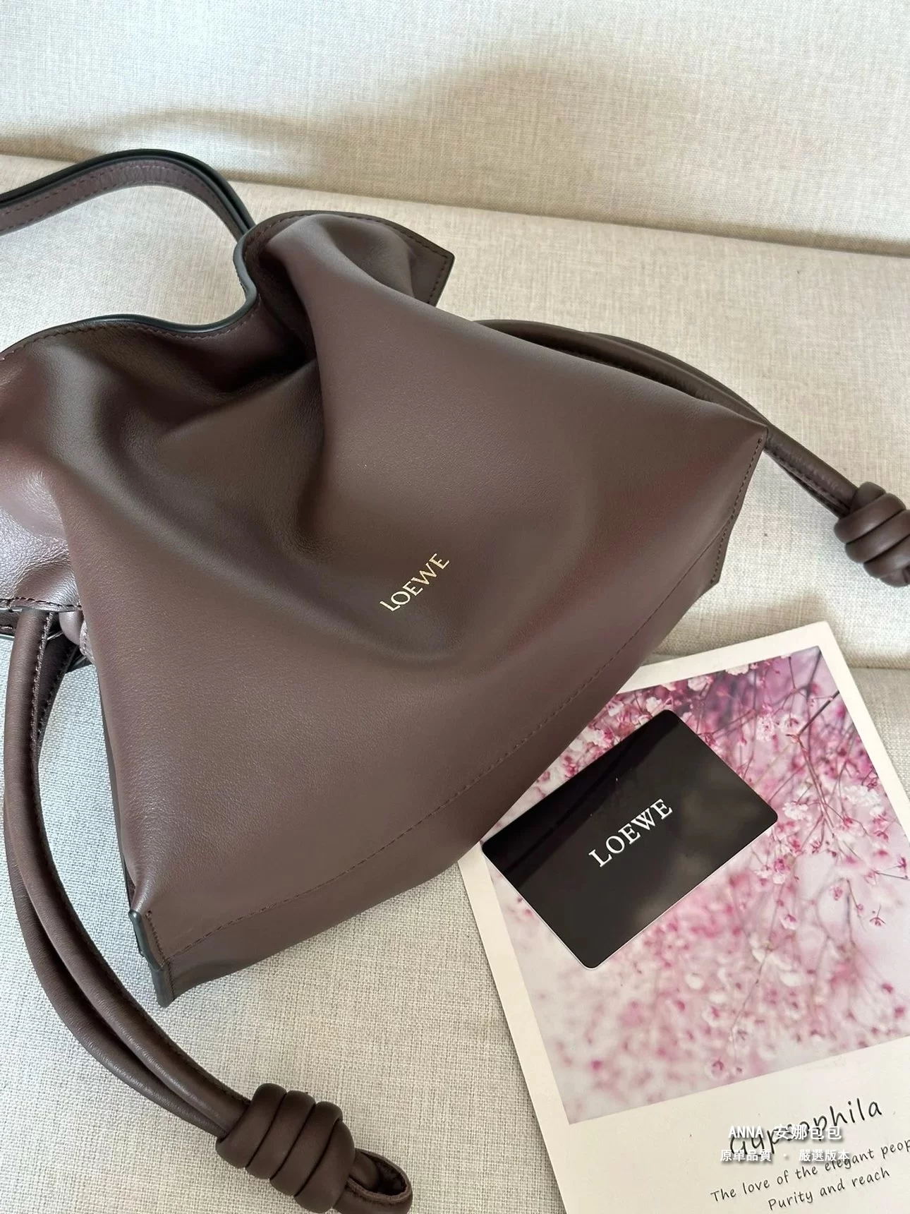 十九世紀七十年代發佈的 Flamenco 手拿包,採用拉繩收緊,並打上標誌性的盤繞結。此迷你版本採用納帕牛皮革製成。