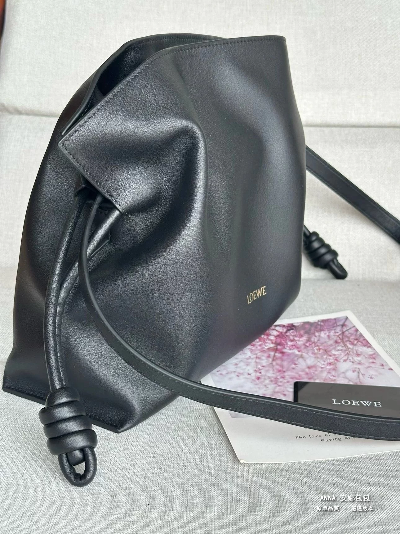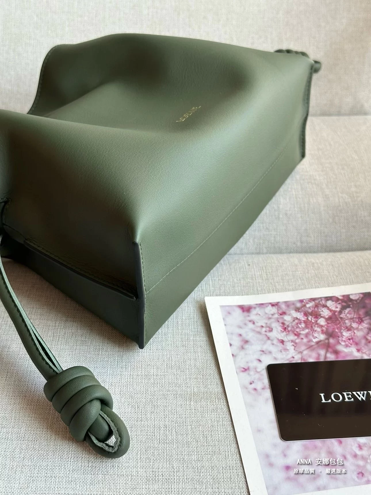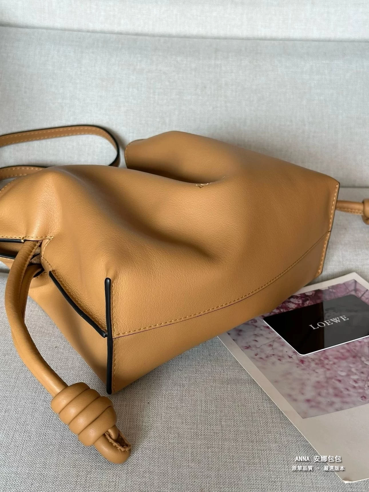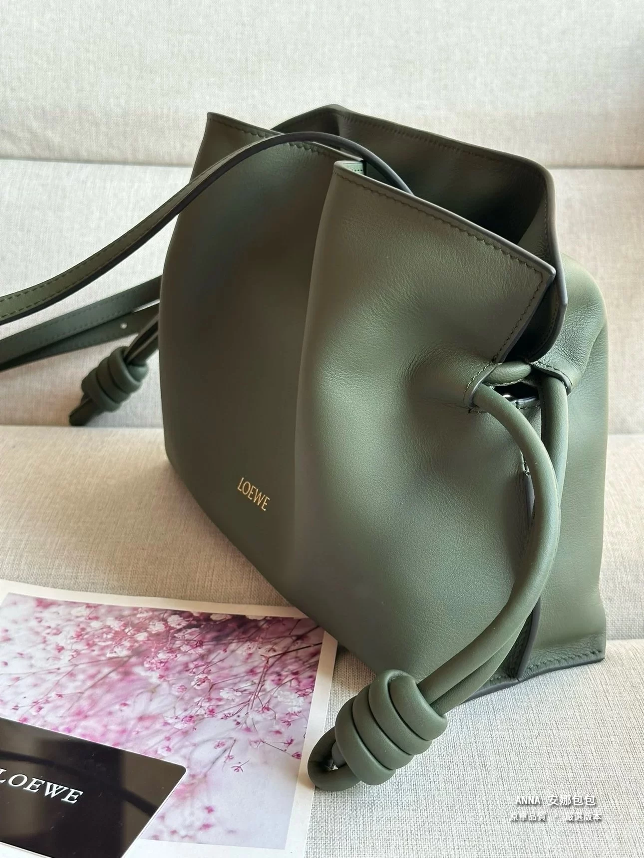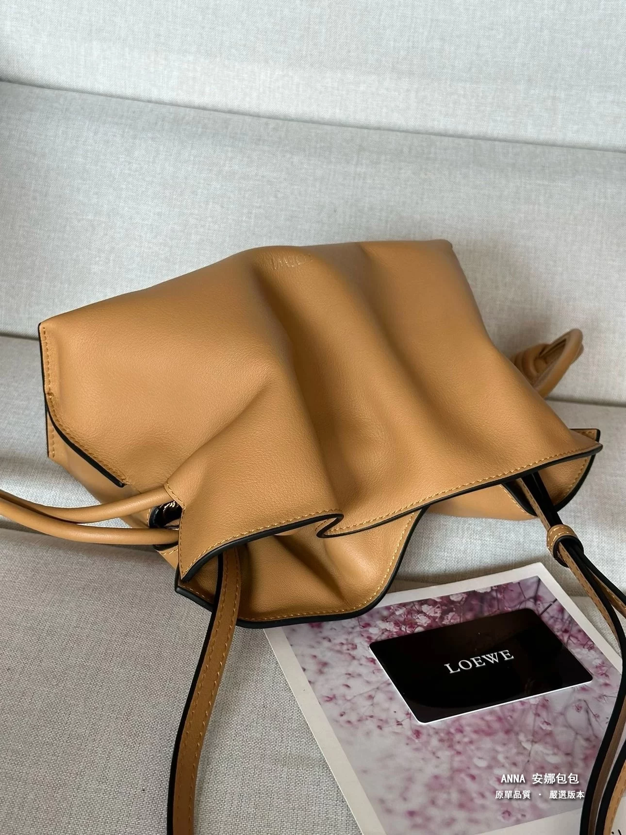 十九世紀七十年代發佈的 Flamenco 手拿包,採用拉繩收緊,並打上標誌性的盤繞結。此迷你版本採用納帕牛皮革製成。