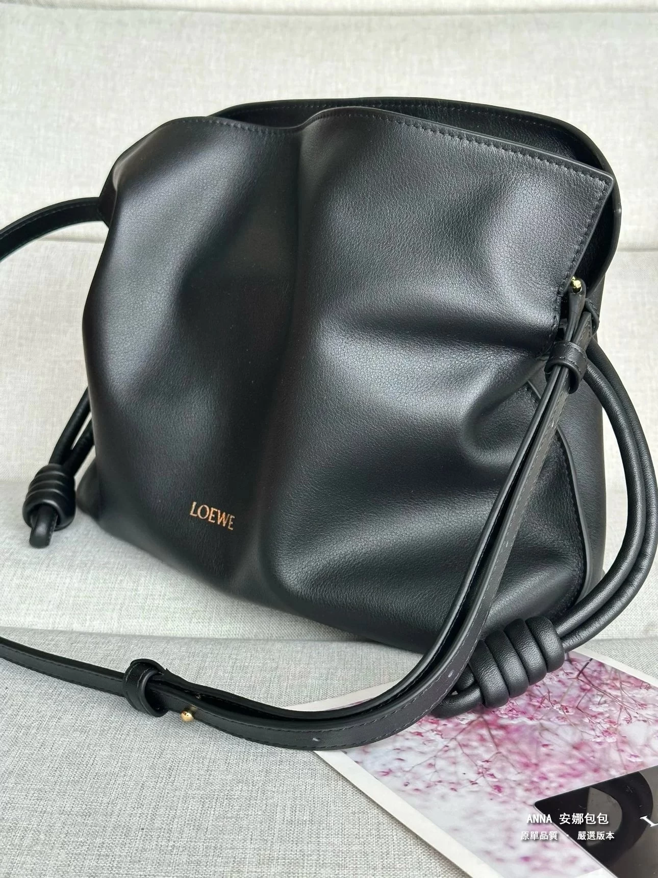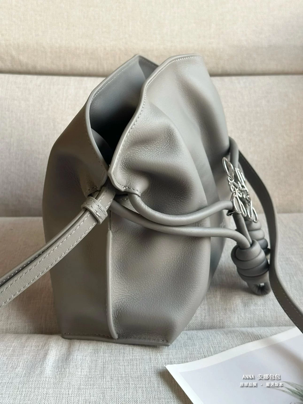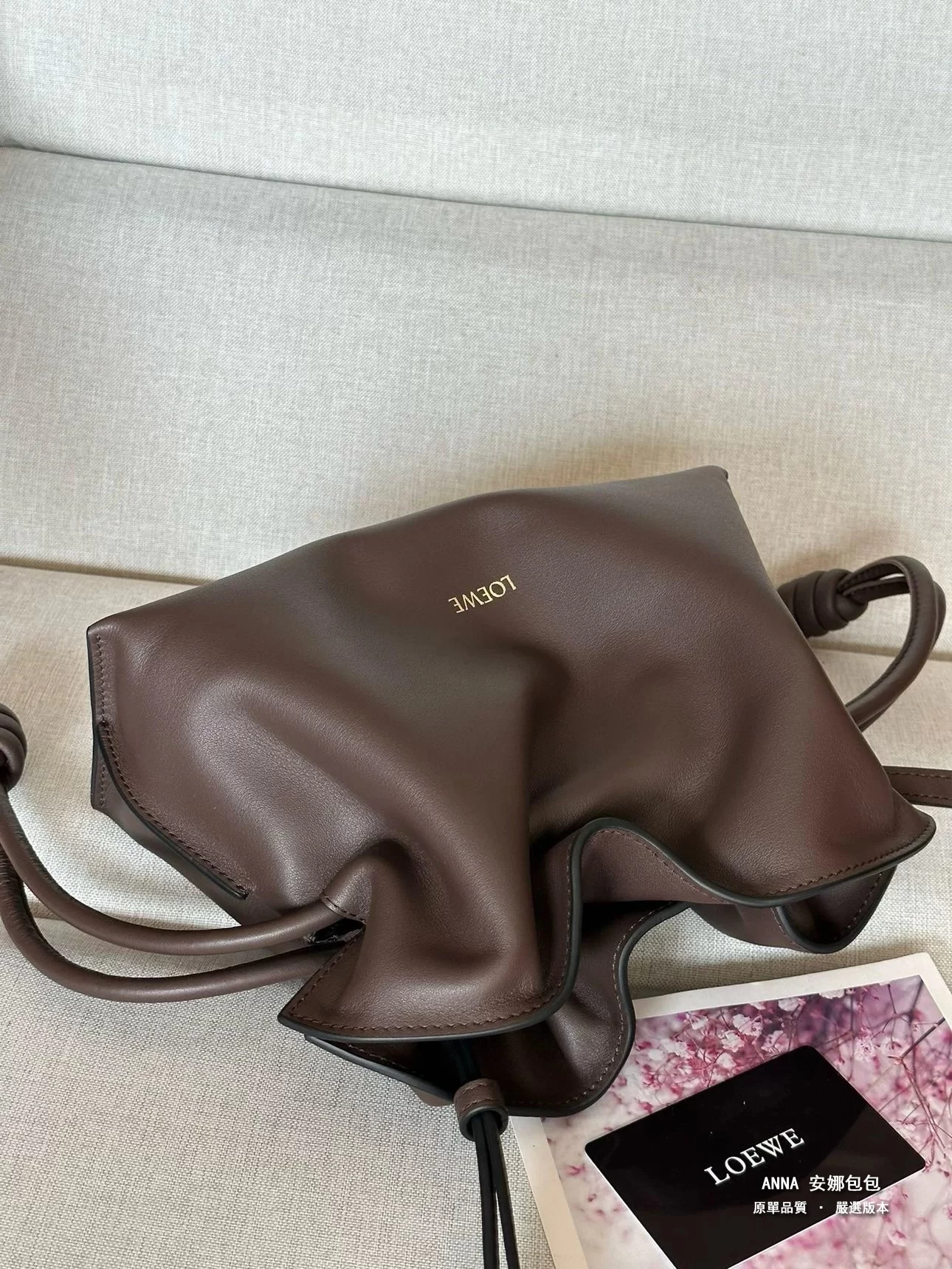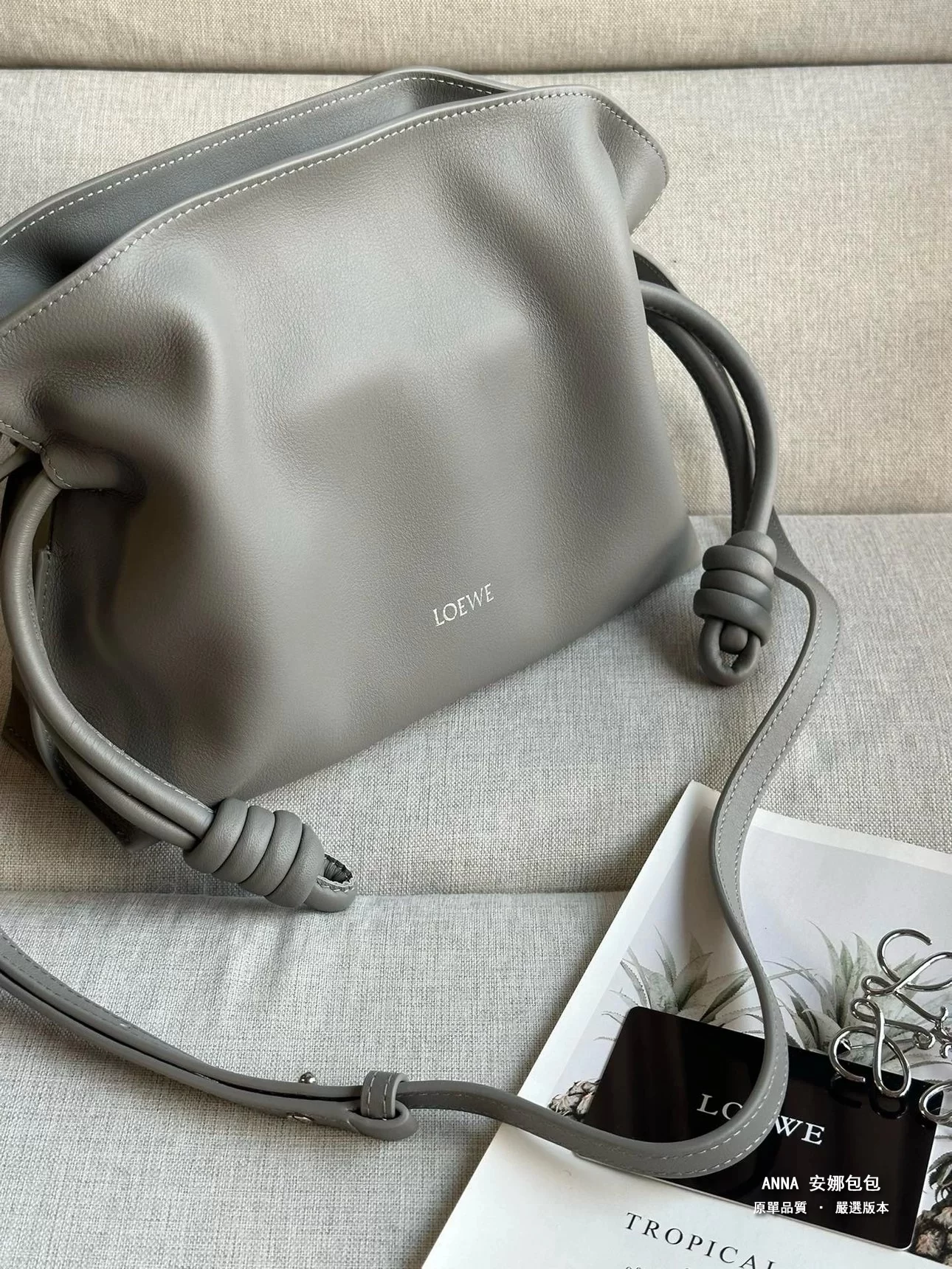 十九世紀七十年代發佈的 Flamenco 手拿包,採用拉繩收緊,並打上標誌性的盤繞結。此迷你版本採用納帕牛皮革製成。