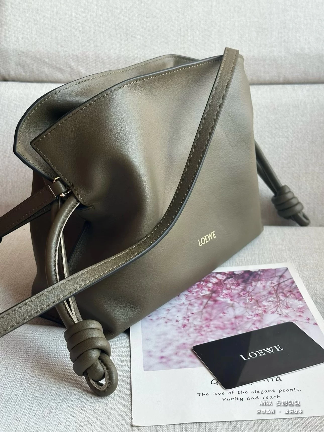 十九世紀七十年代發佈的 Flamenco 手拿包,採用拉繩收緊,並打上標誌性的盤繞結。此版本採用納帕牛皮革製成。