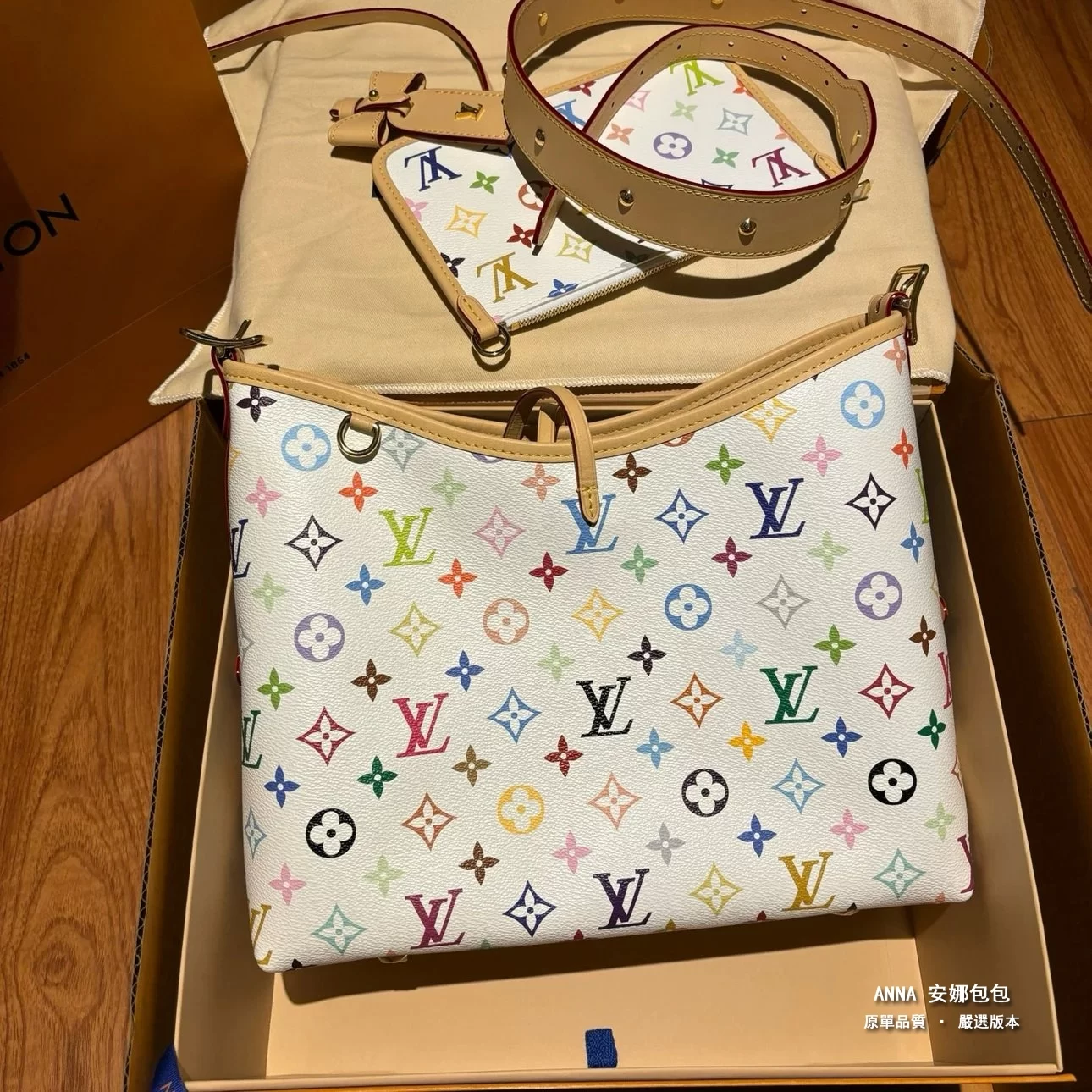 【鎮店渠道貨真料原五金】白三彩村上隆小號carryall購物袋單肩包斜挎包時尚高端大牌包包潮流女包越南尾貨