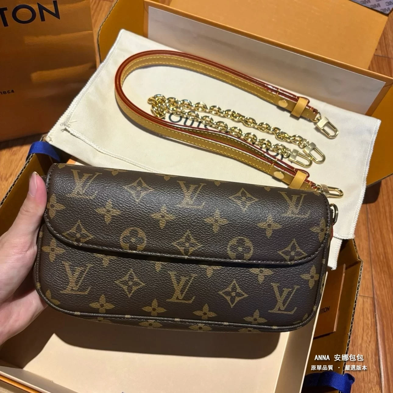 鎮店渠道貨老花ivy腋下包發貨實拍歐洲原皮原五金原裝保護膜正品級別包裝高端大牌潮流包包時尚hobo單肩包鏈條包越南尾貨