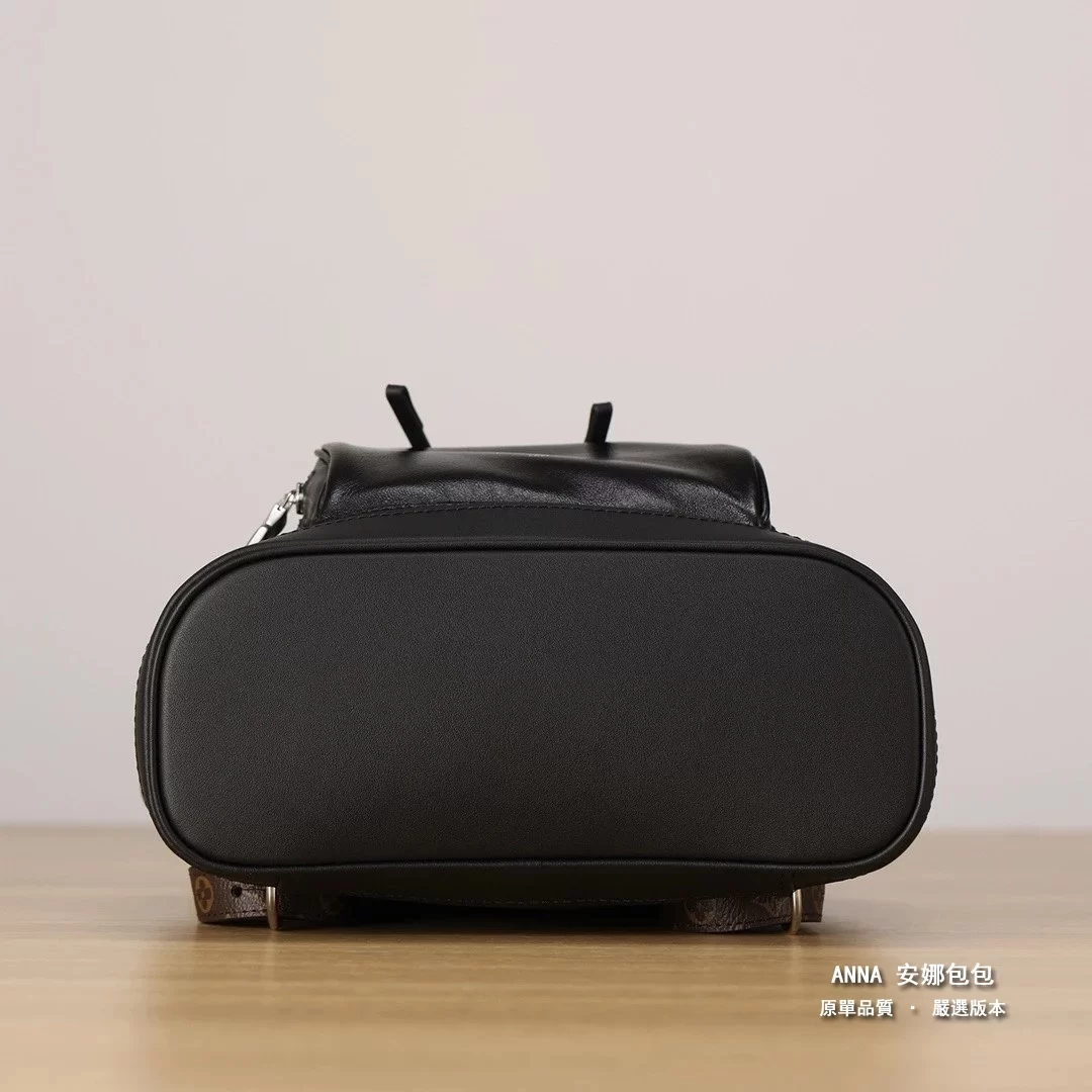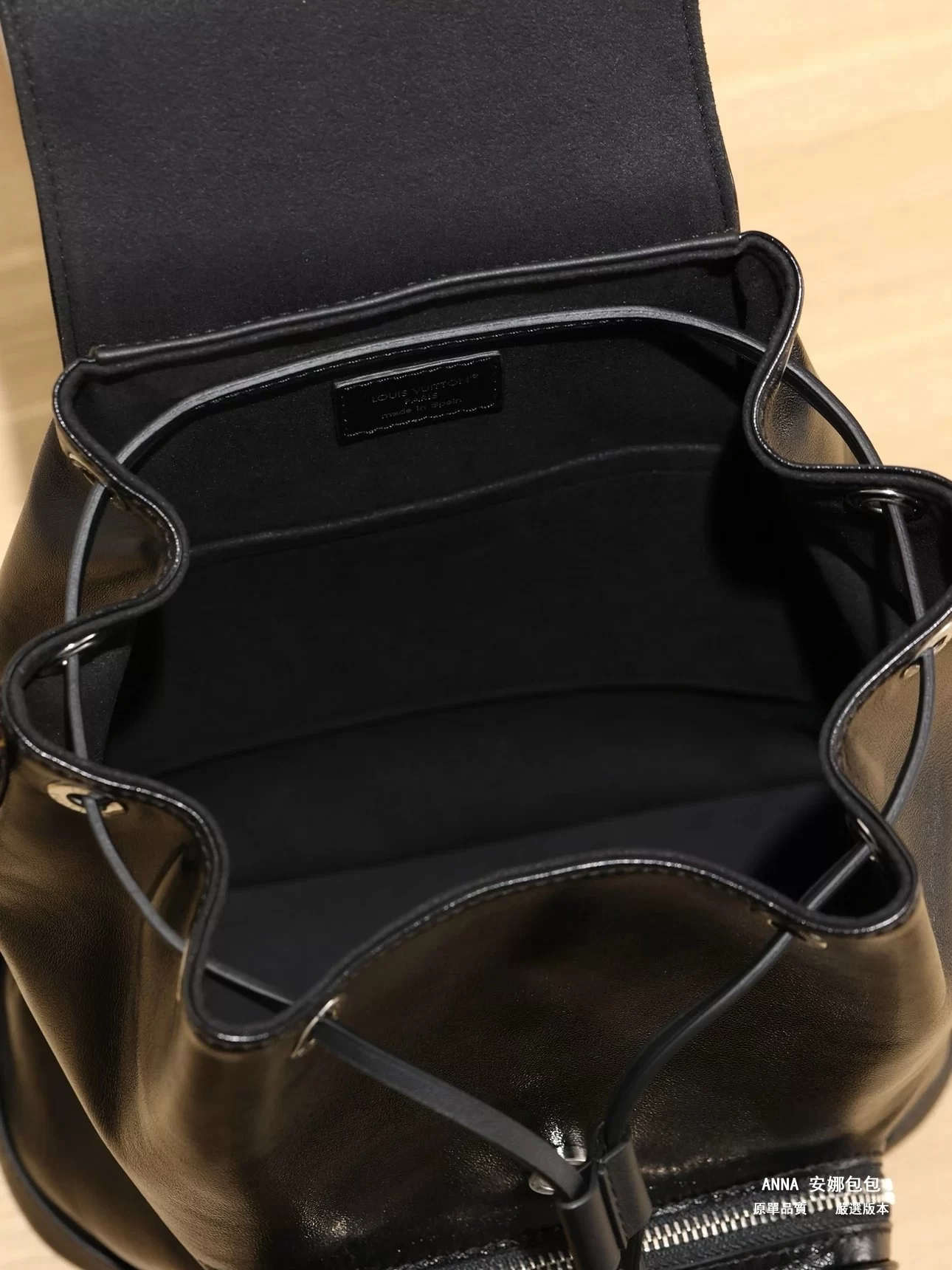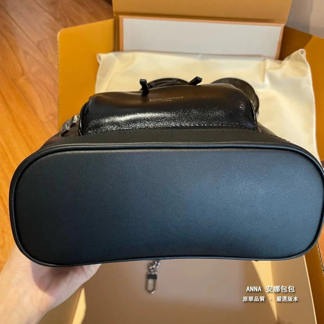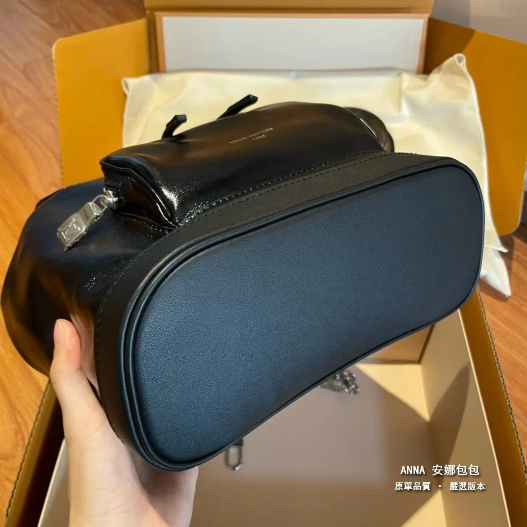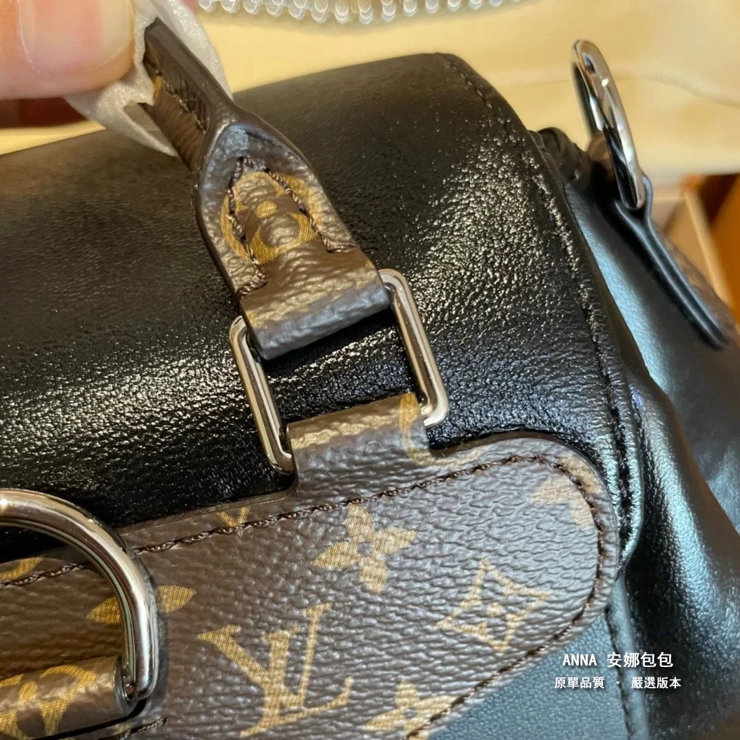 本款 Montsouris 小號雙肩包爲亮澤羊皮革融入 Monogram 細節,巧妙道出 LV Vibe 系列身份。