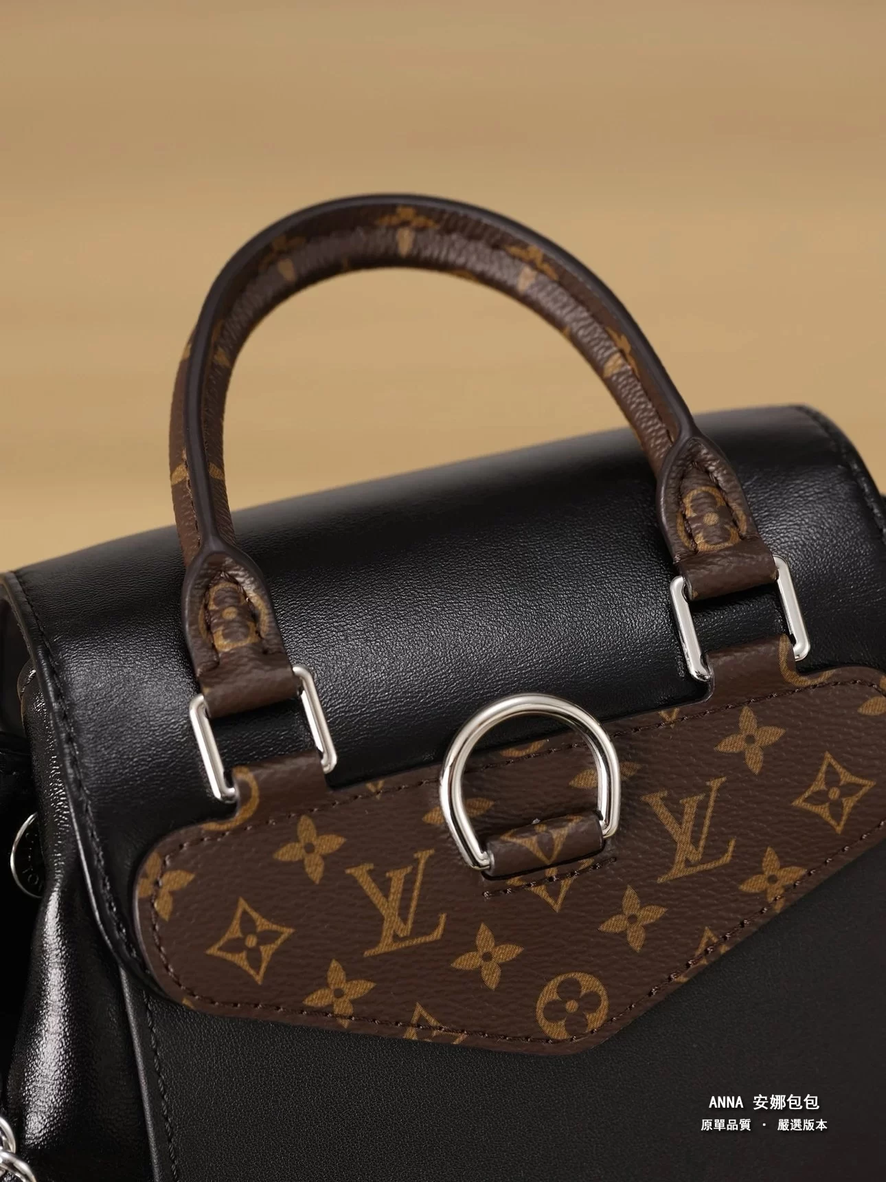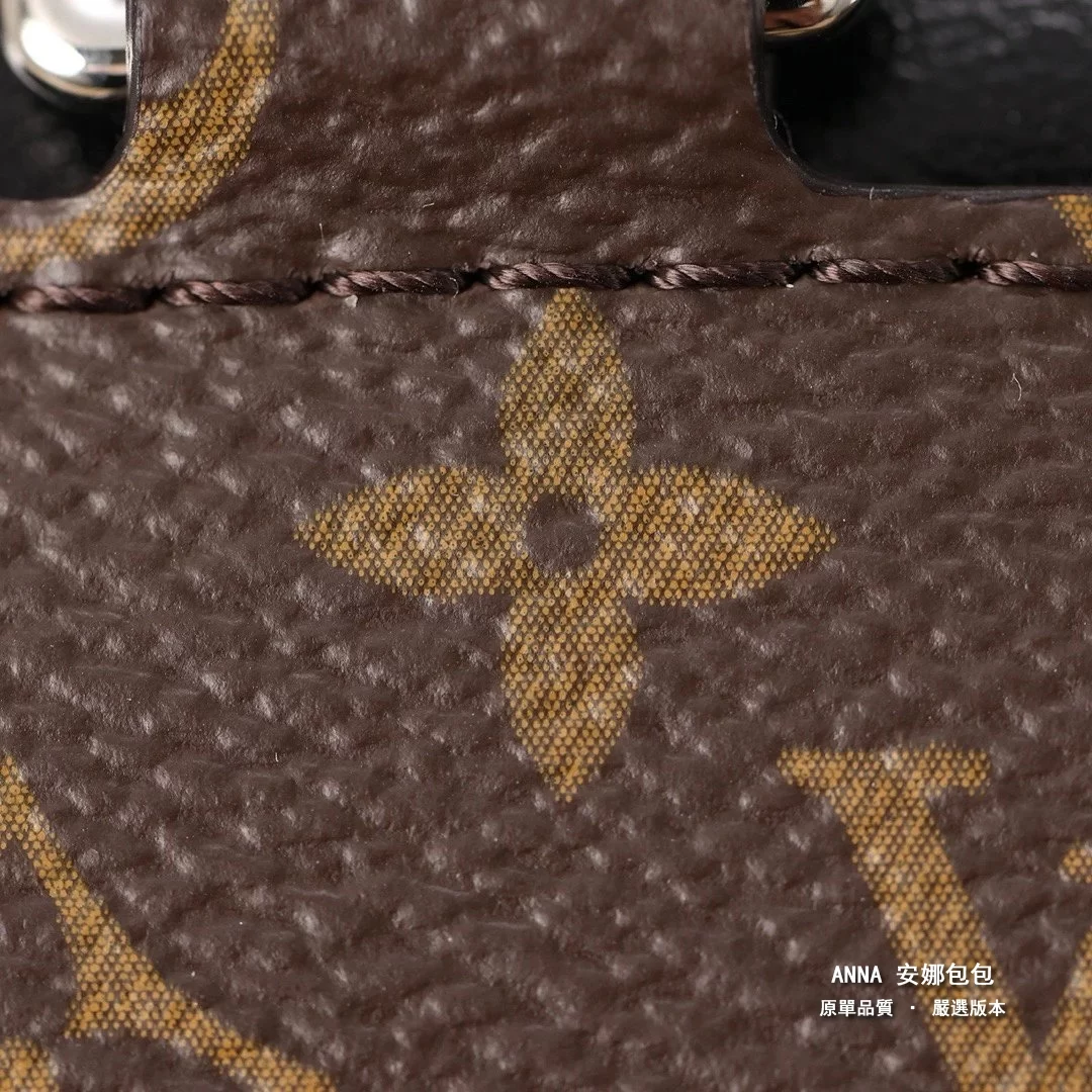 - 材質:亮澤小羊皮(Monogram 細節)+牛皮飾邊+織物內襯