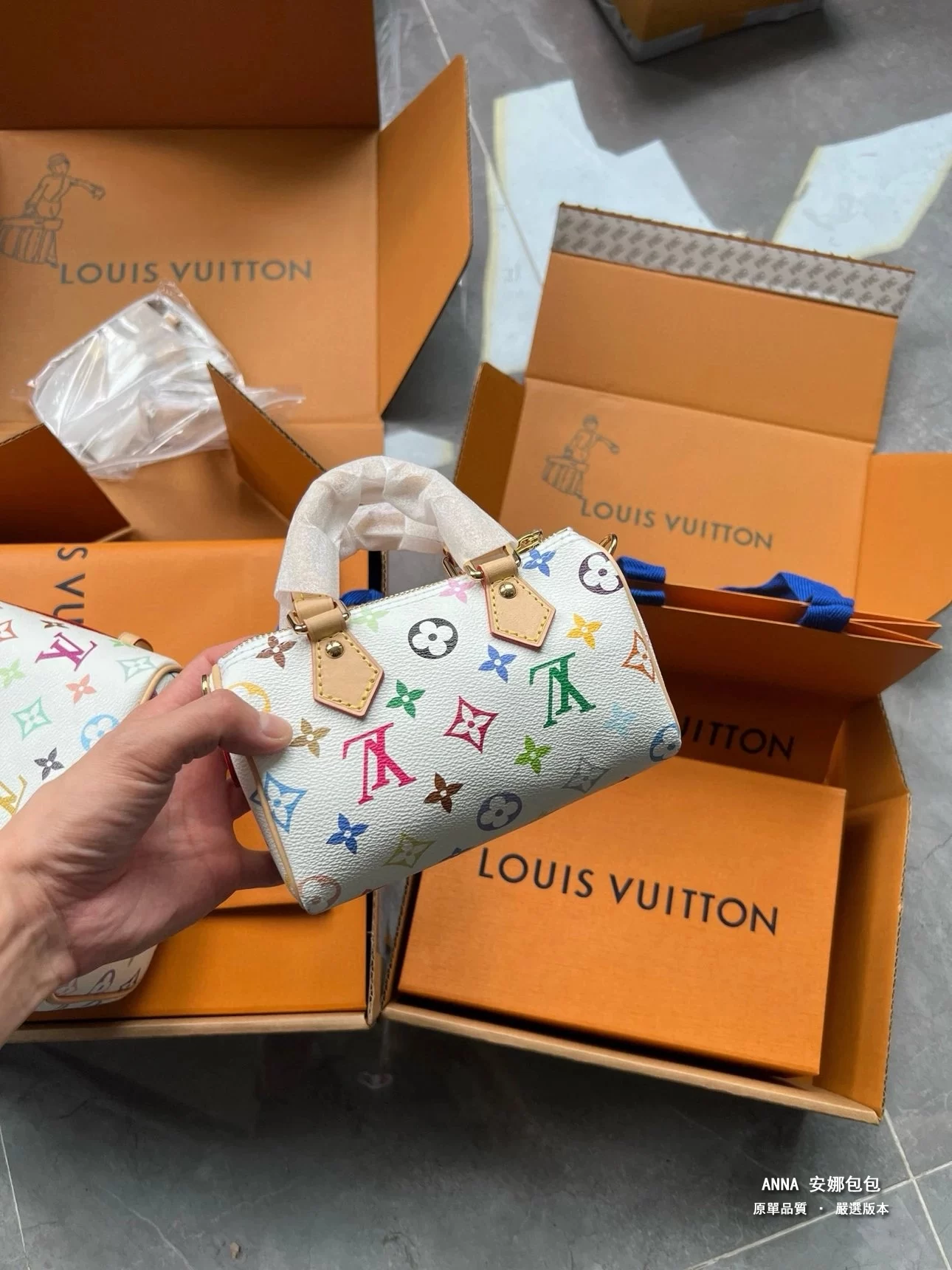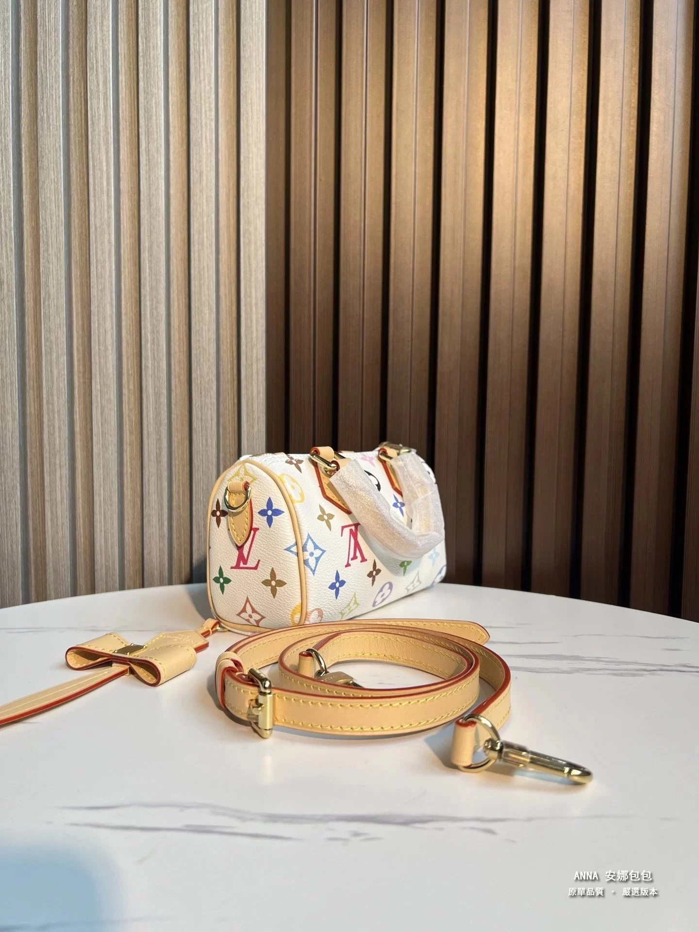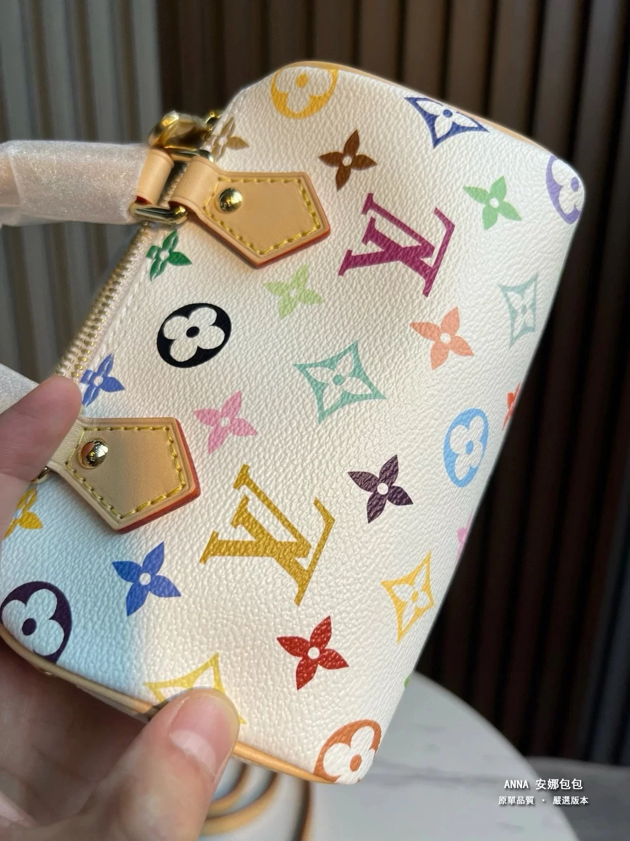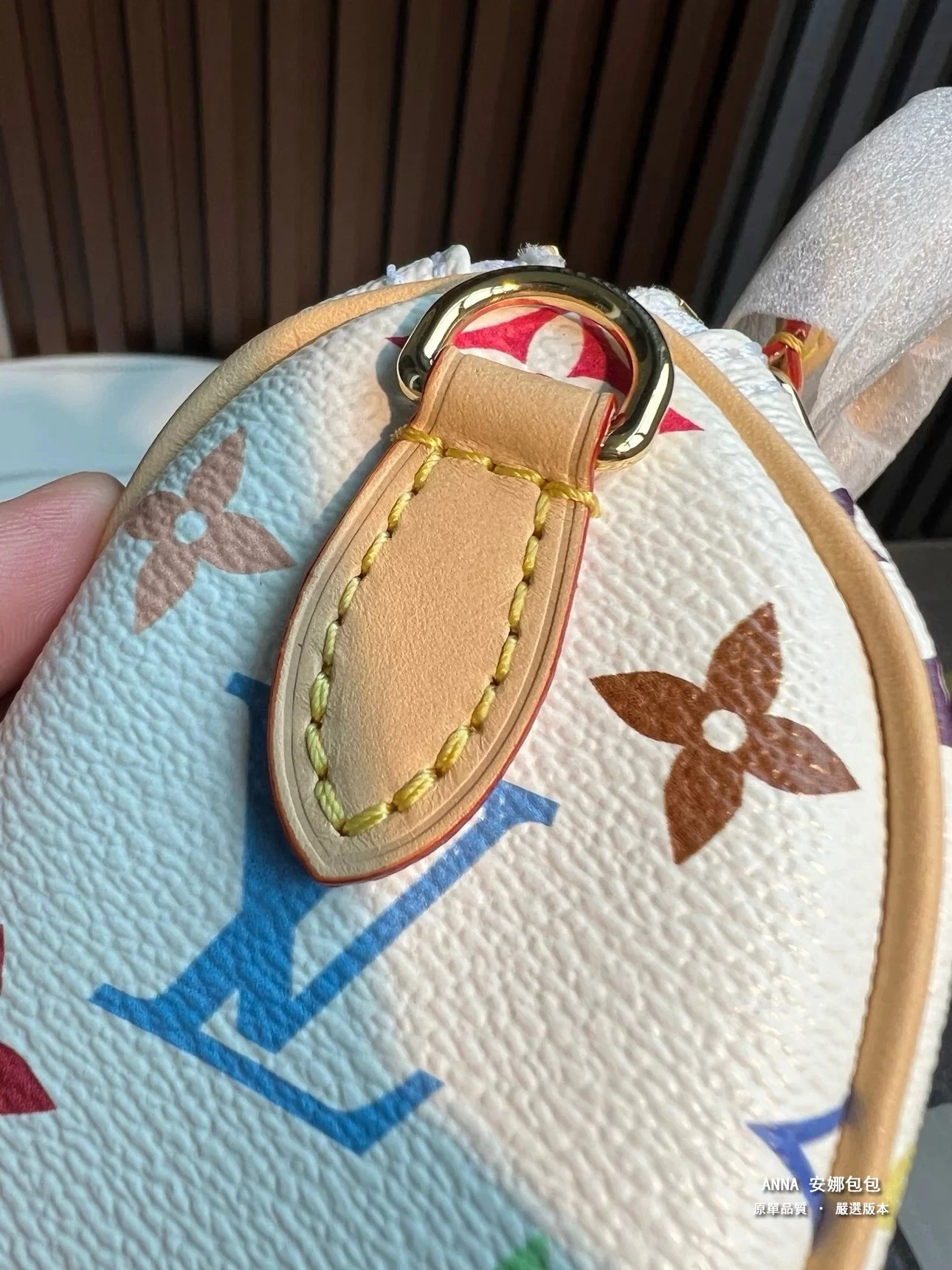路易威登 村上隆再版 白三彩 Monogram 全鋼五金 頂級復刻版本 Nano Speedy 手袋