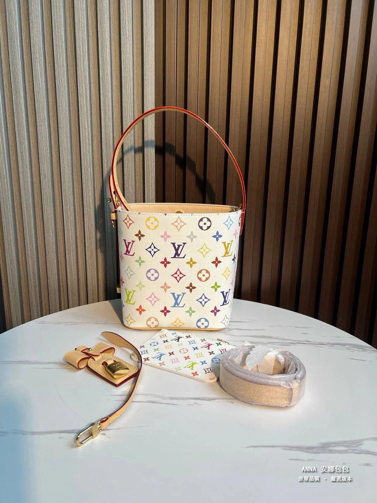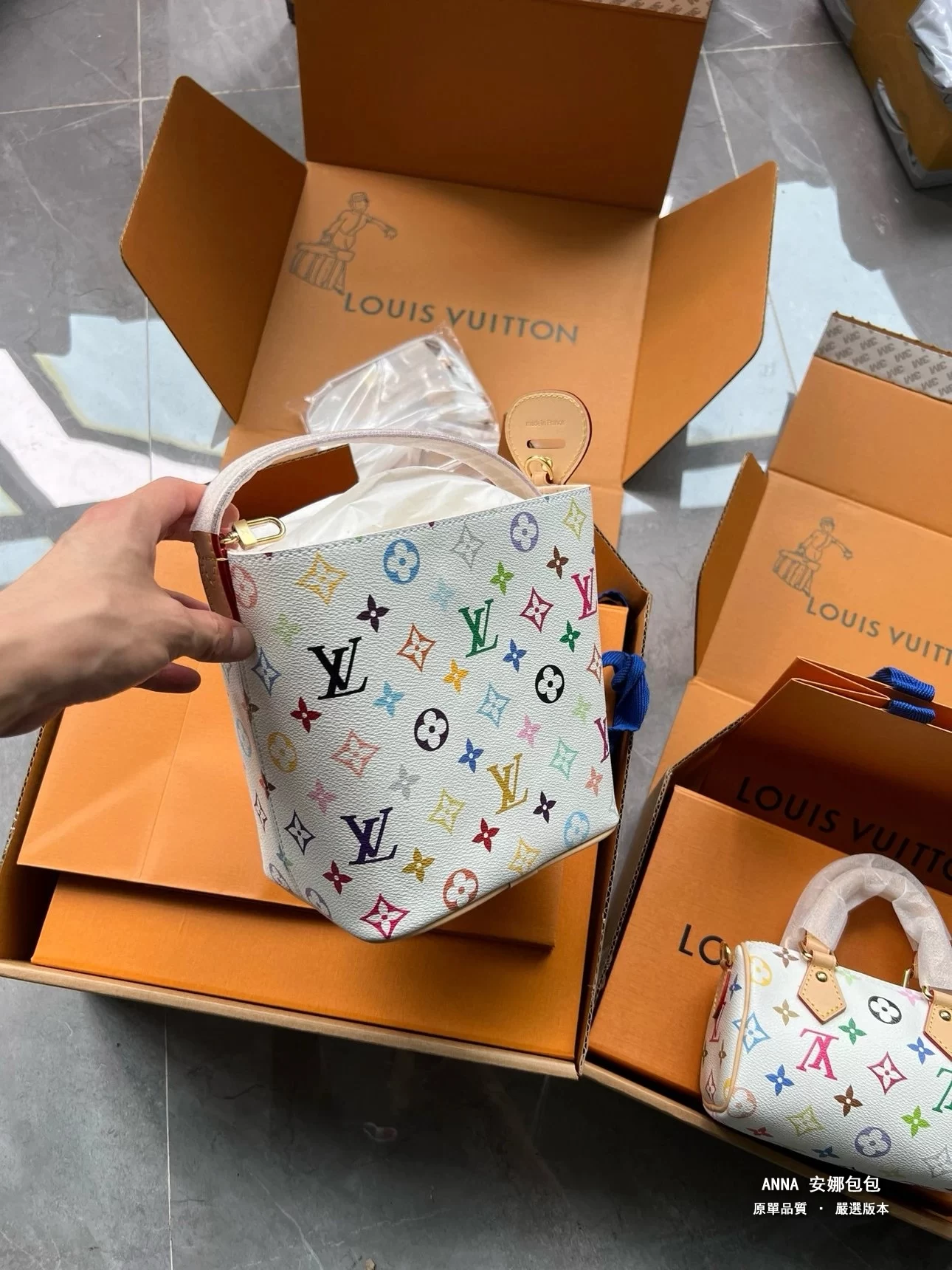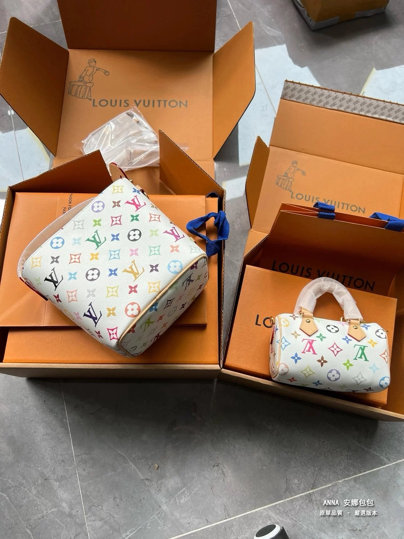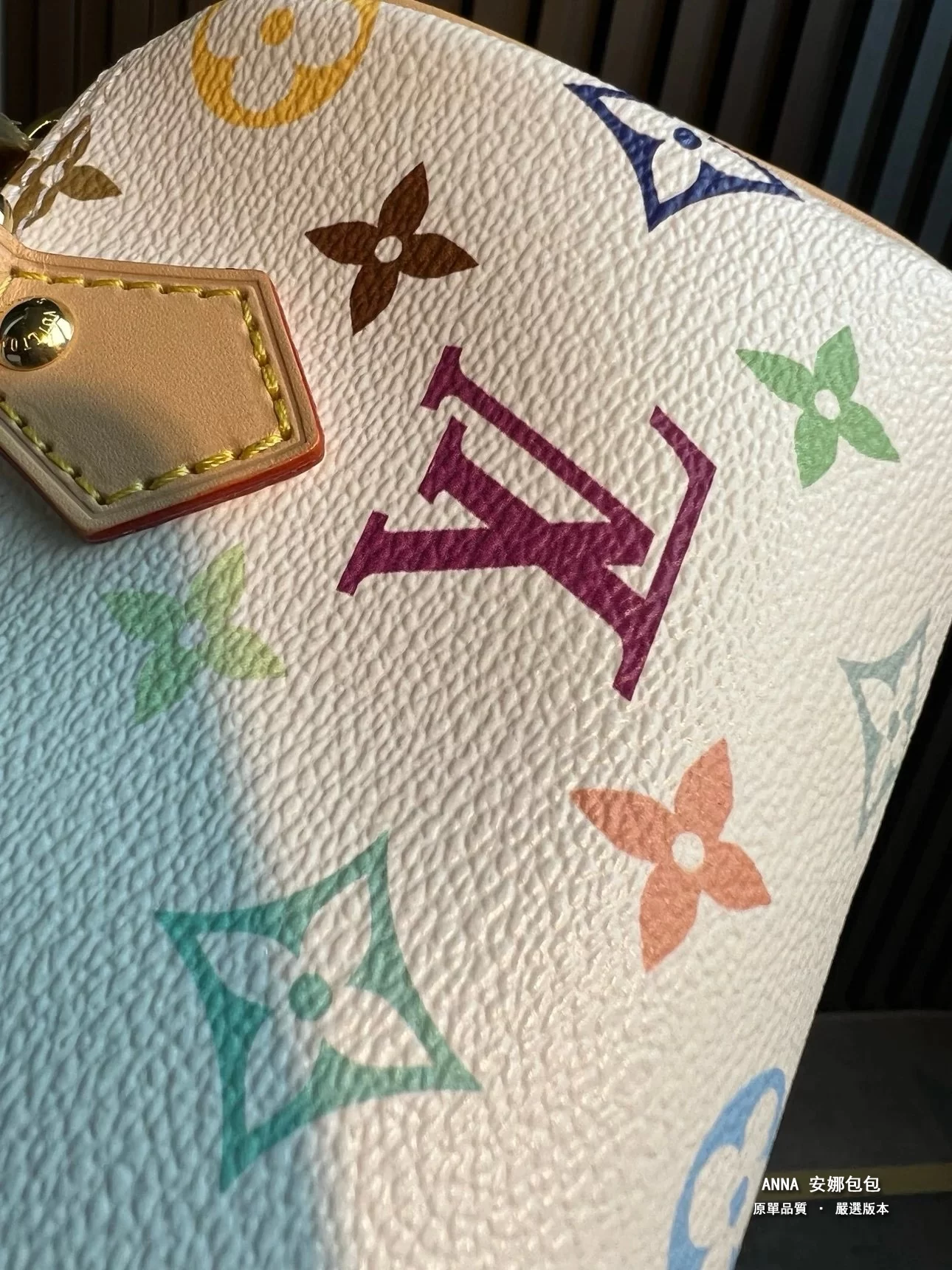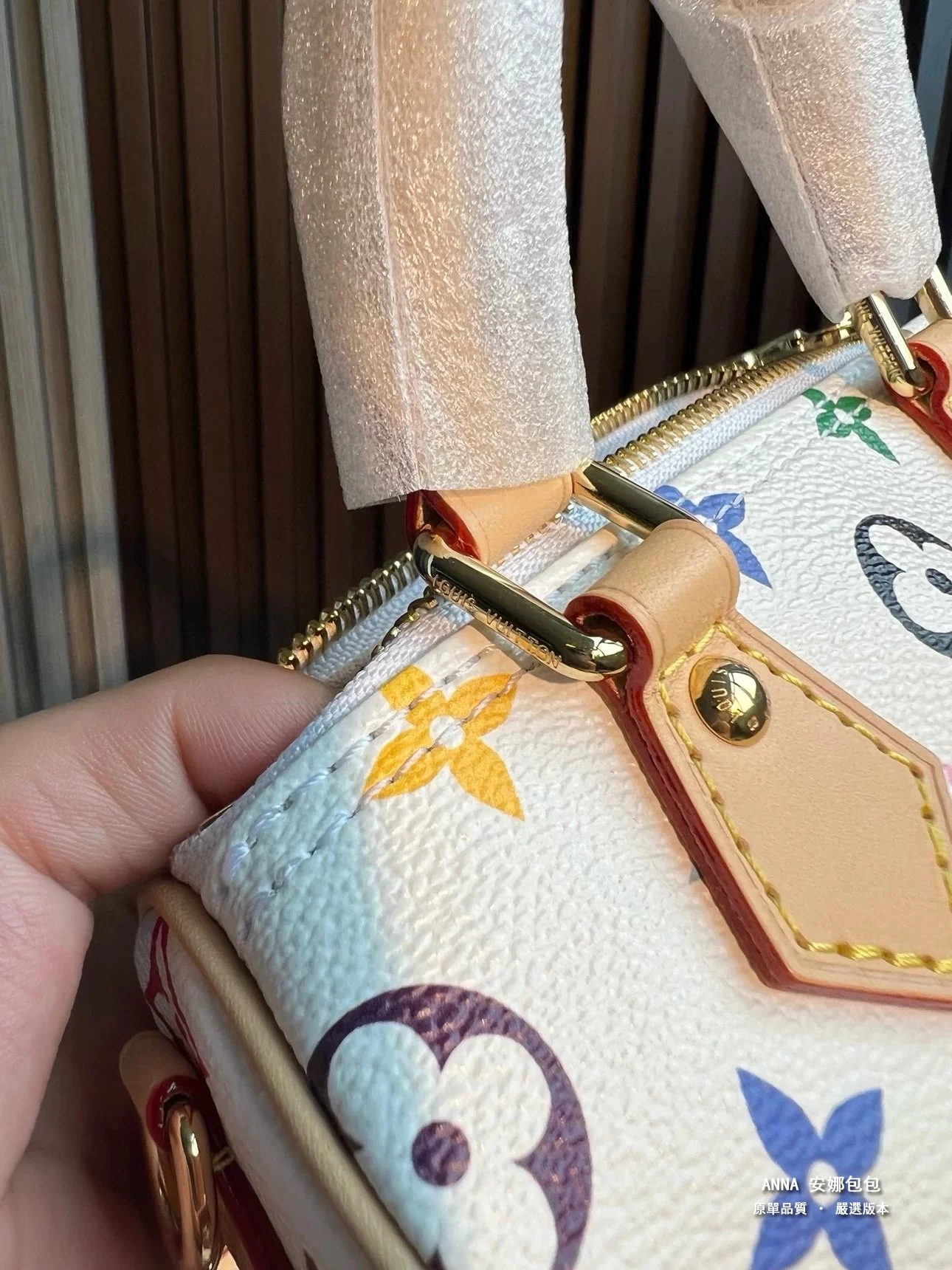路易威登 村上隆再版 白三彩 Monogram 全鋼五金 頂級復刻版本 Nano Speedy 手袋