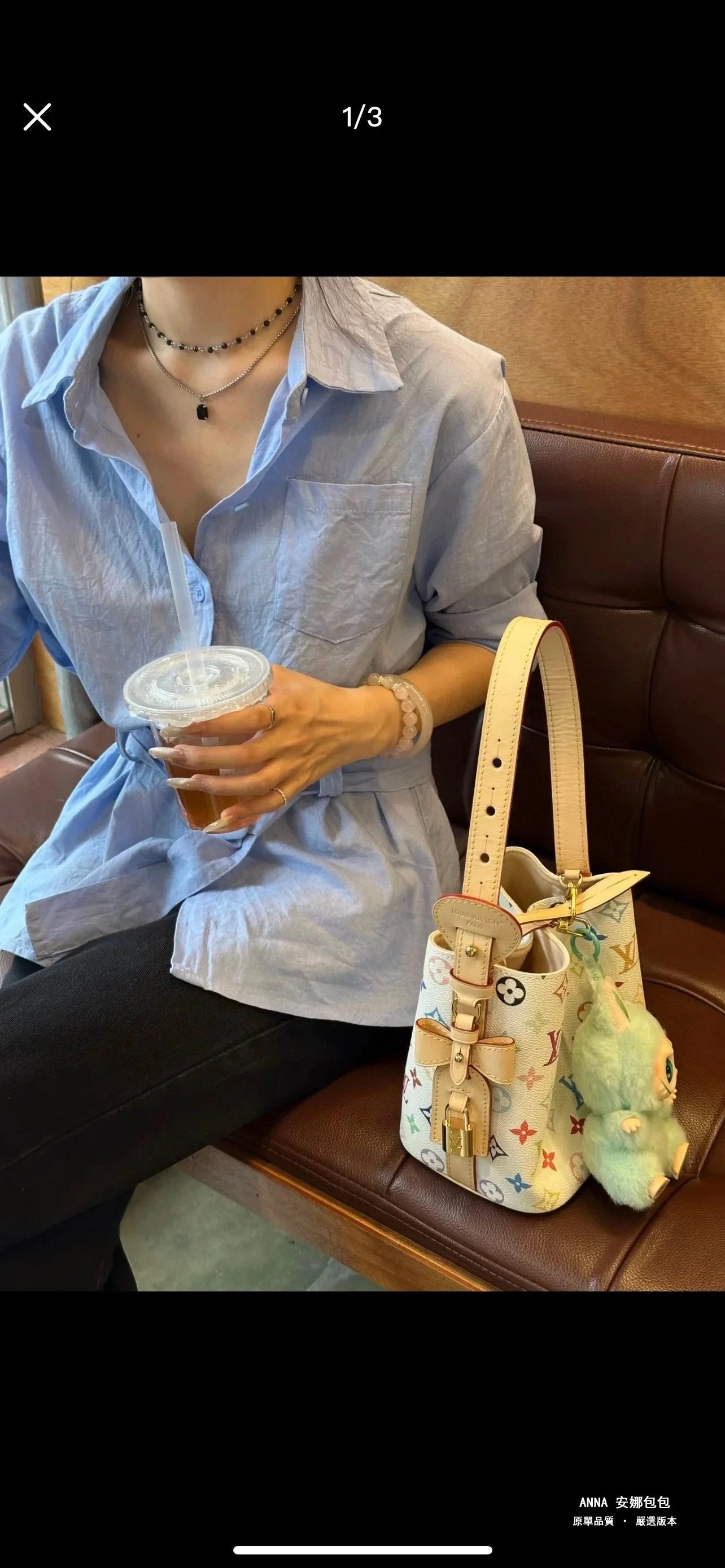 • 材質:Monogram 彩色塗層帆布(白底)+牛皮飾邊
