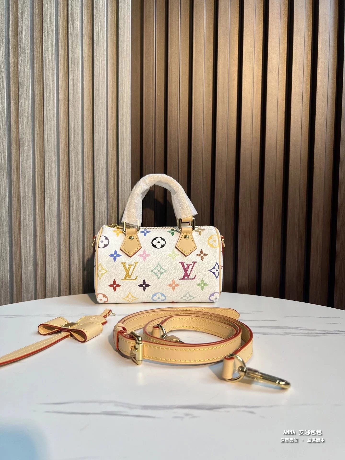 路易威登 村上隆再版 白三彩 Monogram 全鋼五金 頂級復刻版本 Nano Speedy 手袋