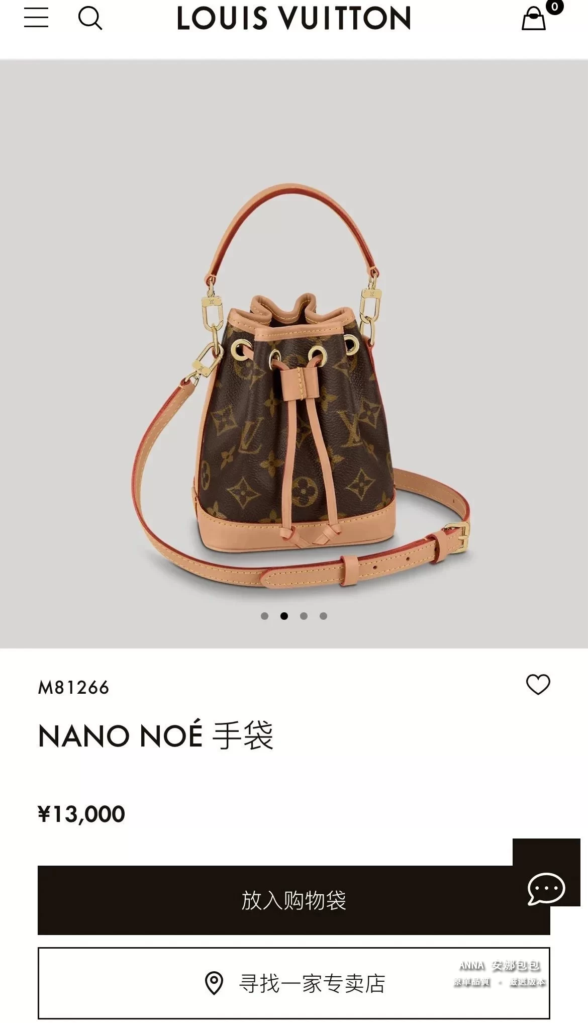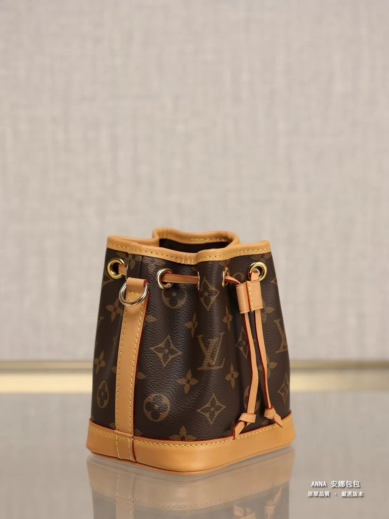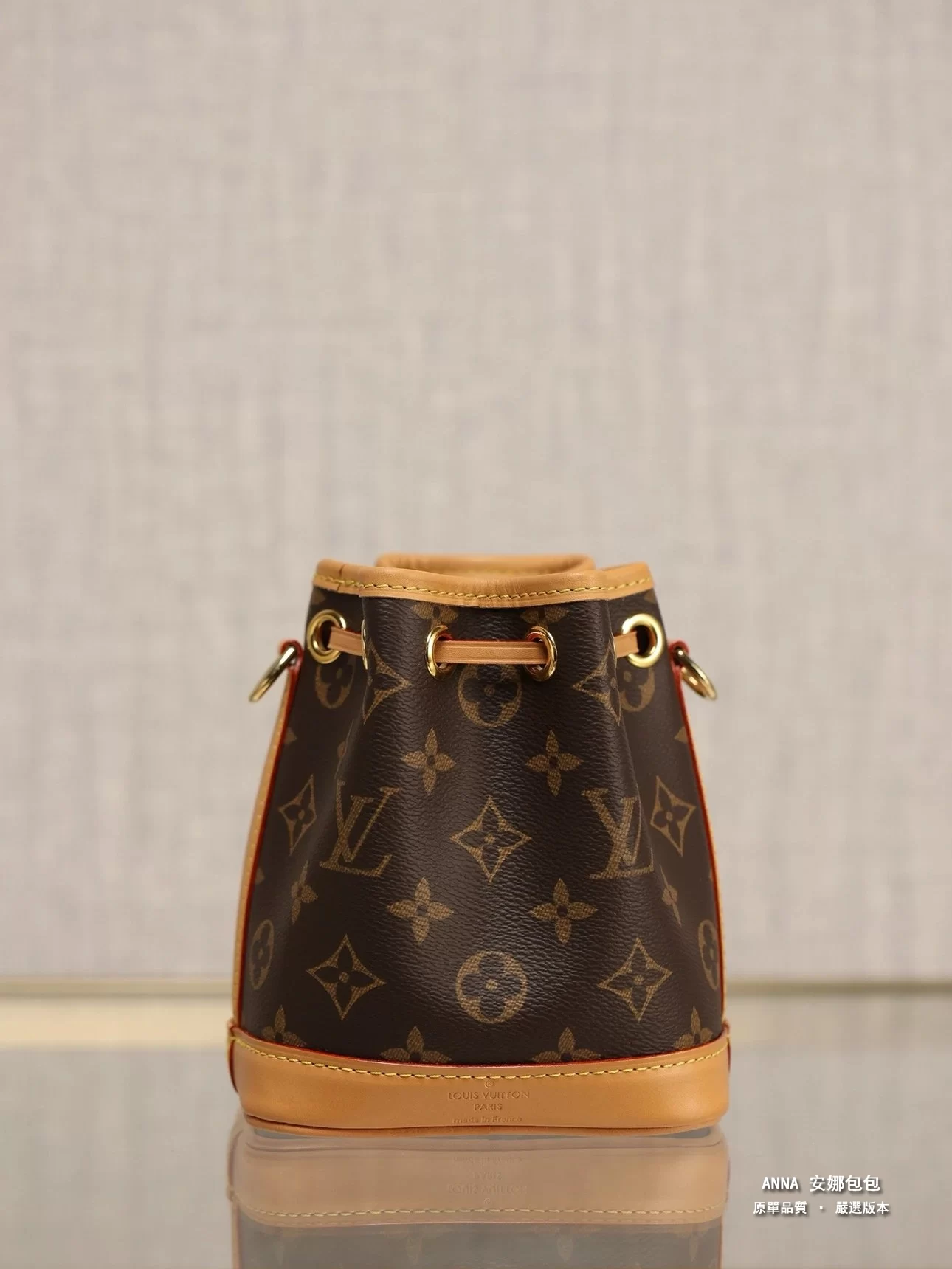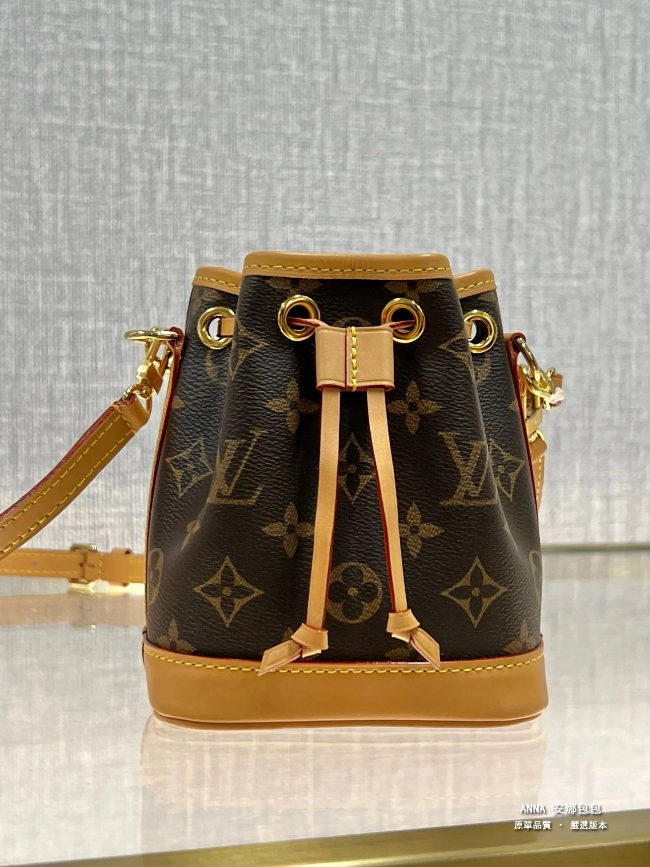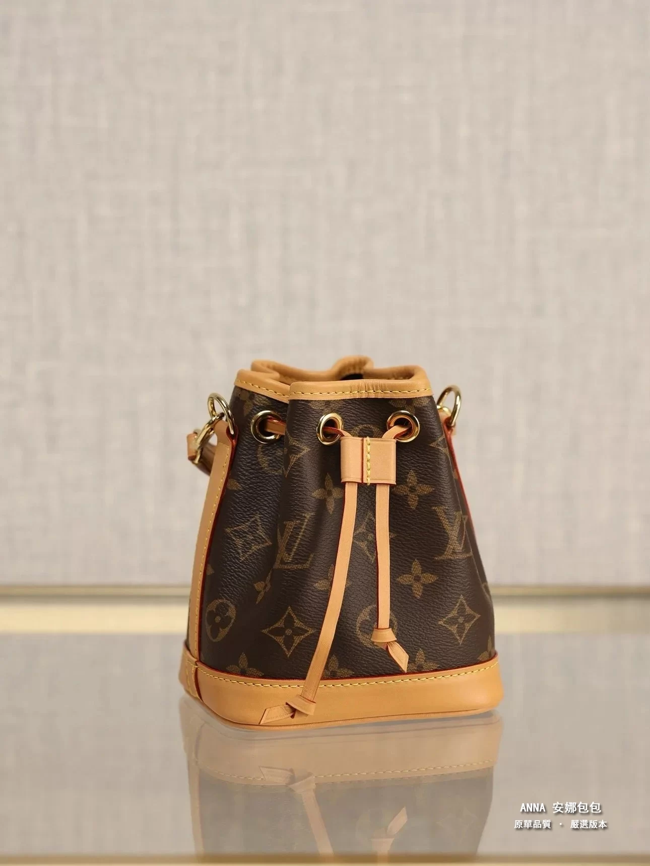 本款 Nano Noé 手袋濃縮 1932 年 Noé 手袋的經典構型,以 Monogram 帆布和牛皮革飾邊融合傳統設計和當代功能。