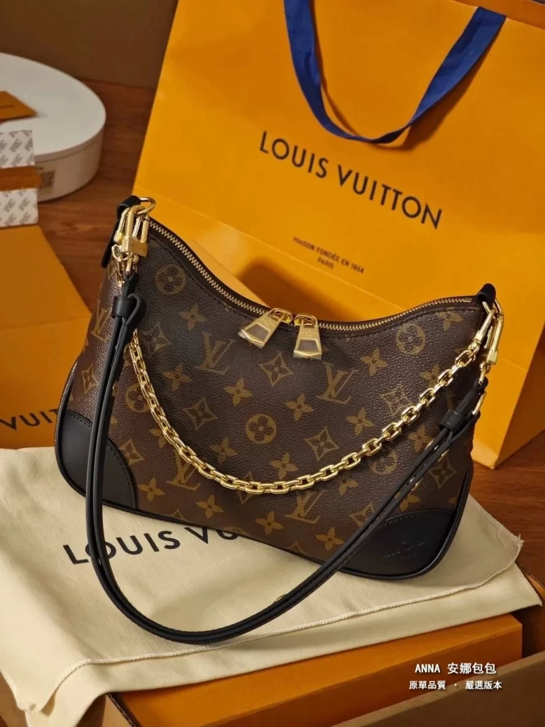 路易威登 Boulogne 老花雙拉鍊 可調肩帶 原單尾貨版本 牛角包
