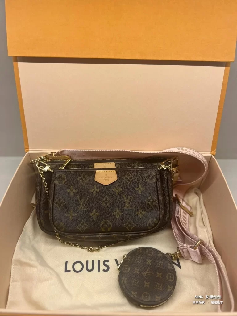 路易威登 五合一麻將包 老花 粉色肩帶 原單尾貨 斜挎包(M44840)