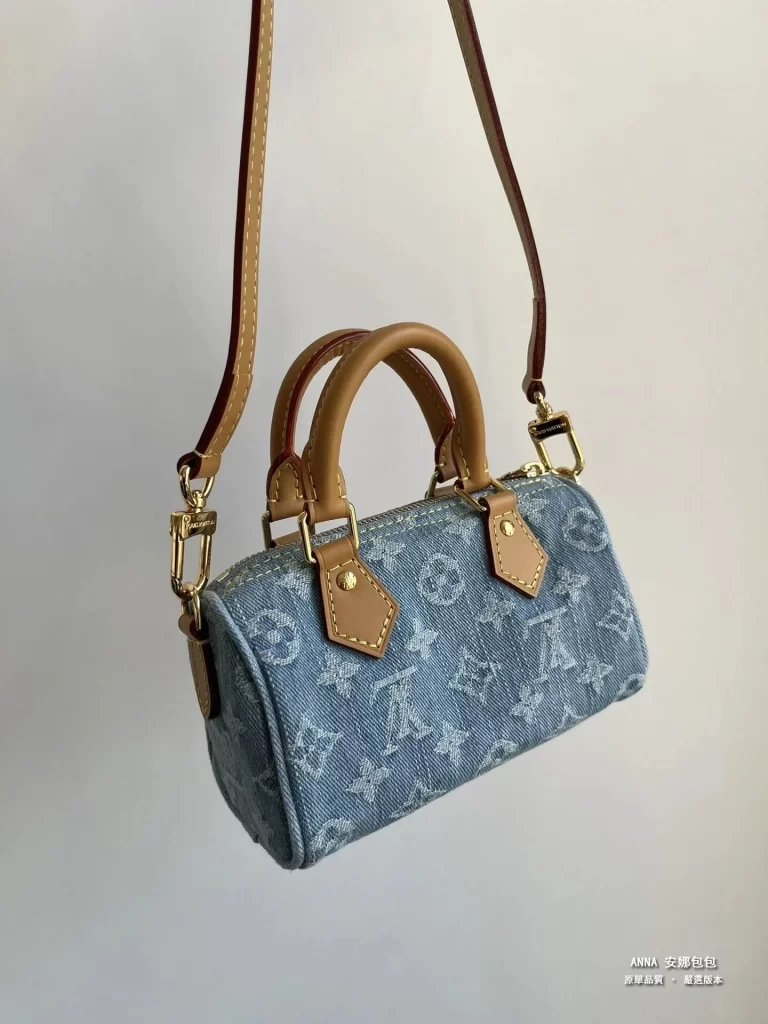 路易威登 Nano Speedy 迷你枕頭包 水洗丹寧老花 原單尾貨 16cm