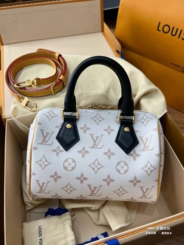 路易威登 村上隆再版 白三彩 Monogram 全鋼五金 頂級復刻版本 Nano Speedy 手袋